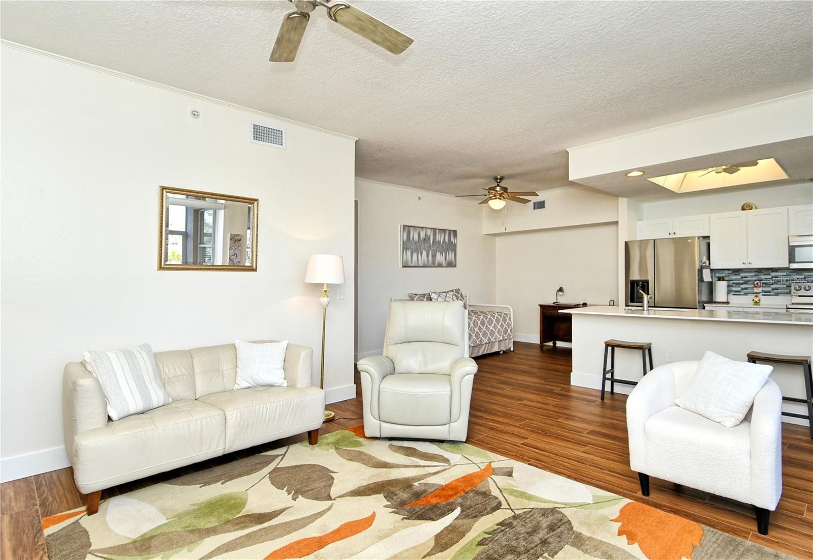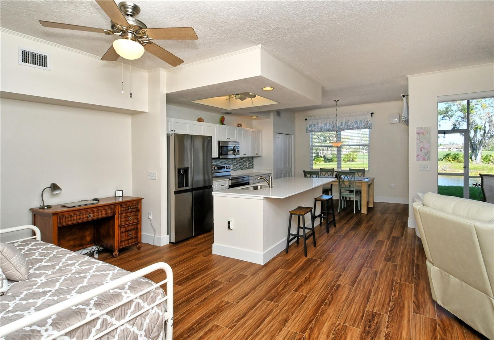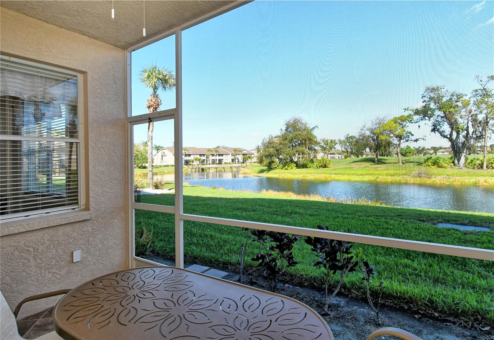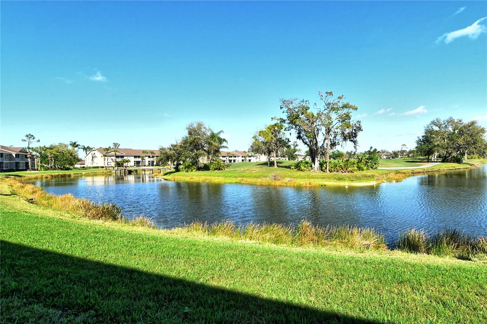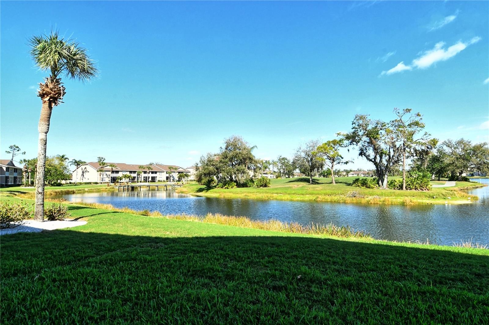 This is the one! Take a look at this completely updated, first floor Drummond model Veranda in Heritage Oaks Golf & Country Club that is being sold Fully Furnished. One step through the front door and you're greeted with loads of natural light and an absolutely breathtaking view of water, bridges, and the 14th Signature Hole of the golf course. This is truly one of the best views in the community! The owners have done some lovely improvements including a new A/C system (2023), a new kitchen complete with shaker cabinets, quartz countertops that have been lowered to all one height, stainless steel appliances, and a gorgeous tile backsplash. In addition, all new wood-look tile flooring has been installed in the entire home as well as new taller baseboards - it really gives this unit an updated look and is easy to maintain. Both bathrooms have been thoughtfully updated with new vanities and countertops, and gorgeous tiled showers. The primary bathroom also has a frameless glass shower that is convenient and accessible. The open floor plan is perfect for entertaining as the kitchen provides open sight lines to the living, dining, and outdoor spaces. As you make your way to the rear lanai, savor evenings with your favorite beverage and take in the outstanding views from this amazing location. You can even watch the abundance of wildlife that roam this Certified Audubon Neighborhood. Located in proximity to many shopping and dining options as well as the stunning Gulf Coast beaches, this community is a short drive from all Sarasota has going on. Heritage Oaks is known for its pristine 18-hole golf course, har-tru tennis courts, fitness center, 24-hour security, an impressive clubhouse with a lovely restaurant and the sensational 19th Hole Lounge, 5 swimming pools, and a calendar of events packed with activities.