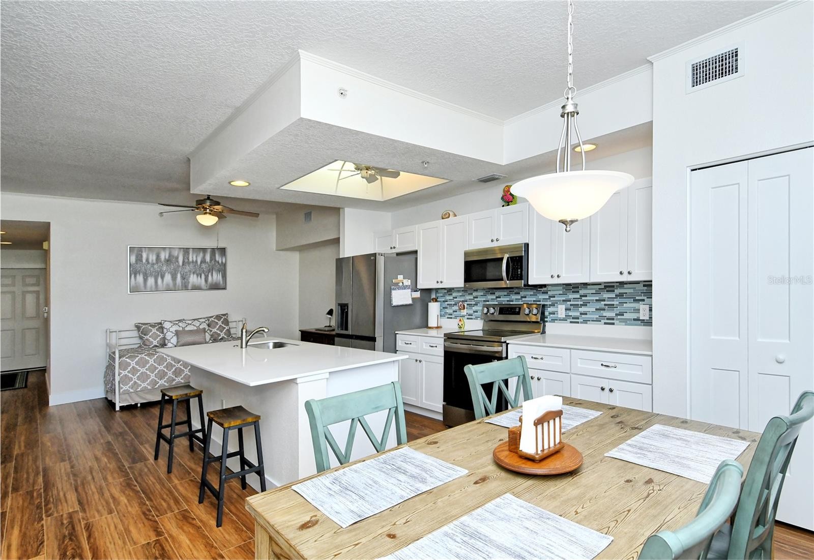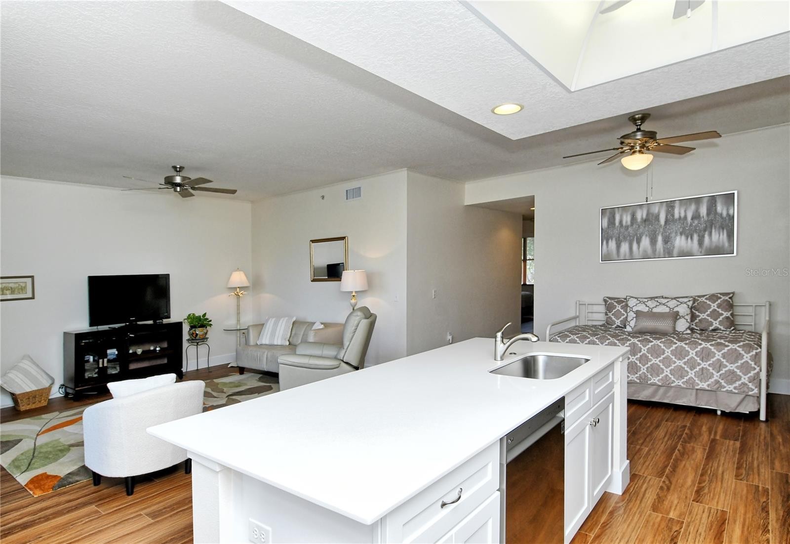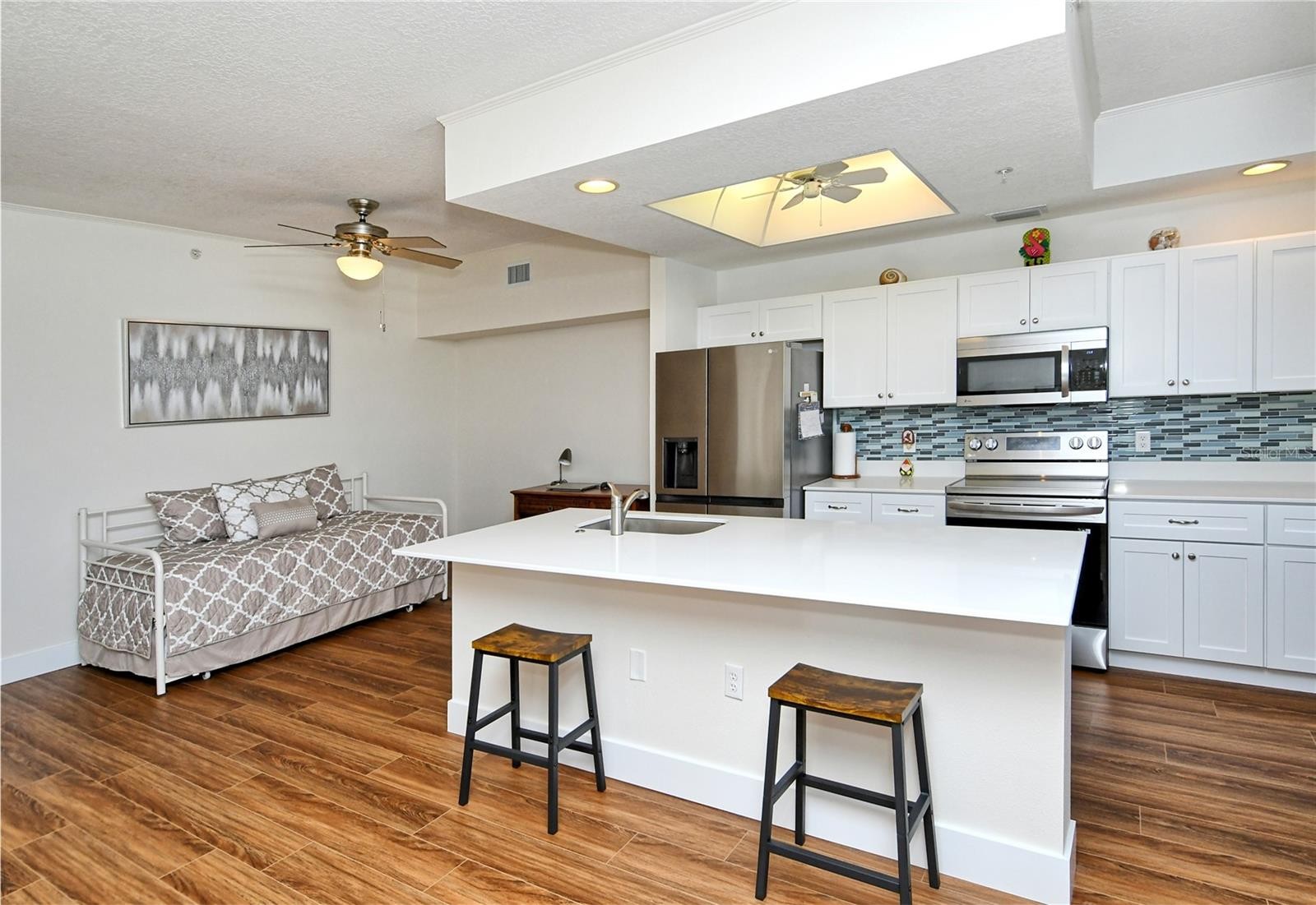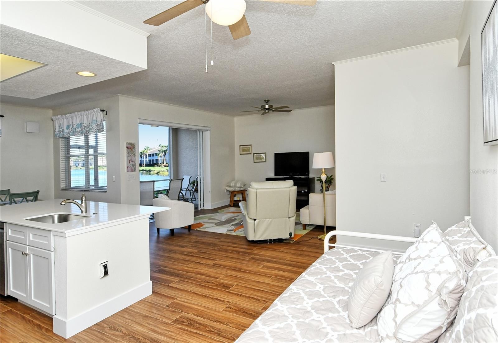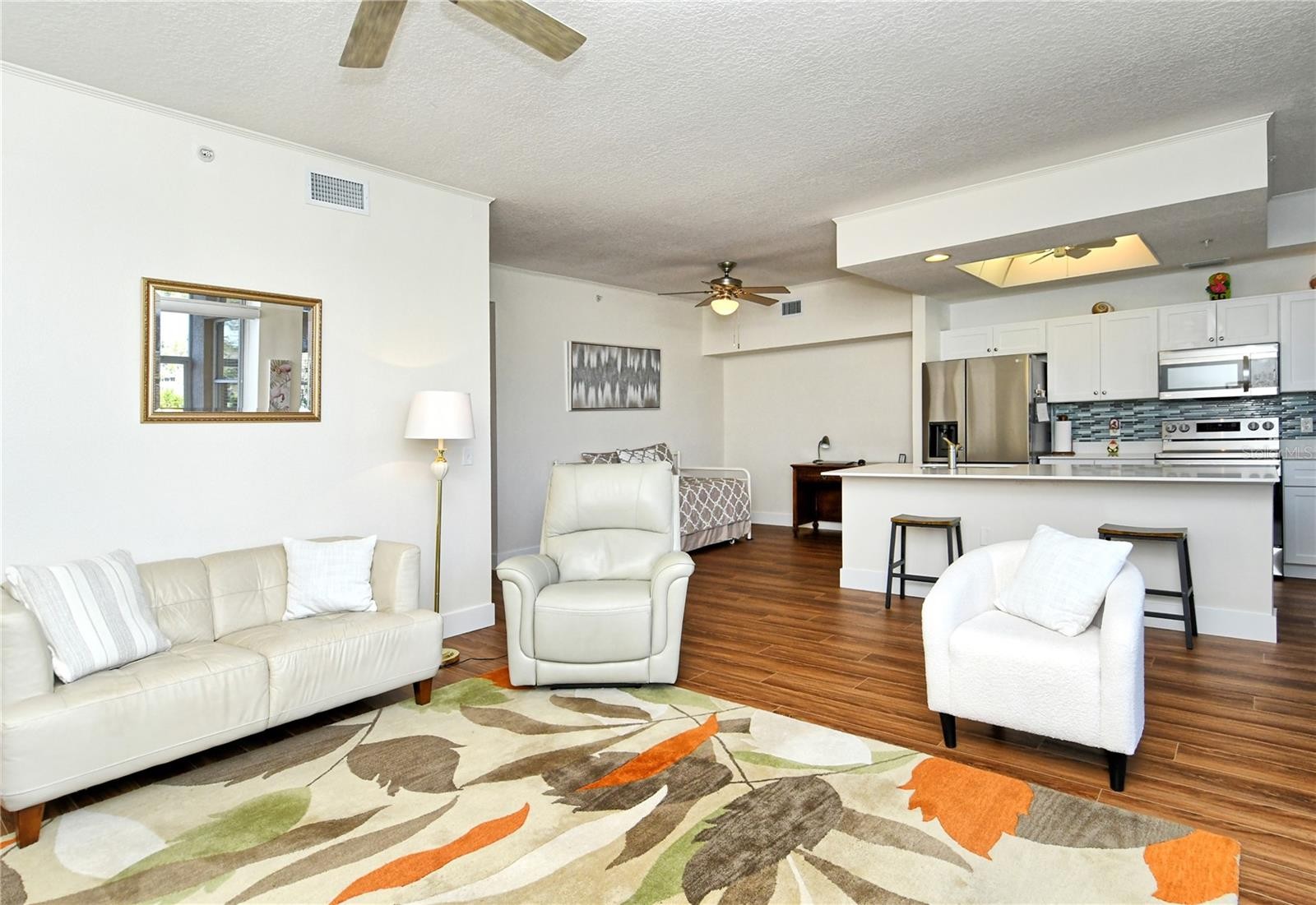 This is the one! Take a look at this completely updated, first floor Drummond model Veranda in Heritage Oaks Golf & Country Club that is being sold Fully Furnished. One step through the front door and you're greeted with loads of natural light and an absolutely breathtaking view of water, bridges, and the 14th Signature Hole of the golf course. This is truly one of the best views in the community! The owners have done some lovely improvements including a new A/C system (2023), a new kitchen complete with shaker cabinets, quartz countertops that have been lowered to all one height, stainless steel appliances, and a gorgeous tile backsplash. In addition, all new wood-look tile flooring has been installed in the entire home as well as new taller baseboards - it really gives this unit an updated look and is easy to maintain. Both bathrooms have been thoughtfully updated with new vanities and countertops, and gorgeous tiled showers. The primary bathroom also has a frameless glass shower that is convenient and accessible. The open floor plan is perfect for entertaining as the kitchen provides open sight lines to the living, dining, and outdoor spaces. As you make your way to the rear lanai, savor evenings with your favorite beverage and take in the outstanding views from this amazing location. You can even watch the abundance of wildlife that roam this Certified Audubon Neighborhood. Located in proximity to many shopping and dining options as well as the stunning Gulf Coast beaches, this community is a short drive from all Sarasota has going on. Heritage Oaks is known for its pristine 18-hole golf course, har-tru tennis courts, fitness center, 24-hour security, an impressive clubhouse with a lovely restaurant and the sensational 19th Hole Lounge, 5 swimming pools, and a calendar of events packed with activities.