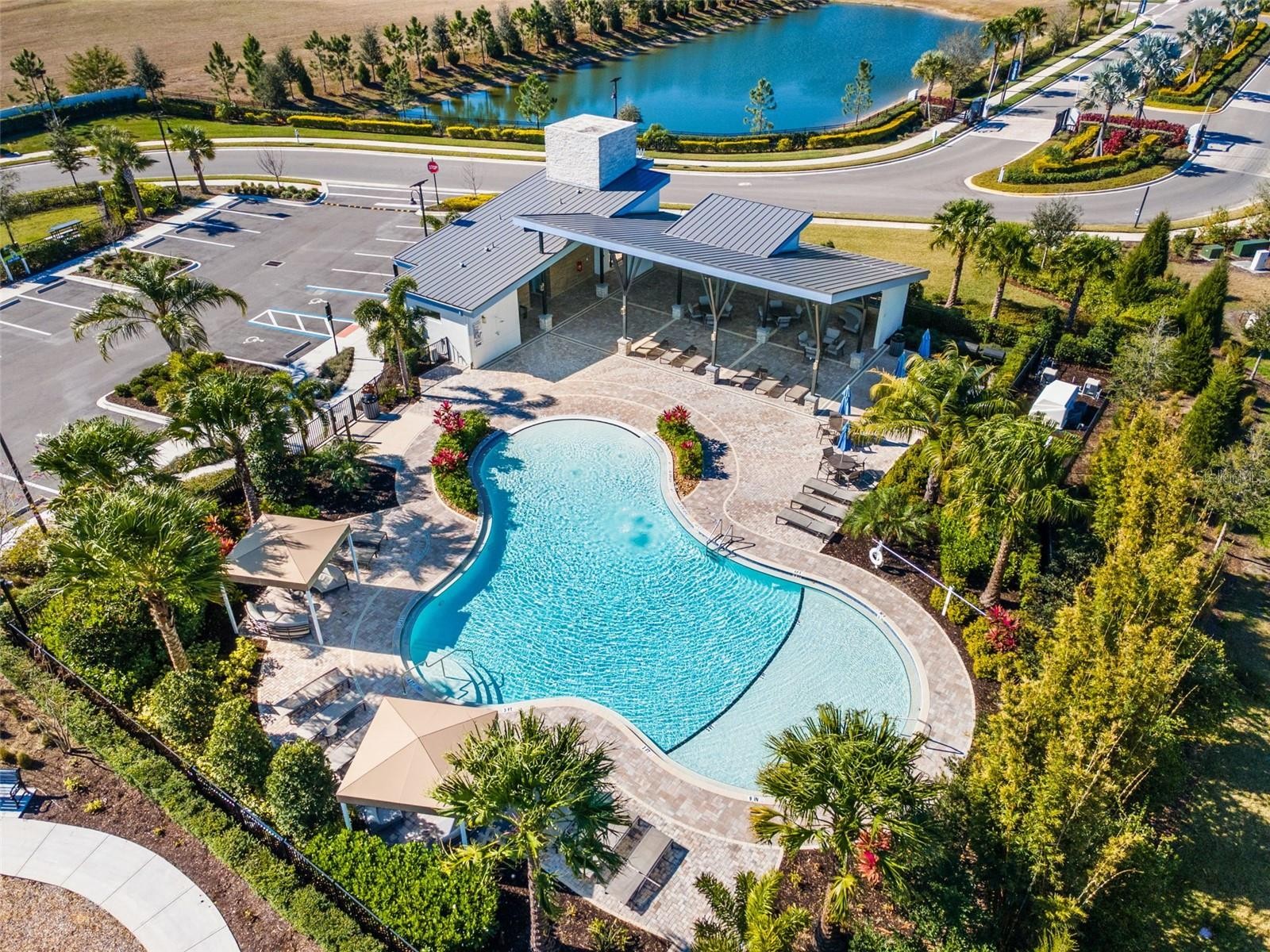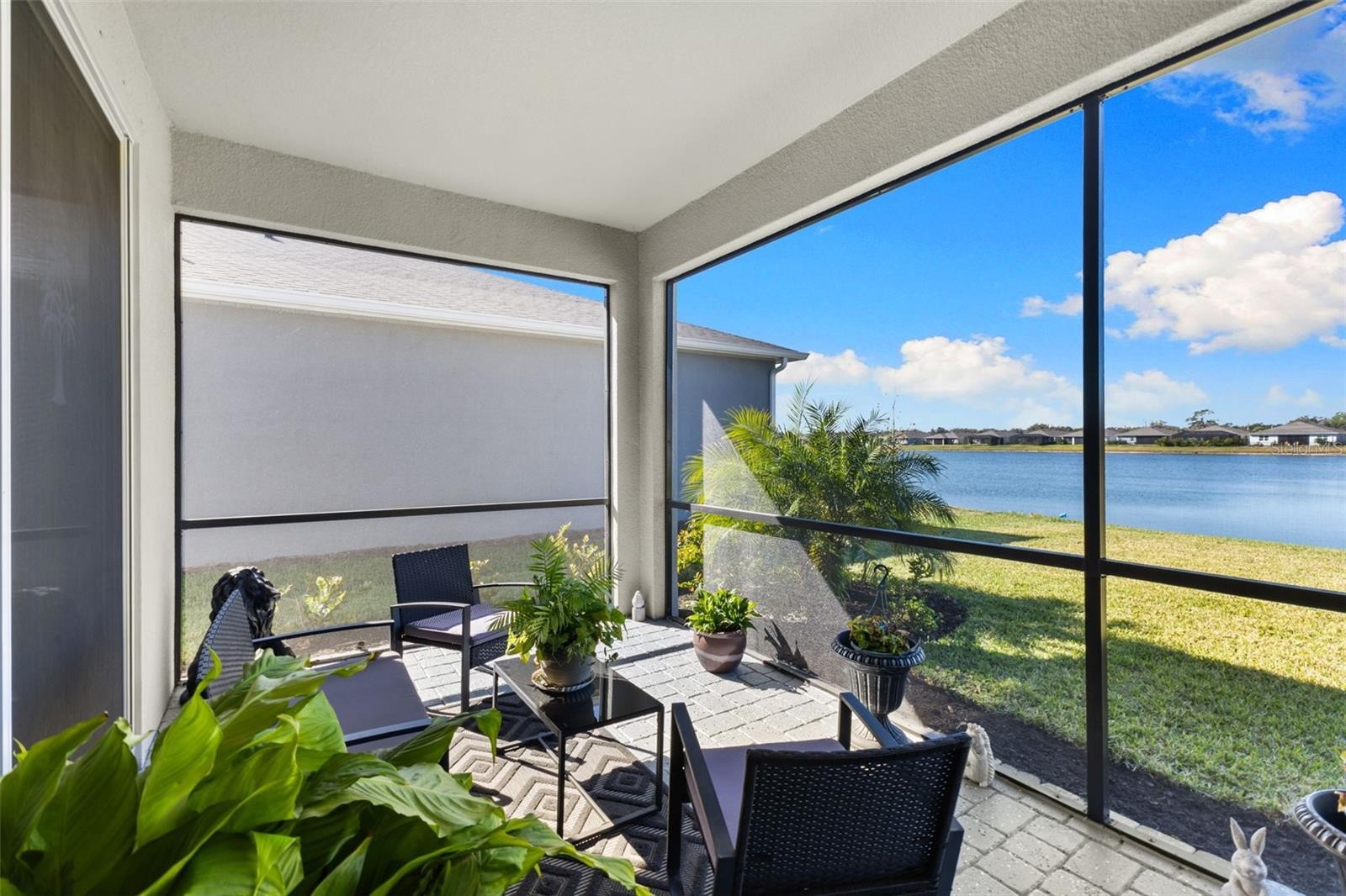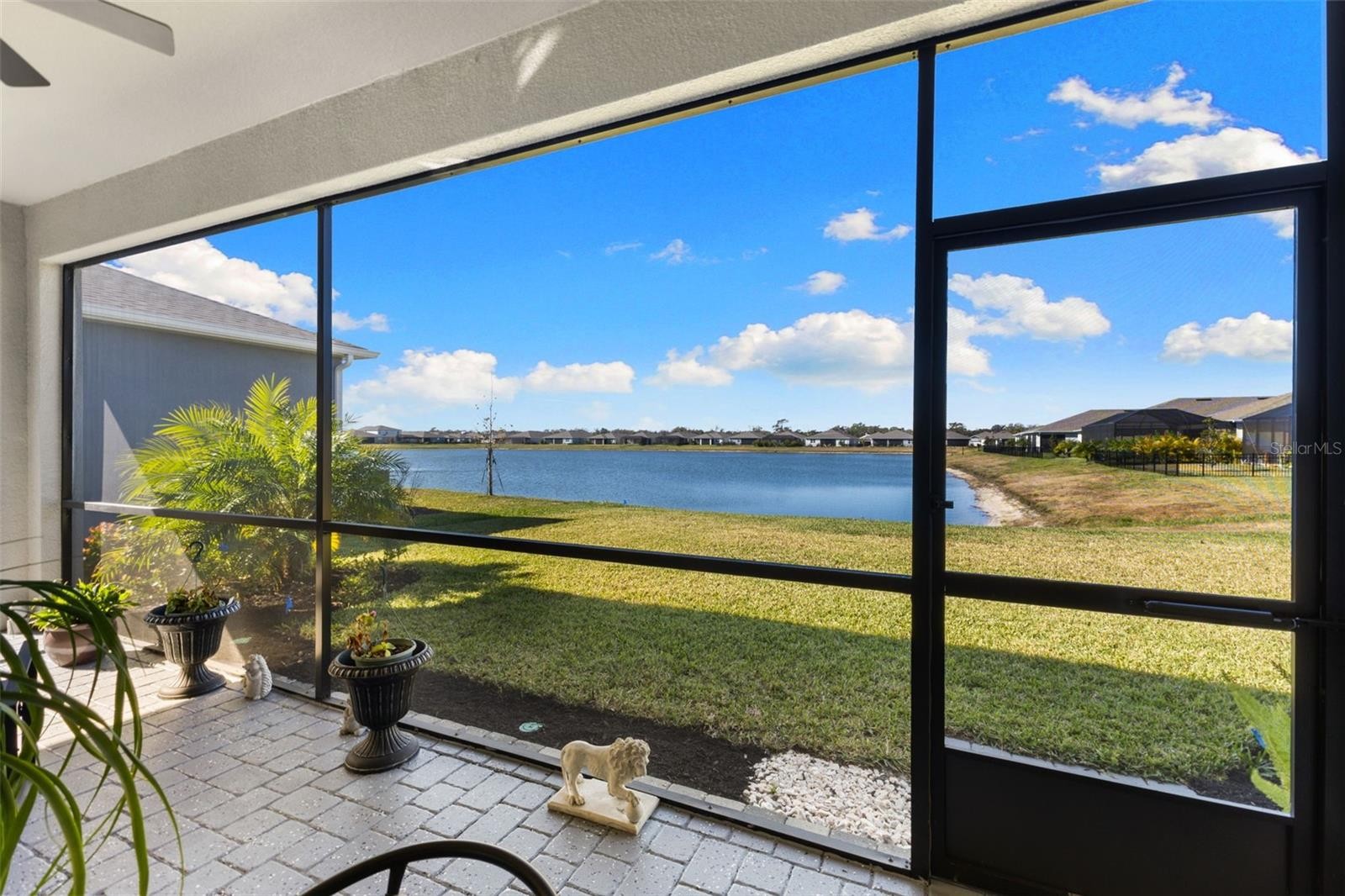 Move-in ready and only one year old, this beautifully maintained home is located in the gated community of Windwater in Parrish, perfectly positioned between Lakewood Ranch and the rapidly growing Parrish area with new shopping, dining, and everyday conveniences close by. Offering 2,005 square feet of thoughtfully designed living space, the home features 3 bedrooms, 3 bathrooms, a dedicated study, and a 2-car garage. The open floor plan is enhanced by wood-look tile throughout the main living areas and flex space, creating a cohesive and inviting feel. The kitchen features 42" painted cabinetry, quartz countertops, ample storage, and flows seamlessly into the main living and dining areas, ideal for both everyday living and entertaining. The primary suite provides a private retreat with dual sinks and a glass-enclosed shower, while the additional bedrooms offer comfort and privacy for guests or family. The owner has added ceiling fans, upgraded lighting, blinds, and additional storage, eliminating the wait and expense of post-construction upgrades. Enjoy outdoor living on the large covered and screened lanai overlooking a peaceful pond. With gated access, a prime location, and modern finishes throughout, this home offers the benefits of new construction without the wait.