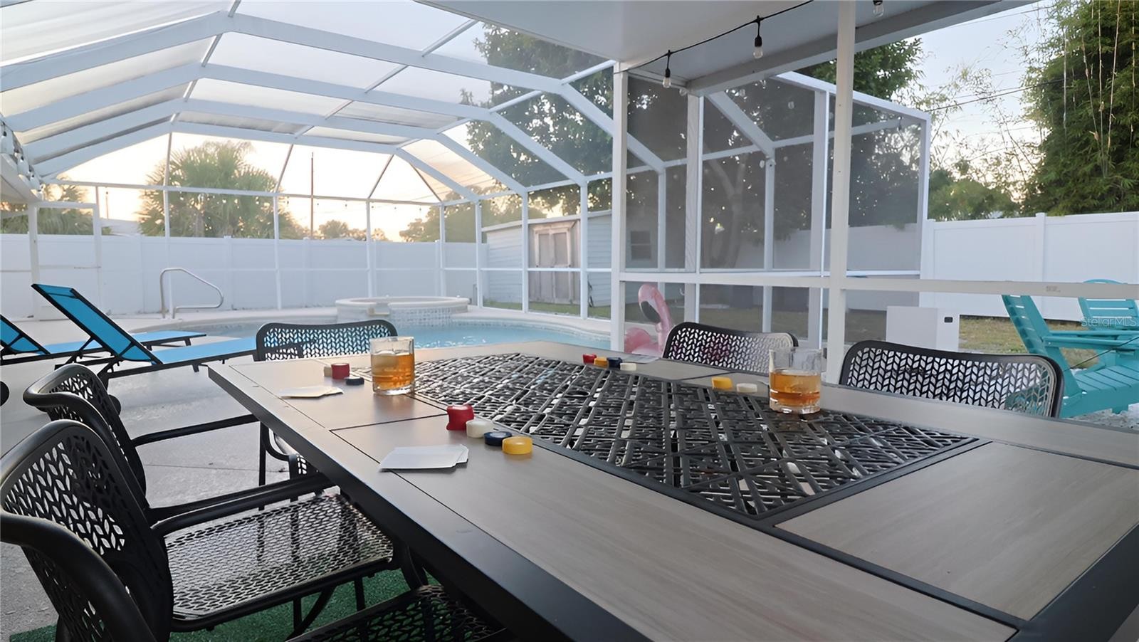 This inviting home features a spacious open floor plan with tile flooring throughout and a large Florida room that fills the space with natural light. NO HOA, NO CDD. The private, fully fenced backyard serves as a tropical oasis, complete with a sparkling pool and hot tub, while the primary suite offers convenient direct access to the pool deck. Perfectly situated for outdoor enthusiasts, the property is just minutes from the recreational amenities at G.T. Bray Park, IMG Sports academy, and a short drive to the pristine sandy beaches of Bradenton Beach and Anna Maria Island. Major shopping centers are just a few blocks away. Located in a quiet and friendly neighborhood. This turnkey property comes fully furnished and is currently a successful short-term vacation rental on Airbnb with a 5-star rating, offering an incredible opportunity for an immediate primary residence or a high-performing investment. No flooding issues. No hurricane damage. Peace of mind is built-in with several recent high-value upgrades: Roof (2022), Water Heater (2025), Pentair Pool Automation (2025), Outdoor Fireplace (2025), renovated master bathroom, and Two On-Site Storage Sheds.