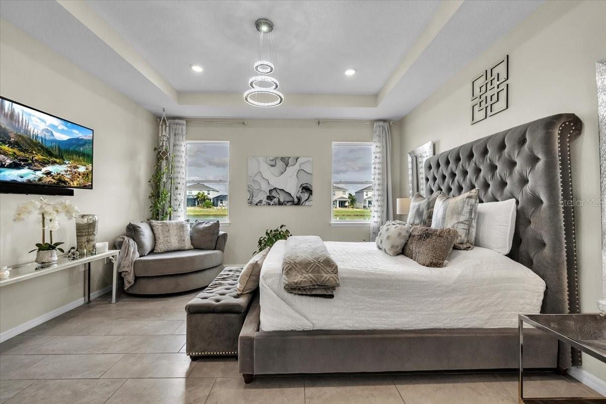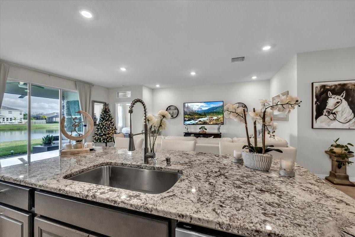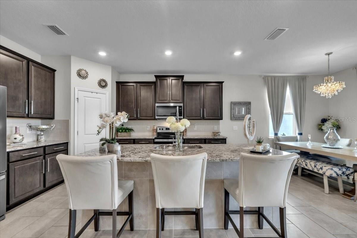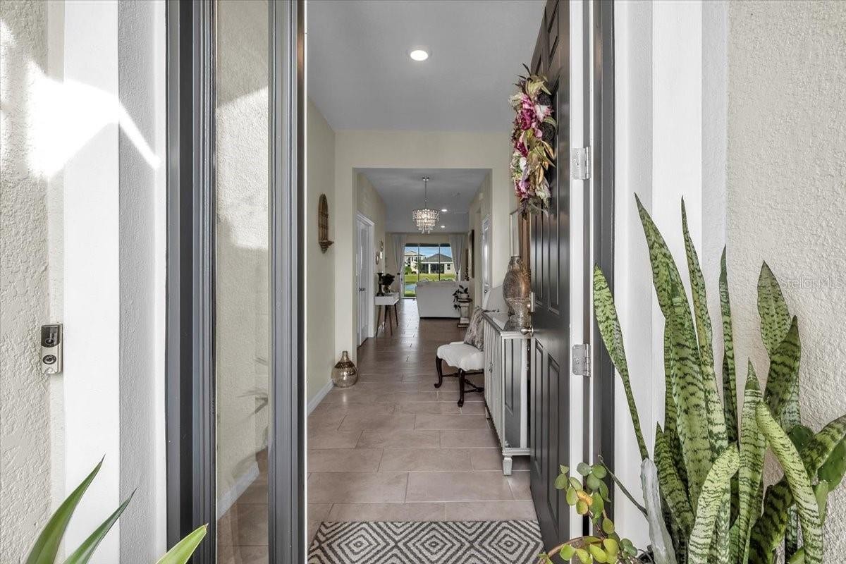 Perfectly positioned on a quiet cul-de-sac, this beautifully upgraded Lantana model by DR Horton offers the ideal blend of comfort, style, and Florida lifestyle—set against serene lakefront views filled with wildlife and natural beauty. From the moment you arrive, the home’s thoughtful upgrades, lush landscaping, and inviting curb appeal set the tone for something special. Inside, you’ll find a bright, open-concept layout bathed in natural light, creating an airy and welcoming atmosphere throughout. The heart of the home is the upgraded kitchen, featuring granite island countertops, a tile backsplash on the island, a walk-in pantry, and ample space for gathering—perfect for family meals, entertaining, or casual evenings at home. The flexible den/bonus room with elegant glass French doors adds exceptional versatility and can easily serve as a home office, media room, playroom, or even a fourth bedroom. Throughout the home, details shine—swarovski crystal chandeliers, tasteful lighting upgrades, and high-quality finishes elevate everyday living. The primary suite is a peaceful retreat, offering beautiful lake views right from your bedroom—wake each morning to birds, wildlife, and shimmering water. The spa-inspired primary bath includes a porcelain tub finish, a fully upgraded tiled shower with glass enclosure, and two walk-in closets, providing both luxury and functionality. The guest bath has also been upgraded with stylish tile and glass finishes, ensuring comfort for family and visitors alike. Step outside to the screened lanai, where picture window screens (no bars) maximize your uninterrupted lake views—an ideal spot for morning coffee or sunset relaxation. The backyard offers space and inspiration to create your dream outdoor oasis, while hurricane shutters provide peace of mind. Additional highlights include: *Epoxy-finished garage floors *Roof and appliance warranties *Tasteful landscaping with extra trees and shrubs. Turnkey potential—furnishings and TVs are negotiable. Located in the vibrant Solera community, residents enjoy resort-style amenities while being just minutes from the sports complex, library, highly rated schools, shopping, dining, and everything Lakewood Ranch provides. This is truly a wonderful home for young families, seasonal residents, or anyone seeking a move-in-ready lakefront lifestyle.