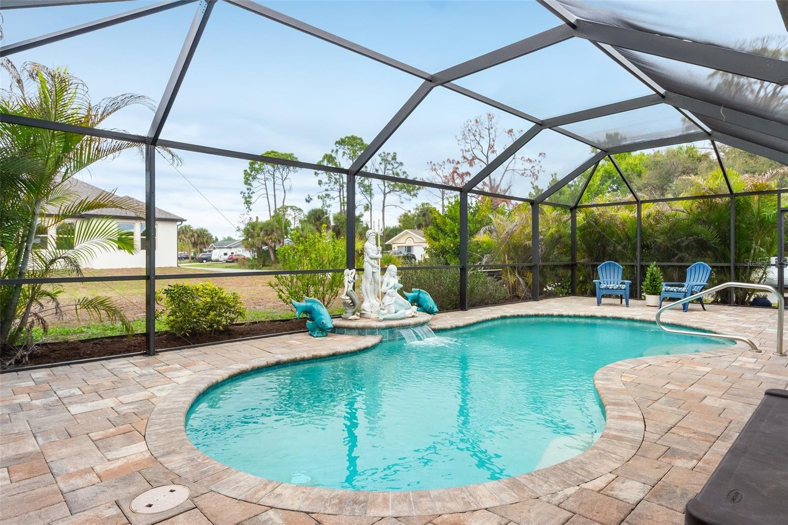 *COME TAKE A WALK THROUGH YOUR NEW HOME WITH THE 3D INTERACTIVE VIRTUAL TOUR* Prepare to be impressed with this coastal meets farmhouse 3-bedroom, 2-bathroom SALTWATER POOL HOME on a CORNER LOT with CITY WATER, tastefully updated and meticulously maintained. This property offers the perfect blend of comfortable living, prime location, and an affordable price. From the moment you arrive, you’re welcomed by lush tropical landscaping from front to back, featuring green grass, fresh mulch, exterior lighting, and a 1-car attached garage. As you approach the front entry, you’ll notice the subtle scent of blooming flowers setting the tone for the place you’ll soon call home. Step inside to a warm and inviting living space filled with natural light from large front windows. Ceramic tile flooring flows throughout, making maintenance easy and ideal for pet owners. The modernized kitchen is designed for both everyday living and entertaining, complete with laminate countertops, decorative backsplash, shaker cabinetry with soft-close features, recessed lighting, a closet pantry, and a window over the sink overlooking your private pool. BONUS – All stainless-steel appliances are included. The quaint dining area, accented by a CUSTOM sliding barn door, creates the perfect setting for relaxing meals at home. The guest bedrooms are located down the hallway and offer comfortable, inviting spaces. The primary suite easily accommodates a king-size bed and features an en-suite bathroom with a walk-in shower and updated vanity. The guest bathroom includes a tub/shower combo and is conveniently located across from the bedrooms. Additional features include a hallway linen closet and a laundry closet with full-size washer and dryer. Sliding glass doors lead to your spacious covered and screened lanai — truly Florida living at its best. A sparkling saltwater 2020 built POOL with a waterfall feature becomes your private retreat, with plenty of deck space for loungers, storage, and entertaining. Enjoy outdoor living year-round on the covered patio with epoxy coating flooring (non-slip) — perfect for morning coffee or evening dining. The backyard also features a pet door for your furry friends and Areca palm trees lining both sides of the pool area, creating a private tropical oasis. Conveniently and centrally located just minutes from the new Coco Plum shopping center, top-rated GOLFING, DINING, PARKS, PUBLIC BOAT RAMPS, MARINAS, AND BEACHES, plus I-75, medical facilities, a water park, the Atlanta Braves Spring Training Stadium, Wellen Park (home of the popular Sunday farmers market), the Tampa Bay Rays facility, historic downtown Punta Gorda, Harbour Walk, Fishermen’s Village, and just a short drive to Fort Myers and the barrier islands of Manasota & Siesta Key beaches! Don’t miss your opportunity to own this incredible home. Say yes to this address — and start making memories!
