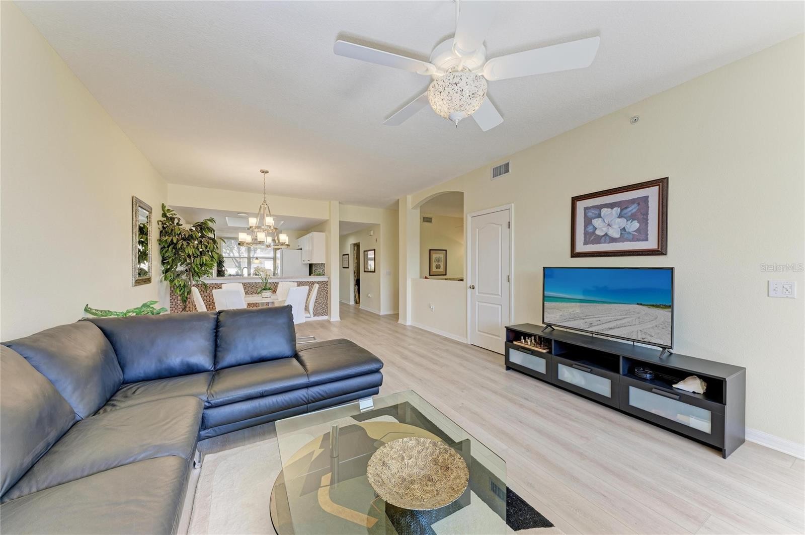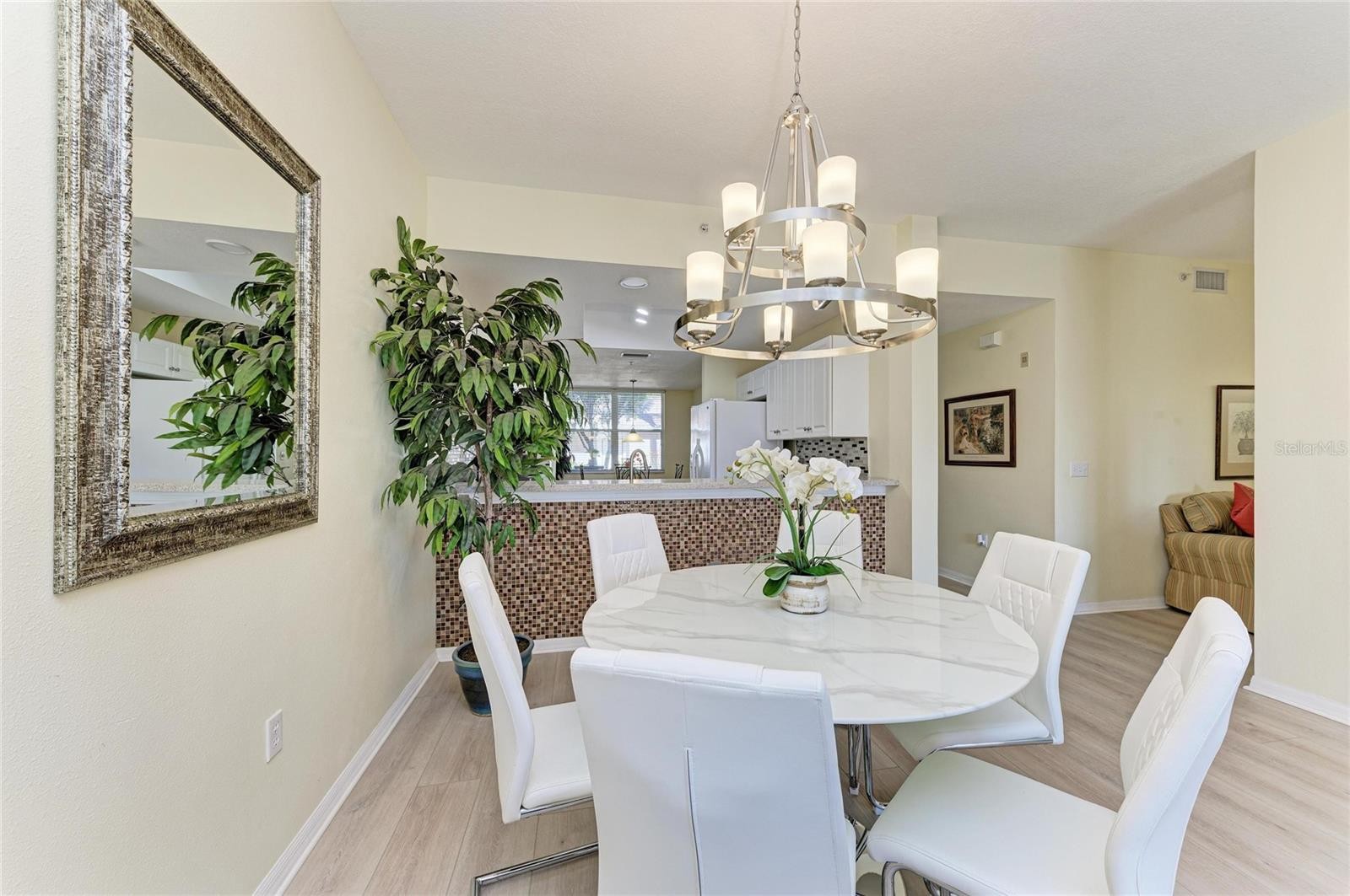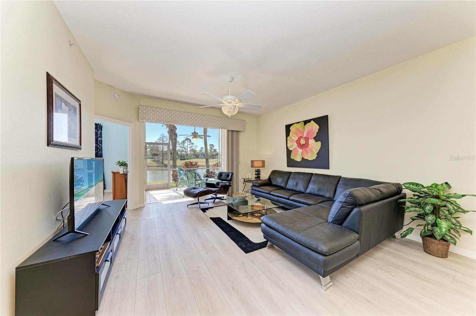 Welcome to this beautifully updated Barrington condominium in the pristine Heritage Oaks Golf & Country Club, where golf and social membership are included. This desirable first-floor residence offers 2 bedrooms, 2 bathrooms, and a versatile flex room, ideal for a home office, den, or additional living space. Light and inviting, the condo features new LUXURY VINYL PLANK flooring throughout (installed 01/26) paired with designer lighting, creating a fresh, modern aesthetic. The updated eat-in kitchen is both stylish and functional, showcasing quartz countertops, Whirlpool appliances, and a glass tile backsplash, perfectly suited for everyday living and entertaining. The open-concept floor plan is filled with natural light and flows effortlessly through the living and dining areas. Sliding glass doors open to a covered, screened-in patio, where you’ll enjoy tranquil lake views and sweeping vistas of the 14th fairway, an ideal setting for morning coffee or relaxed evenings with friends. An extended one-car garage provides ample space for golf clubs, beach gear, and additional storage. Heritage Oaks is a bundled private golf community featuring an 18-hole championship course, resort-style pools, clubhouse with dining, fitness center, tennis, pickleball, and a vibrant social calendar—all included with ownership. Ideally located near shopping, dining, and top-rated medical facilities. Just a 25-minute drive to the world-renowned Siesta Key Beach. Whether you’re seeking a full-time residence, seasonal retreat, or income-producing property, this condo delivers the best of Florida living in a welcoming, gated community. Schedule your showing now.