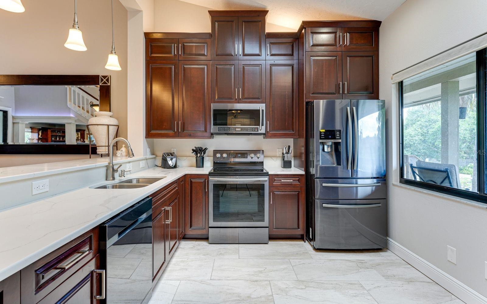 LAKEFRONT VALUE with Stunning Views in this Luxury End Unit, that is "Low-Cost Living" in sought after Lake Arrowhead. This end unit condo offers 3 Bedrooms and 3 Bathrooms and is completely remodeled! The air conditioner and heat pump were replaced in April 2026 and the updated chef's kitchen is high-end quality with custom cabinetry, stainless appliances and quartz tops. $539/month in low HOA fees covers the roofs and includes much of your insurance cost! Rarely available, this 1,800 square foot condo offers comfortable living with high-end finishes throughout. The enclosed 3rd bedroom offers a large walk-in closet and private bathroom and it currently is used as an entertaining lounge area with incredible views of the lake and wildlife through the floor to ceiling windows! Furniture is negotiable! HOA fees include cable, pest control, exterior maintenance and lawn care. At this price, this condo is more affordable than most residential homes! Lake Arrowhead is a hidden gem in South Sarasota with lush landscaping and lakes. The Great Room with high ceilings has a large sliding glass door that opens onto the spacious, covered lanai that overlooks the lake with a very peaceful view. The Key West Clubhouses is next door and is steps away for convenience. Enjoy the heated community pool, the large community room-kitchen-library in the clubhouse and the fishing pier. This is value priced for a larger condo in Lake Arrowhead and this condo is one-of-a-kind with it's fine finishes! Management is on-site and this condo includes one carport space. This community has everything you could desire and is located next to the 72-acre Red Bug Slough Preserve that is pet friendly and has several miles of hiking trails, a playground, picnic shelters & a fishing dock. Lake Arrowhead consists of 64 condos which is conveniently located to everything, including the World Renowned Siesta Key Beaches, Legacy Trail, Costco, several fitness centers, Publix, A+ Schools, Fine Restaurants and the Gulf Gate Library. UTC Mall and cultural downtown Sarasota are within 20 minutes for opera, movie theaters, dining, Selby Gardens & more! Make this your favorite place to relax and unwind as you are surrounded by tropical landscaping and lake views from nearly every room. Come and see this amazing condo; EZ show!