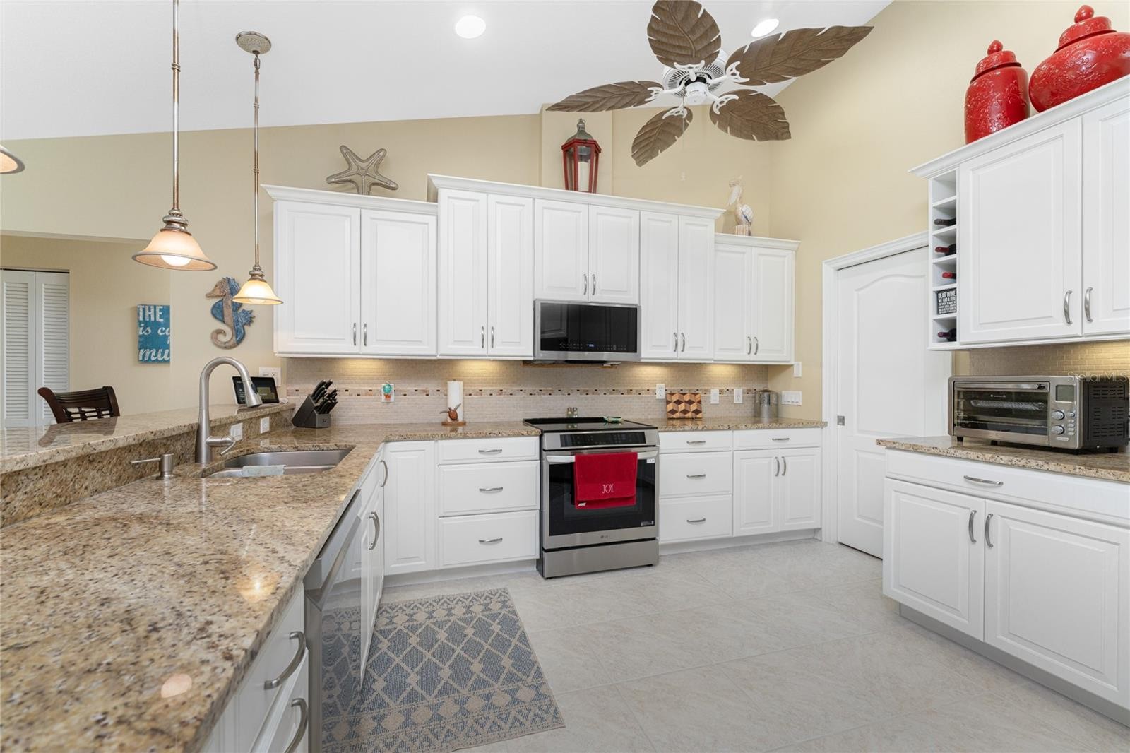 Experience true resort-style living in the sought-after Lakes of Jacaranda—a beautifully maintained community offering outstanding amenities without high HOA fees, NO FLOOD INSURANCE REQUIRED, or a CDD. This home is an ENTERTAINERS' DREAM, loaded with luxurious upgrades that provide comfort, efficiency, and long-term peace of mind. Major improvements include a NEW ROOF (2024), A/C (2021) with NEW DUCTWORK (2024), R-39 insulation, IMPACT WINDOWS, hurricane shutters, and a GENERATOR PLUG-IN at the main power panel. Decorative shutters throughout enhancing both curb appeal and security. The kitchen features wood cabinetry and new appliances (2025), and a beautifully converted CUSTOM BUILT ENTERTAINING BAR . Step outside to your private outdoor retreat with a resurfaced pool (2020), electric pool heater, new pool pump (2025), and a pool cage painted in 2022—perfect for year-round enjoyment. The oversized well manicured yard provides privacy and a serene landscape. CAR ENTHUSIASTS, hobbyists, and storage lovers will appreciate the OVERSIZED GARAGE, complete with a DEDICATED WORKSHOP area and a newly coated garage floor (2024)—ideal for projects, tools, or extra storage. Residents of Lakes of Jacaranda enjoy access to a clubhouse, community pool, tennis courts and a beautiful lakefront nature trail with paved paths throughout. all in a central Venice location close to Venice beach and jetty, quaint Venice Island, shopping, dining, and the WELLEN PARK DISTRICT. This home offers the perfect blend of luxury, lifestyle, and big-ticket updates already completed—so you can move in and enjoy from day one. SOME FURNITURE INCLUDED ( see attached available inventory)