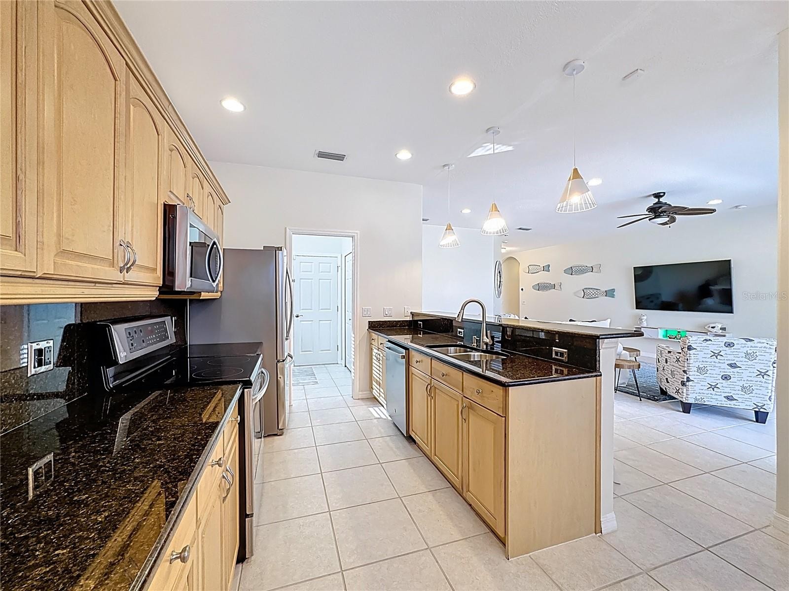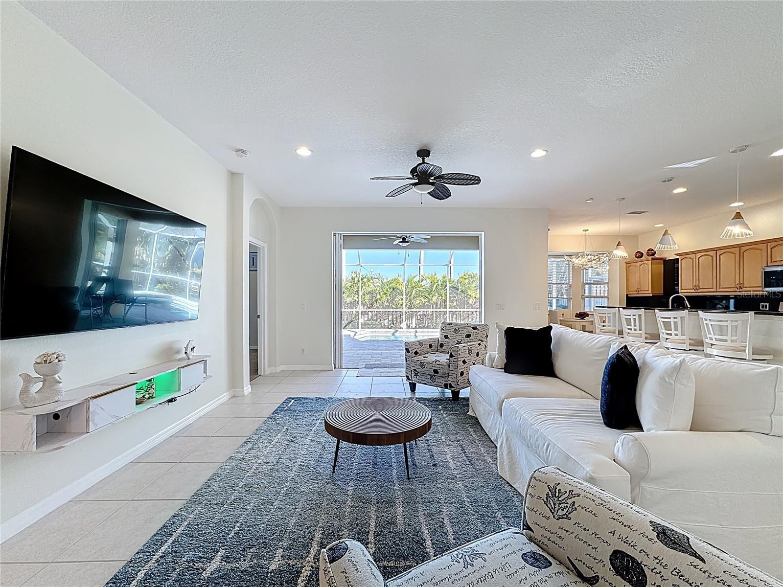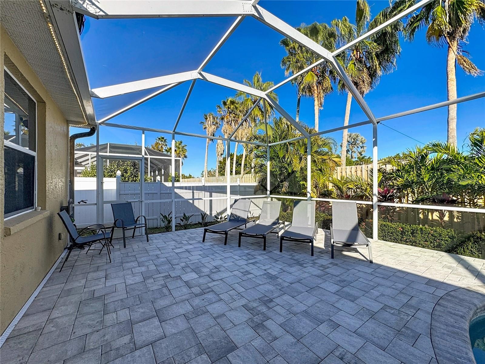 Welcome to Levi Lane! This rare 3-bedroom, 2-bath pool home is tucked away on a charming cul-de-sac in an unbeatable location. Inside, you’ll find a blend of ceramic tile and wood laminate flooring, granite kitchen countertops, and a bright eat-in kitchen surrounded by beautiful windows overlooking the expansive screened lanai and sparkling heated saltwater pool. Both the kitchen and the main living area feature large pocket sliding doors, creating an open, airy flow that’s perfect for entertaining and indoor/outdoor living. The interior laundry room offers a laundry tub, storage cabinets, and a large window that fills the space with natural light. The spacious primary suite includes a sliding door, oversized window, and walk-in closet. The ensuite bath features a walk-in shower with a window and dual sinks for added convenience. A welcoming foyer greets you upon entry, while the split-bedroom floor plan provides privacy with a hallway leading to the second and third bedrooms and a roomy second full bath. Conveniently located near I-75, Siesta Key, and UTC shopping and dining. Roof replaced in 2022 and newer A/C—this home is priced to sell. Schedule your showing today!