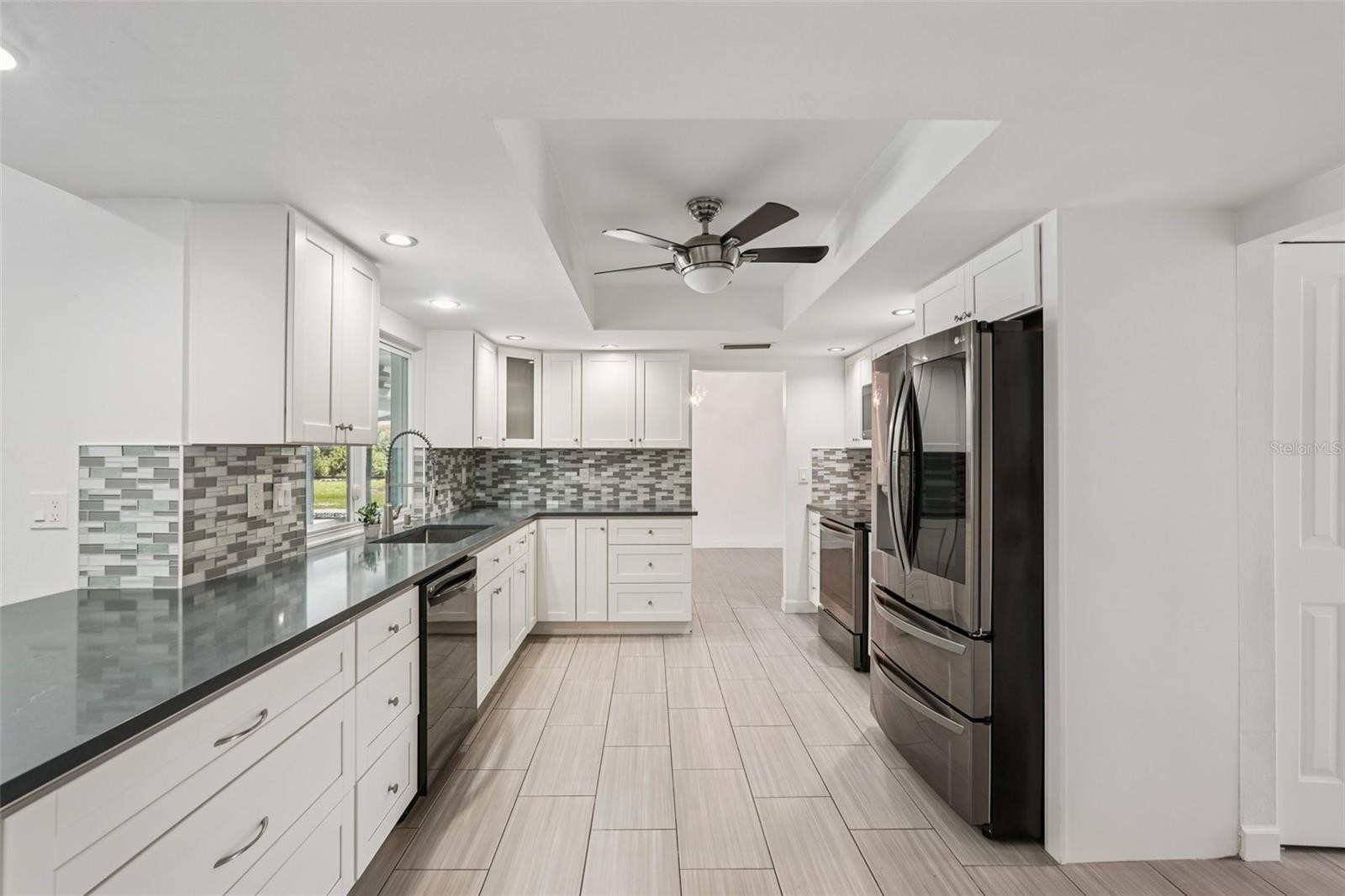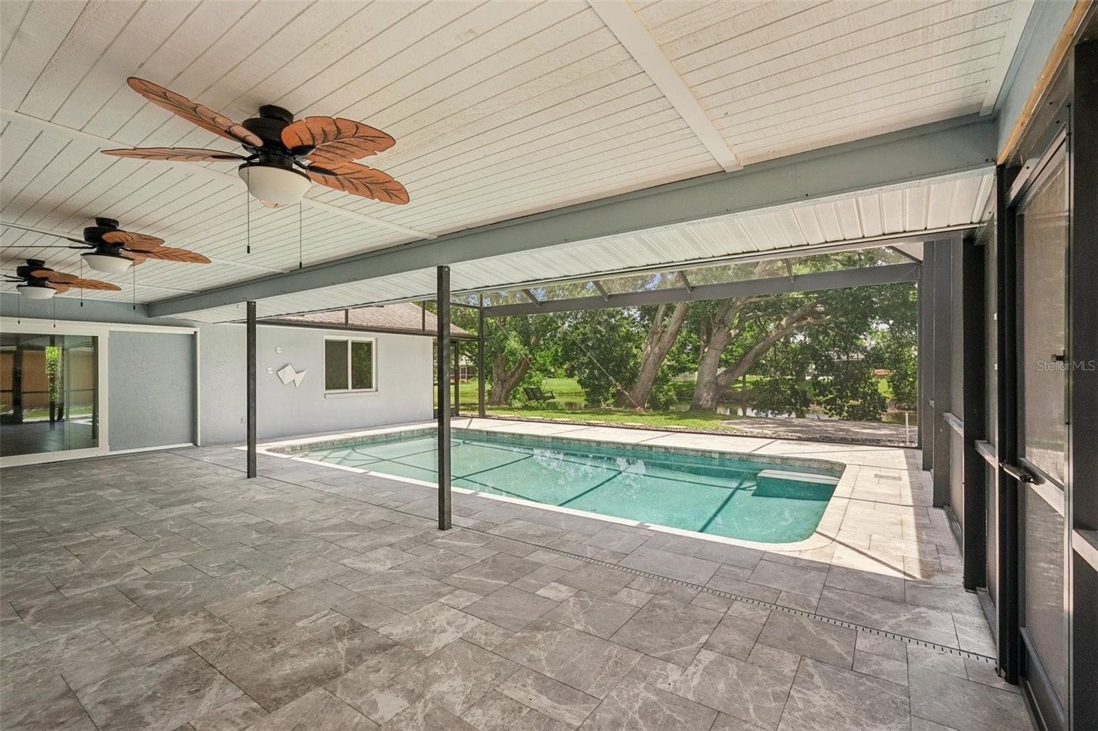 Welcome to 5385 Dominica Circle — a bright, cheerful, and completely updated waterfront pool home nestled in a highly desirable, tree-canopied neighborhood in the heart of Sarasota. Meticulously maintained and thoughtfully modernized inside and out, this home offers both style and peace of mind. It features hurricane-impact windows and is located in an X flood zone. Inside, the light-filled interior showcases an open-concept, split floor plan with three spacious bedrooms and two fully renovated, spa-like bathrooms. The heart of the home is the sleek, modern kitchen, highlighted by stone countertops, stainless steel appliances, and a variety of extras any chef will appreciate. The kitchen flows effortlessly into multiple living and gathering spaces, creating a warm and inviting atmosphere for friends and family. Neutral tile flooring runs throughout the entire home, enhancing the clean, cohesive design. With water views from every room, natural beauty becomes part of everyday living. Step outside to a newly redesigned pool area set against a tree-lined backyard overlooking a peaceful lake. Designed as a serene tropical retreat, the pool features Caribbean-blue water, elegant stone decking, and a panoramic clear-view screen enclosure that maximizes uninterrupted water views. The charming backyard is perfect for relaxing—watch wildlife from the bench swing, unwind in the hammock, or simply enjoy the shade of mature trees. Ideally located with easy access to beaches, shopping, dining, malls, fitness trails, and entertainment, this home delivers the ultimate Sarasota lifestyle. Move-in ready — just bring your flip-flops and bikini. Schedule your private tour today.