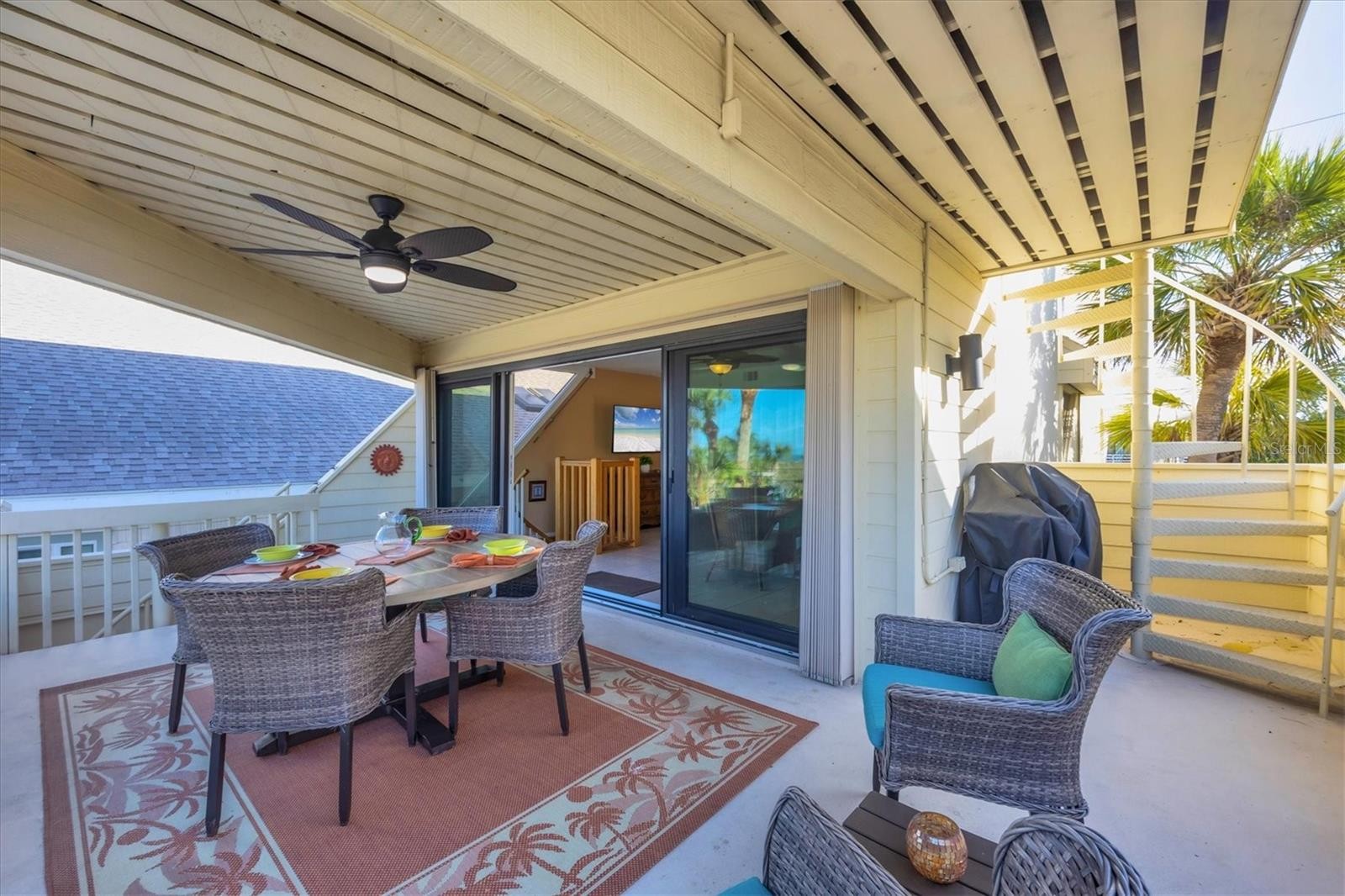 A beachfront home for the price of a condo. 540 Beach Road on Siesta Key is a three-story standalone Gulf front residence with private beach access and breathtaking views directly on famed Siesta Key Beach. Privacy and exclusivity await at Tiffany Sands, an enclave of only 9 units. With expansive Gulf views from the moment you open the front door, 540 Beach Road is a detached single-family condo overlooking the sandy shores of the #1 beach in America. This meticulously maintained 2 bedroom, 3 ½ bath home features a bonus cabana room and one-car attached garage. With pride of ownership and nearly 1,900 sq ft under air, this maintenance-free standalone villa features private beach access. Every floor boasts floor-to-ceiling sliding glass doors and expansive terraces with stunning unobstructed views of the shimmering shores of the Gulf. With just over 3,000 sq ft total combined living space, the light-filled, open-plan main level consists of a recently remodeled kitchen, half bath, living room and dining area. 16’ newly installed sliding glass doors provide access to the main covered deck, a great spot for your morning coffee and perfect for entertaining or relaxing as you revel at the majestic views of the beach and stunning sunsets. On the upper floor you will find 2 large en-suite bedrooms with private, newly updated full baths. The main suite has spectacular views with floor-to-ceiling sliding glass doors that open to a private deck, the perfect spot for sunning or reading a book. Main suite has 3 large closets and an oversized bathroom with double vanities and skylights. The 2nd bedroom features a cozy deck with sliders and a private bath with skylight. On the upper floor you will find a large laundry closet with new washer & dryer. The downstairs cabana room is complete with full bath and storage, floor-to-ceiling sliders and a covered patio with direct access to the beach. 540 Beach comes with private parking for 5 cars and additional guest parking. 540 Beach is situated precisely one-half mile to the heart of Siesta Key Village and a half mile to world renowned Siesta Key Public Beach. You have the option to make this your forever home or a lucrative vacation rental, as the present owners enjoy months of using the residence for their personal pleasure and rent it for a portion of the year, garnering substantial rental income. Home is equipped with 2 A/C units- one of which is BRAND NEW, new sliders on the upper levels, new hot water heater and storm shutters. 15+ years remain on the roof warranty. A one-of-a-kind property, 540 Beach is a private beachfront residence that feels like a home but is priced like a condo. Available turnkey furnished.