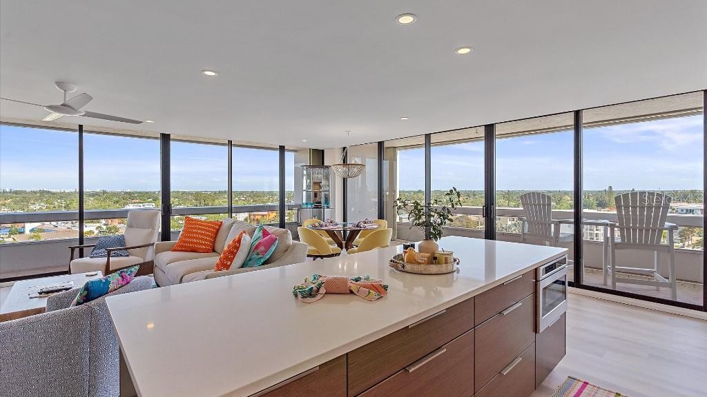 This fully updated spacious and open condominium located on Siesta Key boasts incredible views of the Gulf of America and Siesta Key Village. Enjoy them one of your three private balconies! An abundance of bright natural light flows throughout the unit. With its private beach access, pool area, common area, and close proximity to the Siesta Key Village, this unit offers an abundance of lifestyle.
