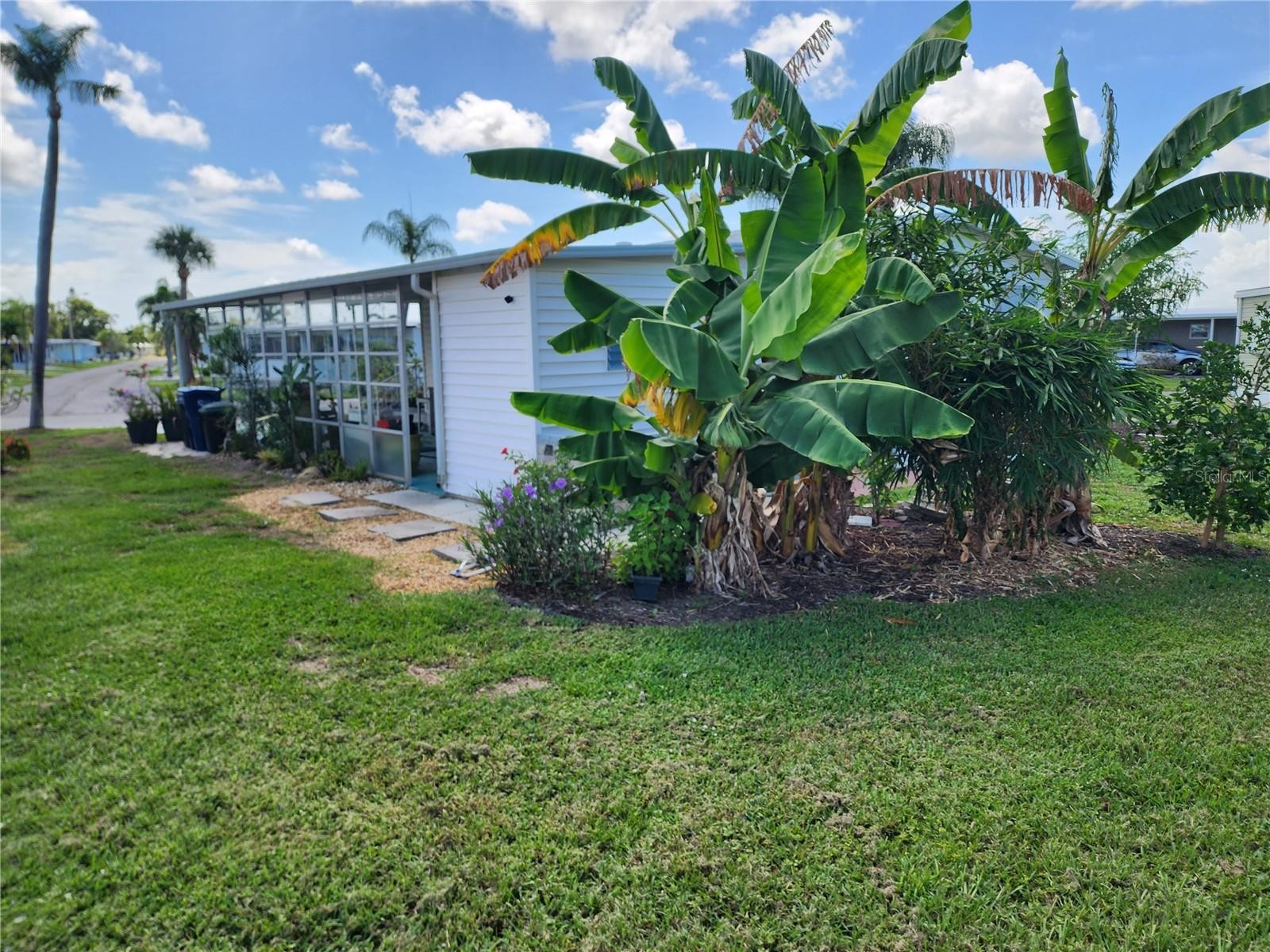 Tucked gracefully on one of the largest corner lots, this property unfolds like a living canvas—its architecture and landscape in constant dialogue with the elements. A mature, self-sustaining garden wraps the home in shades of green and purpose, flowering with pollinator-friendly native flora and fruit trees that tell their own story—banana, soursop, mango, fig, and the tart intrigue of fingerling lime. It is less a yard, more a quietly humming ecosystem. Step into the kitchen and you enter a space completely reborn. Gutted and reimagined in June 2024, it now stands as a culinary atelier: custom all-wood cabinetry, a gourmet faucet, and a deep sink set with an integrated dish drainer, strainer, and cutting board. A suite of stainless steel appliances—stove, microwave, and dishwasher—gleam under bespoke lighting. Below, plumbing is brand new, invisible but essential. The bathroom echoes the same philosophy of craftsmanship and ritual. Taken down to its barest bones and reassembled with intention: a separate tiled shower and a Japanese soaking tub nest beside custom lighting and a backsplash that blurs the line between utility and art. Beneath your feet, ceramic tiles over cement board hold warmth from the EcoSmart tankless water heater that whispers efficiency. The house breathes through its updated lungs—windows replaced in thoughtful succession (kitchen 2018, south side 2022, small bedroom 2025), each a frame to shifting light. Electricity has been completely modernized: a new breaker box in early 2024, intelligent switch upgrades in the kitchen and bath, outlets refreshed for today’s needs. The AC, a brand-new installation from June 2025, promises comfort through the heat. A 5/8" plywood subfloor anchors it all, hidden beneath layers of luxury vinyl. The structure above is protected by a metal roof, its fastenings freshly sealed. New ceiling fans in every room sway gently beneath clean lines. Weather has left its fingerprints: Hurricane Milton in late 2024 took a swipe at the lanai roof and siding, and Hurricane Debby sent water through a plugged downspout. But the response was swift and thoughtful—floors bleached and sealed, drywall replaced, integrity restored. Out back, the Bee & Butterfly Garden unfurls like poetry, planted in 2023 and still growing. It's more than beautiful—it’s medicinal, edible, and alive with motion. A living tribute to resilience, regeneration, and the quiet art of intentional living.