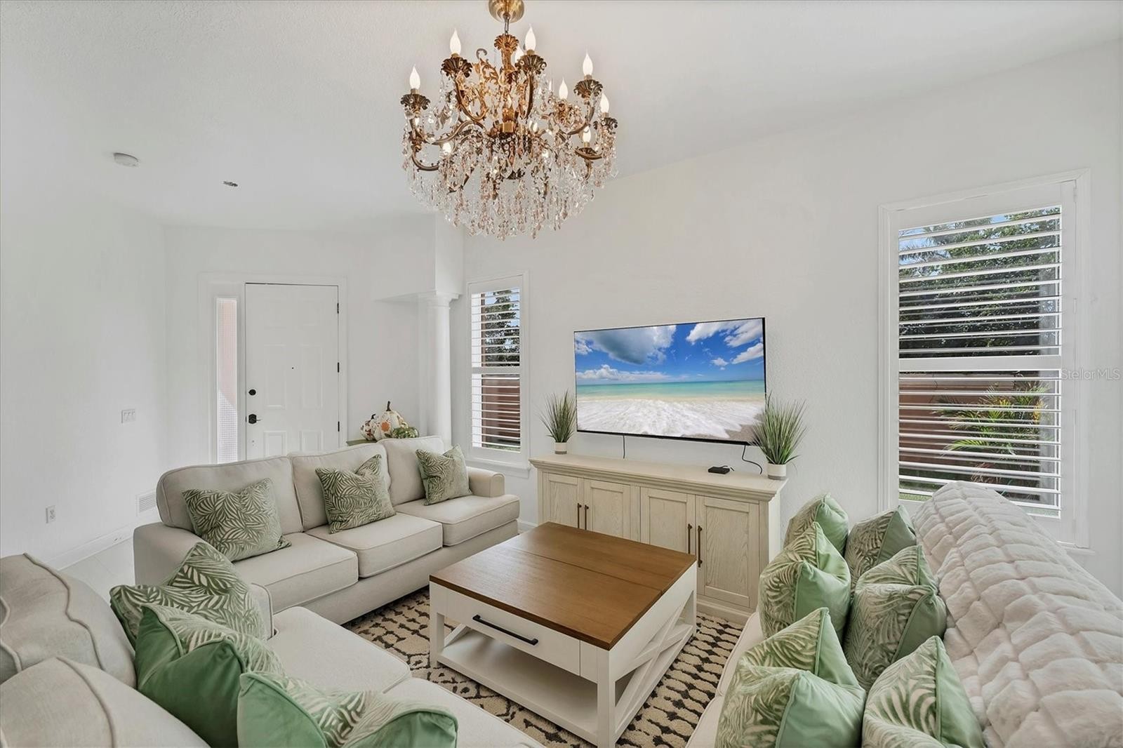 "WINTER SPECIAL! REDUCED over $300,000 SINCE INITIALLY ACTIVE" The crown jewel of the coveted, gated Academy Park Villas for sale. This ultra private 3 bedroom, 3 bathroom just received a total renovation. Newly enclosed screened in porch, heightened ceilings, peindre un parquet floors, designer carpet and a grande terrace paver patio that wraps around the Villa. Crystal chandelier, and luxurious furniture. Over 2200 SF living space, no stairs, 2 car garage, within the CLOSEST residential community adjacent to IMG Academy campus, across the street from Legacy Hotel, and close proximity to IMG Golf, Detwiler Market, and restaurants.