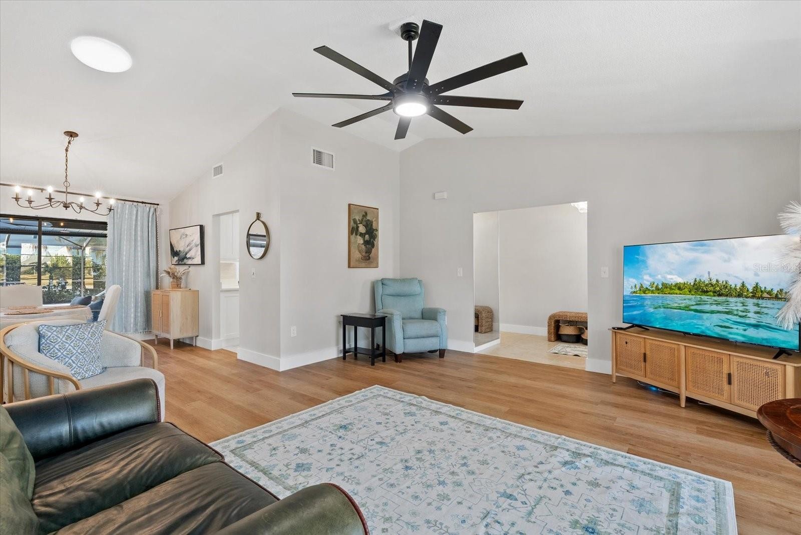Set on a .42-acre pond-front homesite, this beautifully updated pool home in Center Gate Estates offers space, privacy, and everyday convenience. With 2,273 square feet of thoughtfully updated living space, this 3-bedroom, 2-bath home features vaulted ceilings, abundant natural light, and a layout designed for both entertaining and comfortable daily living. One of the most loved features of the home is its flexible floor plan, offering two separate living and dining areas, perfect for gatherings or quiet evenings. The fully renovated kitchen is a true centerpiece, showcasing Calacatta quartz countertops, new cabinetry, updated appliances (2024-25) and a long breakfast bar. It opens seamlessly to the dining and living spaces and flows effortlessly to the lanai — ideal for entertaining. Both bathrooms have been beautifully remodeled as well. Step outside to your private outdoor oasis. The pool has been resurfaced along with new waterline tile, and the lanai cage has been painted and re-screened. A spacious covered area provides the perfect setting for outdoor dining, lounging, or enjoying Sarasota’s year-round sunshine. Beyond the pool, the nearly half-acre lot truly sets this home apart. Mature oak trees frame tranquil pond views, offering rare privacy and usable yard space seldom found in this central location. The exterior of the home, driveway, walkway, and patio have all been freshly painted, further enhancing curb appeal and move-in-ready condition. Additional updates include: luxury vinyl plank flooring (2026), new carpet in the bedrooms (June 2024), fresh interior paint, and updated lighting fixtures. Located just 5 minutes to I-75, convenient to major shopping and dining, and close to downtown Sarasota, this home offers the perfect balance of neighborhood charm and accessibility. With a remarkably low HOA fee of just $243 per year and zoning for top-rated schools including Ashton Elementary School, Sarasota Middle School, and Sarasota High School, this property delivers location, lifestyle, and lot size in one exceptional opportunity.