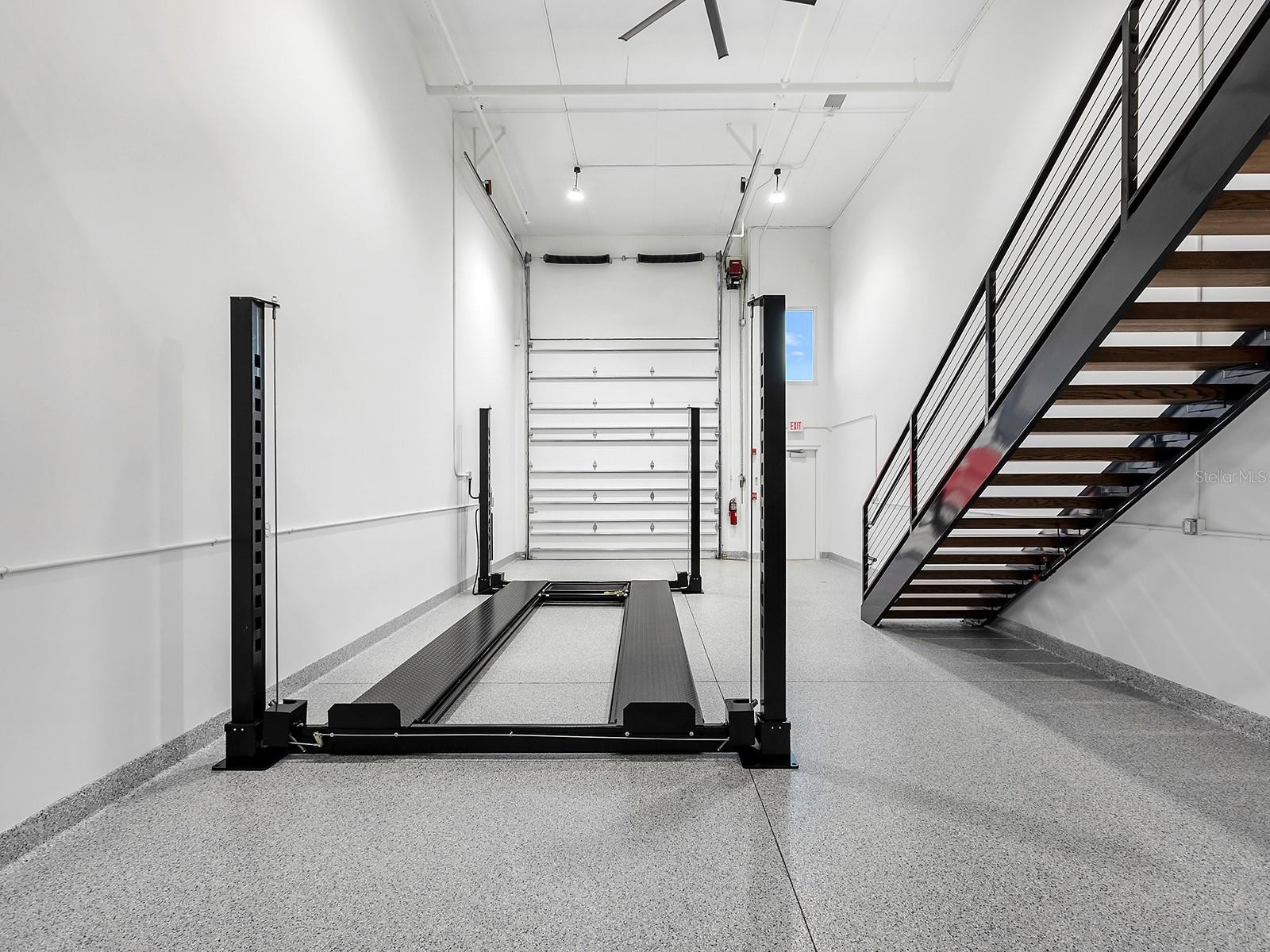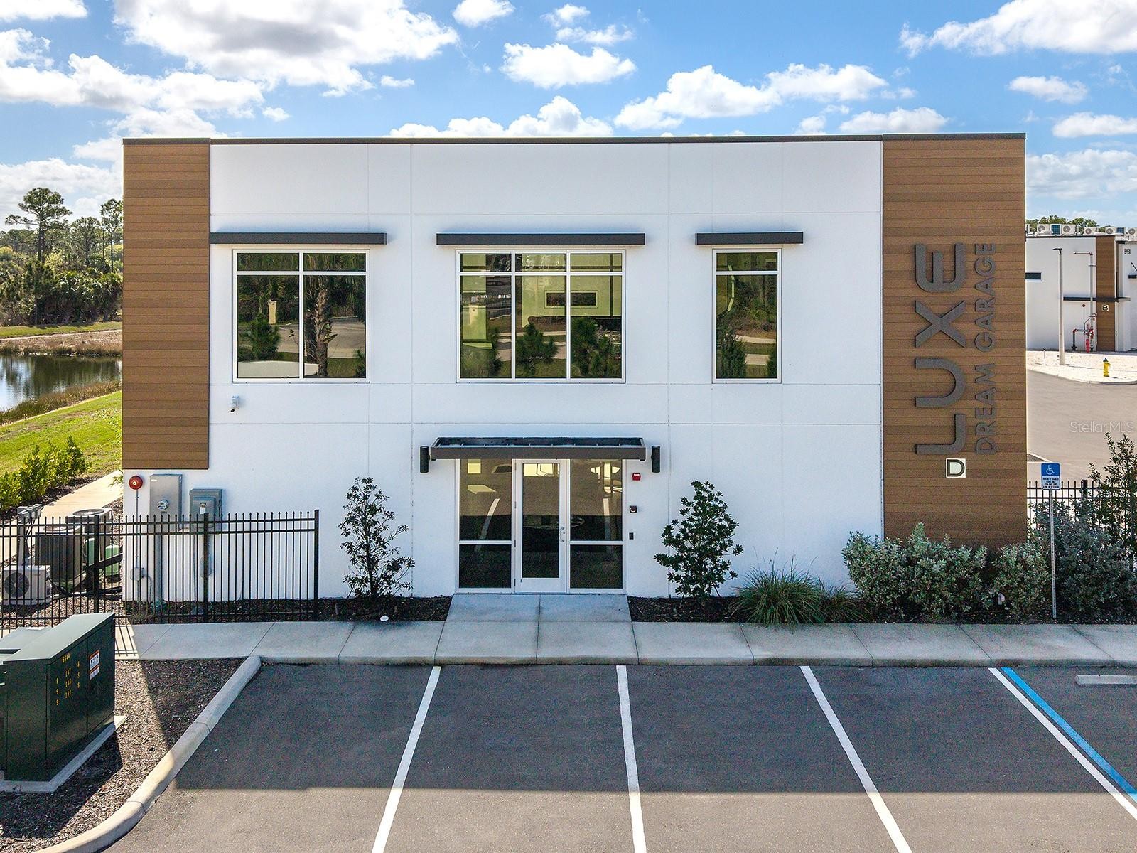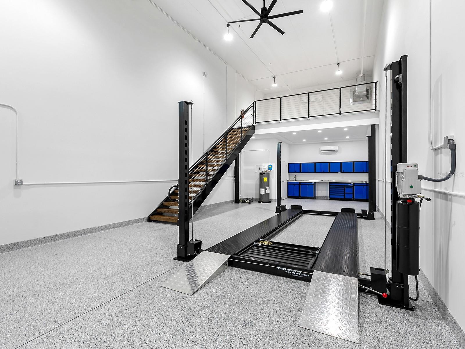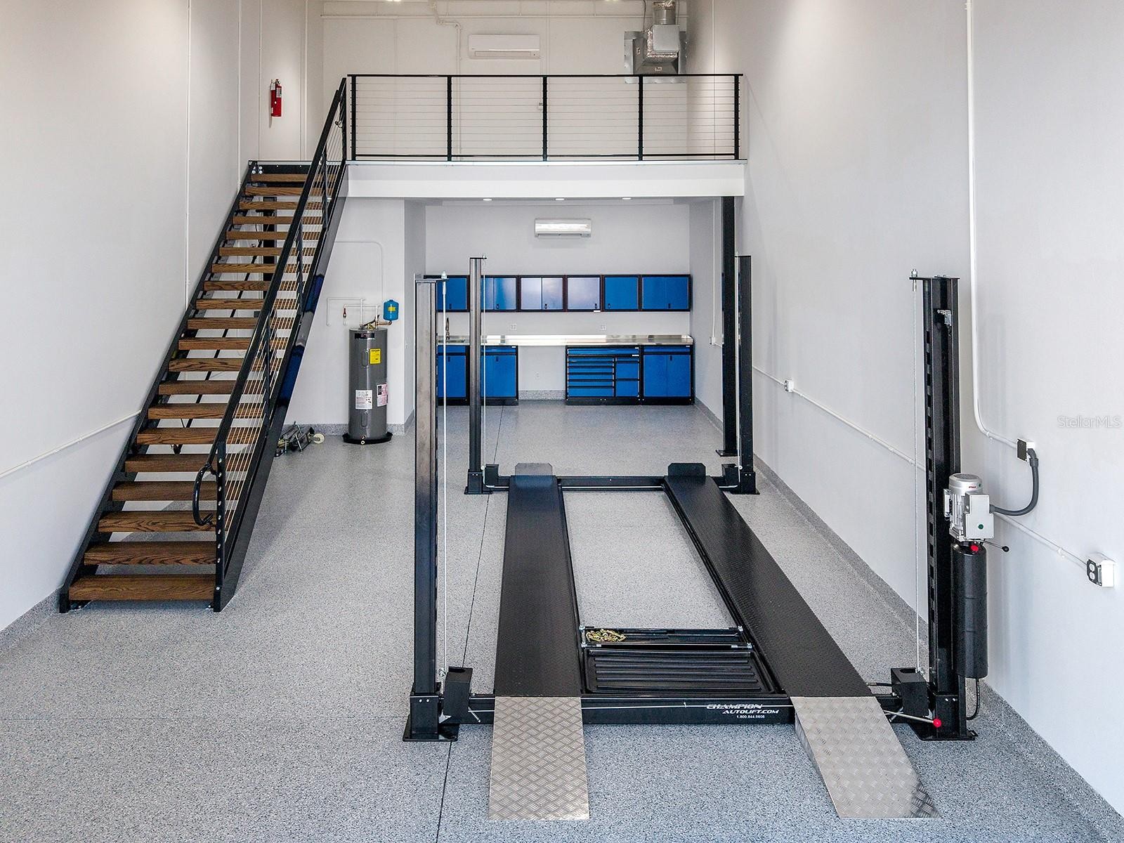 Welcome to Luxe Dream Garage Sarasota, where automotive passion meets thoughtful design. This 1,056-square-foot, fully built-out, climate-controlled garage suite offers a turnkey opportunity for collectors seeking more than just storage. Already equipped with a vehicle lift, the space comfortably accommodates multiple vehicles while creating an environment designed to both protect and showcase prized automobiles. The garage also features a dedicated workshop area, thoughtfully outfitted with abundant cabinetry, stainless steel countertops, two mini-splits for climate control, and durable epoxy flooring, creating the perfect space for detailing, maintenance, or hands-on projects. Just off the workshop is a well-appointed full bathroom featuring a wood vanity with a quartz countertop, an LED-accented mirror, and a glass-enclosed walk-in shower with tiled walls and floors, bringing comfort and refinement rarely found in traditional garage environments. Every element of the interior has been designed to balance functionality with a clean, polished aesthetic befitting a true collector’s retreat. A custom staircase leads to a versatile loft, offering an inviting lounge or entertainment space ideal for relaxing, hosting friends, or simply “talking shop” while appreciating the vehicles below. Constructed with concrete and steel for durability and storm resilience, the unit also features an approximate 14x12-foot overhead door, 21-foot ceilings, impact-rated windows, and advanced security systems throughout the community, designed to protect valuable collections. Located at 7100 Professional Parkway, just minutes from Lakewood Ranch and downtown Sarasota, owners enjoy access to the private gated Luxe Dream Garage community, which includes a detail bay, RV service area, and an exclusive Owners Club with curated events and amenities such as golf simulators, a sports bar, and gathering spaces for fellow enthusiasts. More than storage, this is a private automotive retreat, a place designed for those who want to work on, showcase, and celebrate the machines they love. Minutes from UTC, Waterside Place, downtown Lakewood Ranch, Sarasota, Gulf beaches, Mote Aquarium, Benderson Park, and the Sarasota Polo Fields, this unit blends modern elegance and effortless Florida living.