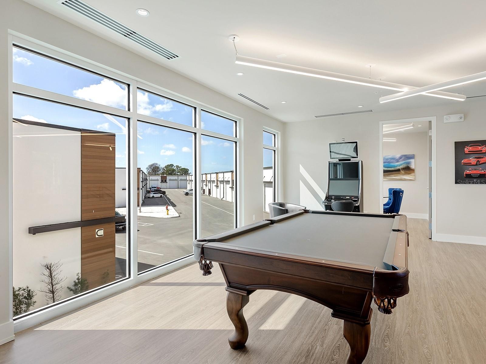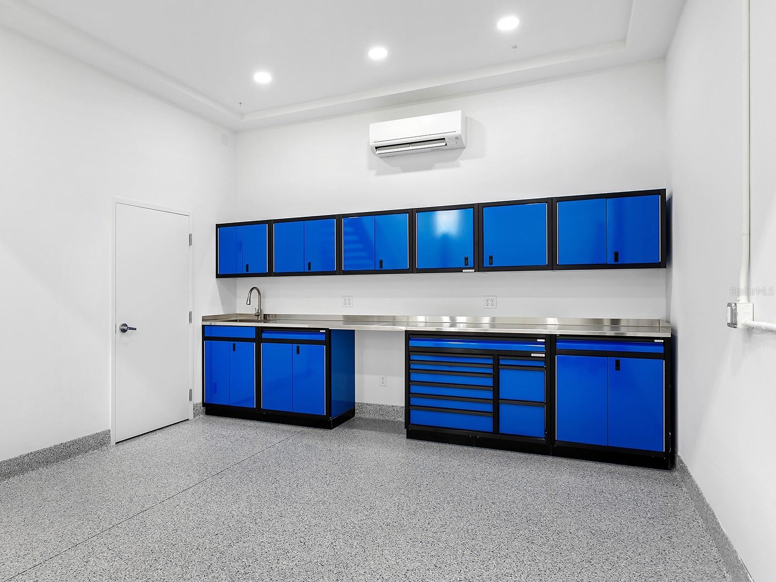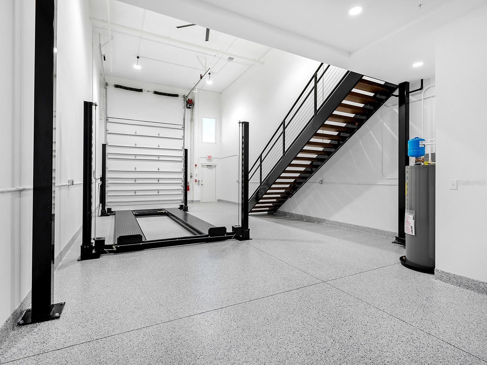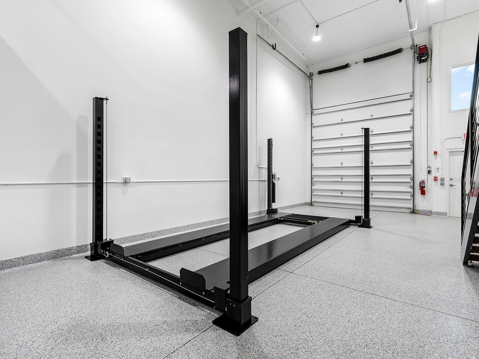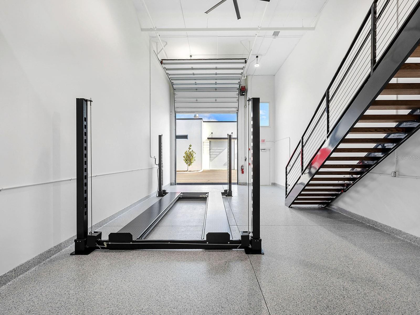 Welcome to Luxe Dream Garage Sarasota, where automotive passion meets thoughtful design. This 1,056-square-foot, fully built-out, climate-controlled garage suite offers a turnkey opportunity for collectors seeking more than just storage. Already equipped with a vehicle lift, the space comfortably accommodates multiple vehicles while creating an environment designed to both protect and showcase prized automobiles. The garage also features a dedicated workshop area, thoughtfully outfitted with abundant cabinetry, stainless steel countertops, two mini-splits for climate control, and durable epoxy flooring, creating the perfect space for detailing, maintenance, or hands-on projects. Just off the workshop is a well-appointed full bathroom featuring a wood vanity with a quartz countertop, an LED-accented mirror, and a glass-enclosed walk-in shower with tiled walls and floors, bringing comfort and refinement rarely found in traditional garage environments. Every element of the interior has been designed to balance functionality with a clean, polished aesthetic befitting a true collector’s retreat. A custom staircase leads to a versatile loft, offering an inviting lounge or entertainment space ideal for relaxing, hosting friends, or simply “talking shop” while appreciating the vehicles below. Constructed with concrete and steel for durability and storm resilience, the unit also features an approximate 14x12-foot overhead door, 21-foot ceilings, impact-rated windows, and advanced security systems throughout the community, designed to protect valuable collections. Located at 7100 Professional Parkway, just minutes from Lakewood Ranch and downtown Sarasota, owners enjoy access to the private gated Luxe Dream Garage community, which includes a detail bay, RV service area, and an exclusive Owners Club with curated events and amenities such as golf simulators, a sports bar, and gathering spaces for fellow enthusiasts. More than storage, this is a private automotive retreat, a place designed for those who want to work on, showcase, and celebrate the machines they love. Minutes from UTC, Waterside Place, downtown Lakewood Ranch, Sarasota, Gulf beaches, Mote Aquarium, Benderson Park, and the Sarasota Polo Fields, this unit blends modern elegance and effortless Florida living.