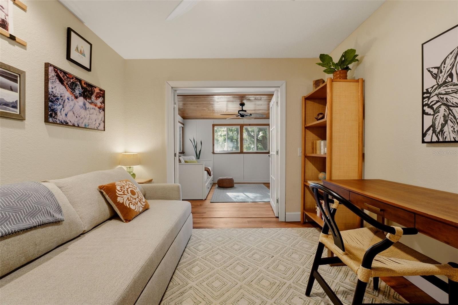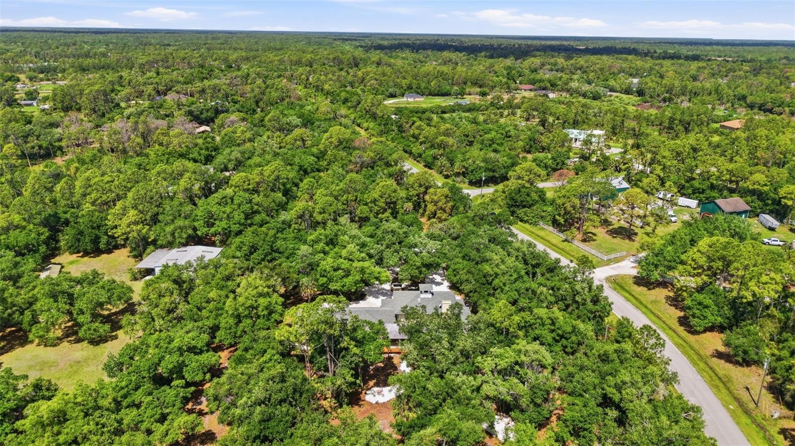 Set behind a private gate and framed by nearly 4 acres of lush landscape, this one-of-a-kind farmhouse estate offers space, character, and versatility rarely found in today’s market. Pulling into the circular driveway, the setting feels intentional with mature oak and palm trees, new fruit trees, and natural wooded buffers which create a sense of quiet separation while being just minutes away from everyday conveniences and Gulf beaches. The home itself immediately stands out with its expansive wrap-around front porch, an inviting extension of the living space and the perfect place to unwind, entertain, or simply take in the peaceful surroundings. Thoughtfully designed and meticulously maintained, this residence offers over 3,200 square feet under air with 4 bedrooms, 4 full baths, and a flexible Florida room that easily functions as a 5th bedroom, office, or private guest retreat. Inside, the home reflects a curated, relaxed aesthetic with warm textures, natural tones, and modern finishes. The main living area is spacious and comfortable, anchored by a wood-burning fireplace and enhanced by new engineered hardwood flooring. Sliders open to the screened lanai, seamlessly connecting indoor and outdoor living while overlooking the private backyard with a hammock area and fire pit, ideal for evenings under the stars. The kitchen has been tastefully updated with quartz countertops, tiled backsplash, newer appliances, and a generously sized breakfast bar perfect for gathering. Off the kitchen is a highly functional utility wing featuring a second refrigerator, a separate 9x9 pantry room complete with built-in shelving, cabinetry, and a deep freezer. The large laundry room (26x7) provides ample space for additional storage. The first floor layout includes a private bedroom suite with updated bath and French door access to the Florida room, offering flexibility for multigenerational living or guests. Upstairs, the primary suite provides a quiet retreat with two walk-in closets (one currently styled as a dressing room) and a beautifully updated bath featuring dual vanities and an effervescent soaking tub. Two more bedrooms and another updated full bath with a deep soaking tub and shower complete the upper level. All upstairs bedrooms feature oak wood flooring, adding warmth and continuity throughout. Beyond the main residence, the property continues to deliver. The expansive yard has hidden trails beneath a canopy of oaks and cleared areas for gathering. A detached 725 square foot outbuilding with electric offers endless possibilities, ideal for a workshop, studio, or hobby space. The oversized garage accommodates two vehicles with additional room for storage, tools, or recreational equipment. Additional features include a whole-house reverse osmosis water system (2024), hot water heater (2021), upstairs AC (2020), and a brand-new downstairs AC (2025). The property is fully fenced, zoned agricultural, and allows for horses, providing flexibility for a variety of lifestyles. Despite its private, tucked-away feel, this location remains highly accessible. Approximately 25 minutes to Gulf beaches and convenient to shopping, dining, and North Port amenities. Not located in a flood zone. Extensively improved with nearly $150,000 in upgrades, this is a rare opportunity to own a property that offers both function and personality, where indoor comfort meets outdoor freedom, and every space has been designed to be lived in and enjoyed.