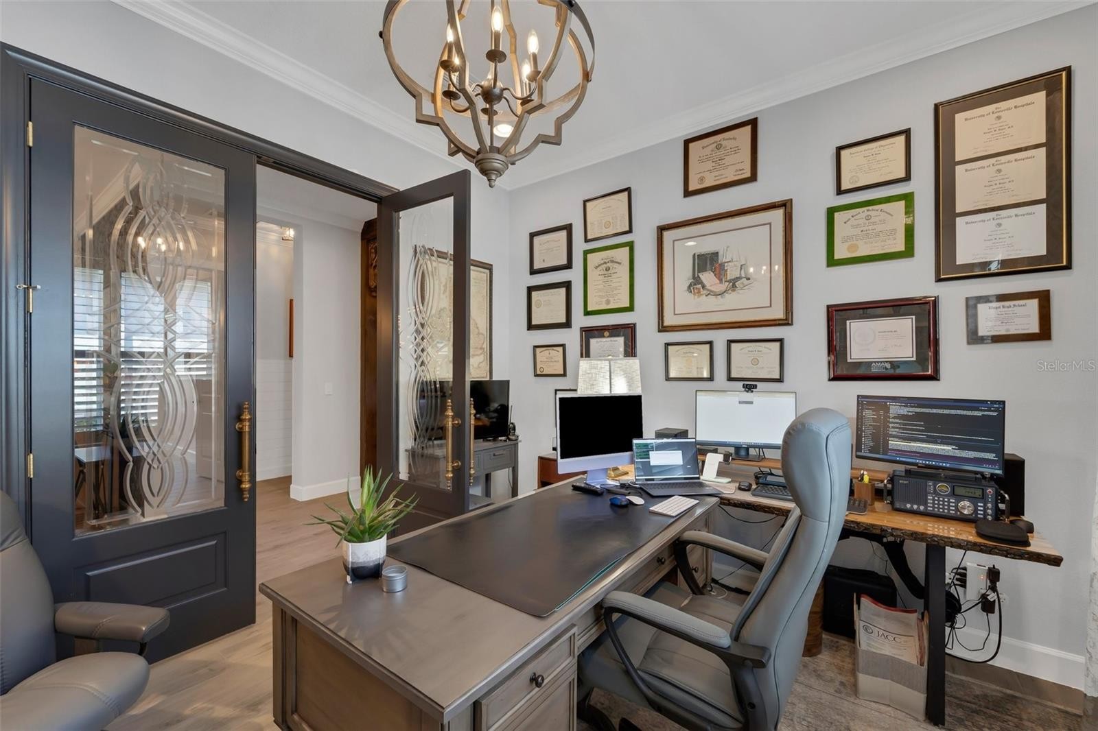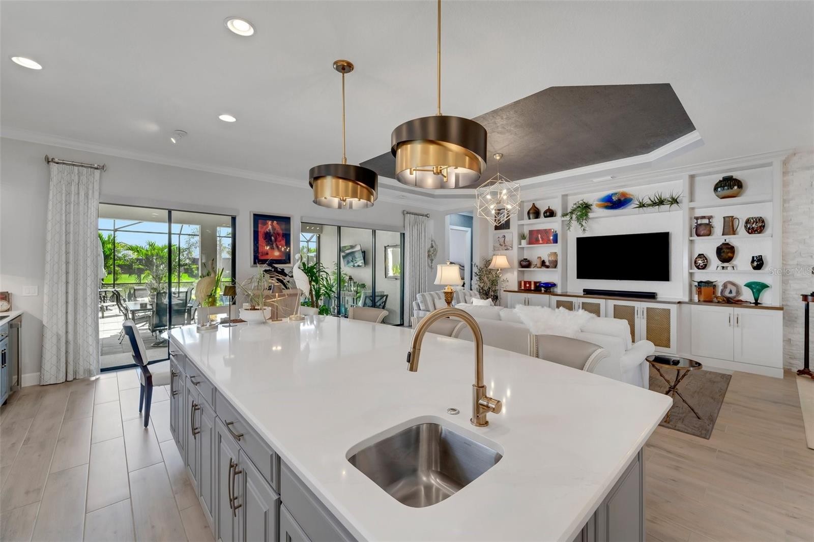 Stunning Upgraded Lazio Model Pool Home in Esplanade on Palmer Ranch Welcome to this fully upgraded 3-bedroom, 3-bathroom plus den Lazio model, offering 2,441 sq.ft. of beautifully designed living space. Built in 2020, this waterfront pool home is loaded with custom features that blend luxury, comfort, and functionality. The heart of the home is the chef’s kitchen, complete with an oversized island—perfect for hosting and entertaining. Throughout the home, you'll find elegant upgrades including designer lighting and paint, custom woodwork, window treatments, and professionally designed custom closets. Additional standout features include: Whole-home water filtration system Storm Smart hurricane shades on the lanai Custom outdoor kitchen with upgraded landscaping Tandem two-car air-conditioned garage with built-in storage Enjoy peaceful water views from your lanai, while being just steps from the Legacy Trail pedestrian gate, pickleball courts, and the community’s resort-style amenity center. Esplanade on Palmer Ranch is a gated, maintenance-free community offering world-class amenities: On-site Bahama Bar restaurant Resort-style pool, resistance pool, splash park, and hot tub Fitness center and private fitness studio with daily classes 8 pickleball courts, 2 tennis courts, and 3 dog parks Nature trail and direct access to the Legacy Trail This home is the perfect blend of luxury living and active lifestyle—schedule your private showing today!