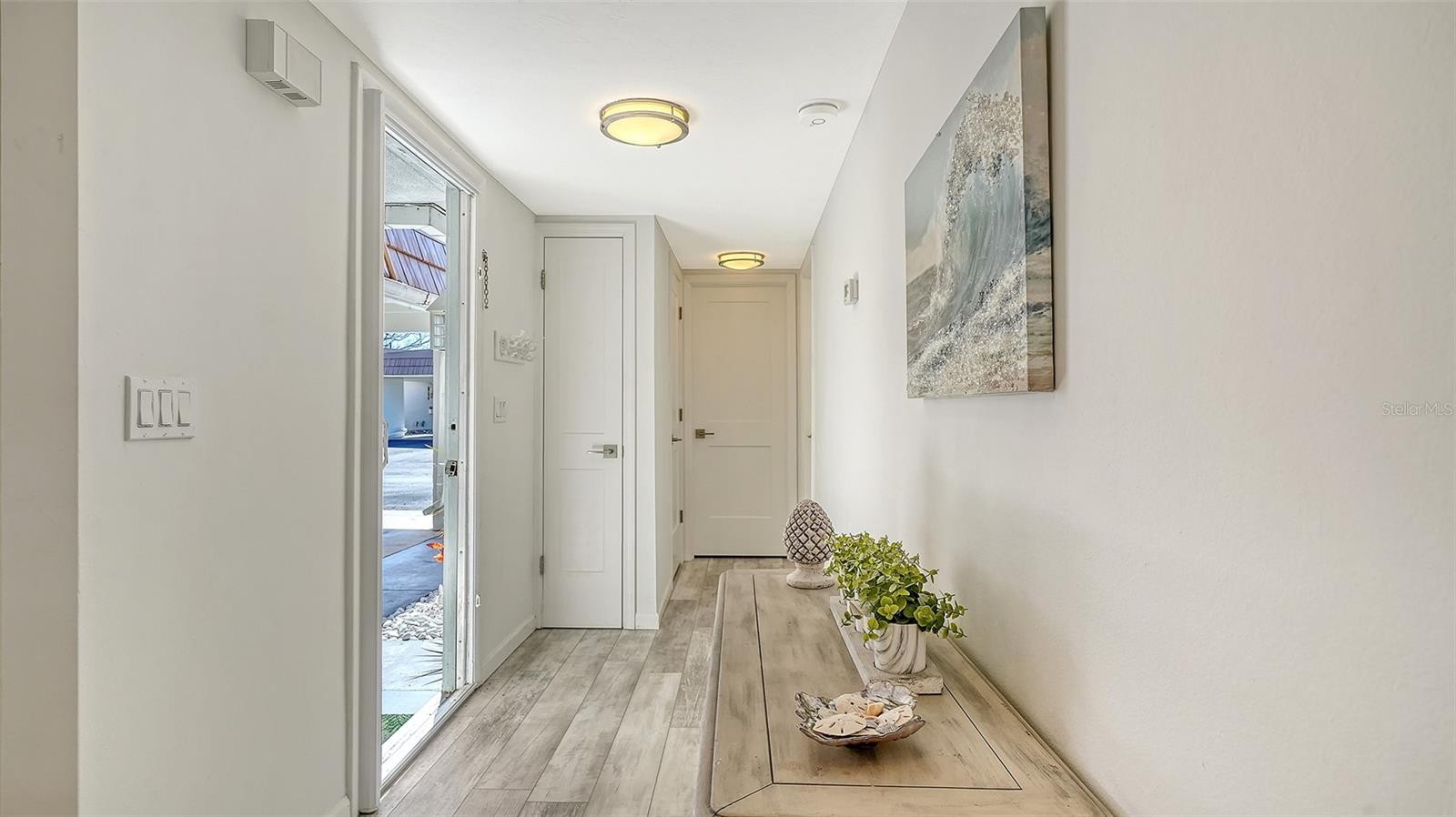 Welcome to Strathmore Riverside, a highly desirable 55+ waterfront community on Phillippi Creek with access to the Gulf of Mexico and just 1.9 miles from the Siesta Key South Bridge. World-famous Siesta Key beaches and Detwiler's Farm Market are only minutes away. This beautifully updated 2-bedroom, 2-bath villa offers 1,120 square feet under air with a desirable split floor plan. Luxury vinyl plank flooring runs throughout, complemented by high baseboards, recessed lighting, upgraded ceiling fans, and quality doors and hardware. The renovated kitchen features quartz countertops, modern wood cabinetry, stainless steel appliances, with a beautiful island for entertaining. Recessed tray ceiling and coordinating finishes create a seamless flow into the dining and living areas. Access to your own outdoor grilling area is conveniently located just outside. Enjoy a quiet, private backyard with expansive open green space and no homes directly behind you, offering added privacy and peaceful views. Both bathrooms have been upgraded with quartz countertops, updated vanities, and modern fixtures. Custom built-in plantation shutters gives you lots of privacy through out the home. Windows have also been replaced. The attached laundry room is located under the covered carport and includes additional storage space. Community amenities include a heated pool, clubhouse, fitness center, sauna, library, recreational facilities, and an active social calendar. Boat slips are available for an additional fee. (waiting list may apply). Enjoy low-maintenance living, with basic cable, water, trash, sewer included in your monthly dues.