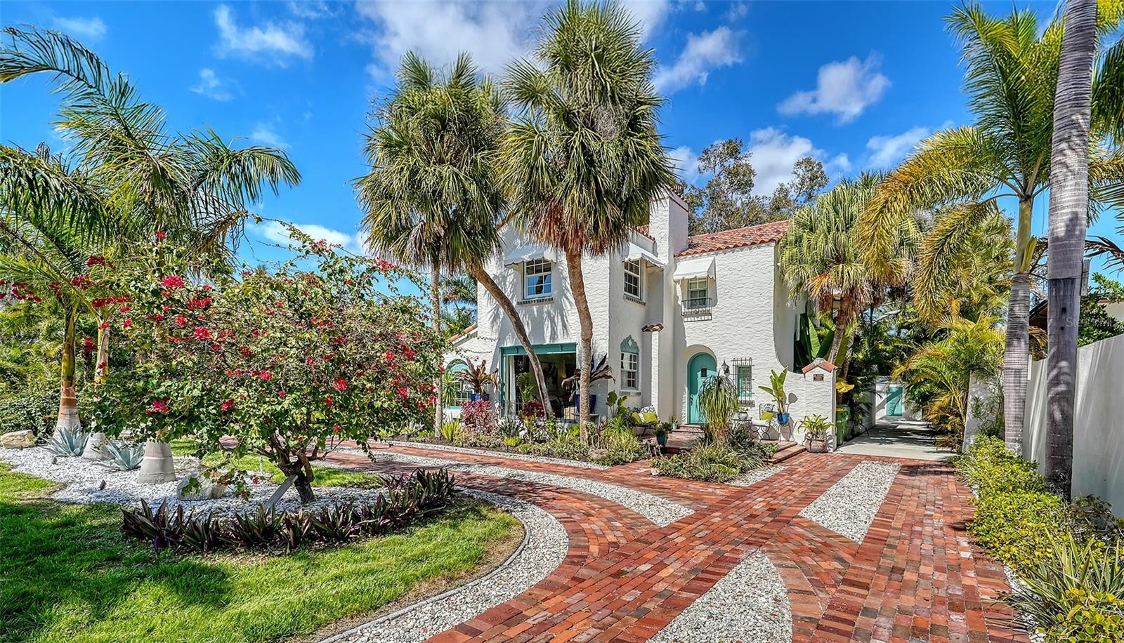 Exquisitely restored 1926 residence in Sarasota’s historic Museum Area west of the Trail. This architectural gem is one of just 13 original platted homes in the historic Sapphire Shores subdivision. Originally built for John Ringling’s circus talent scout, this home represents one of the best examples of true Mediterranean Revival architecture on the market. Set on an oversized 0.40-acre double lot located out of the flood zone and at 15 feet of elevation, this 3,100 sq ft home comprises 3 bedrooms, 2.5 bathrooms plus a sunroom/den in the main house and a 1 bedroom 1 bath detached guest house - 3,100 sq ft in total. The home is located on one of the coveted wide streets leading to the bayfront park. The traditional Mediterranean façade is framed with lush landscaping and a circular reclaimed brick driveway leading up to a beautiful arched entryway. The current owners have invested extraordinary time, vision, and craftsmanship into restoring and refining this 101-year-old architectural treasure. True to its historic character with its elegant arched doorways to intricate tilework and exposed original tile brick, the home also benefits from thoughtful updates that support modern living without compromising its integrity. An extensive 2017 remodel created a bigger kitchen, added a butler’s pantry/laundry room, new roof, new plumbing and electric, and new bathrooms. The owners added approximately 2,000 sq ft of outdoor living space with a beautiful Spanish-inspired covered lanai with space for eating, lounging and entertaining and a large pool deck with panoramic screens. The yard is a true gardener’s paradise, featuring multiple curated garden beds, a wide variety of plant and tree species, and a beautifully designed succulent garden bordering the front of the home. The two-car garage is currently used as a workshop/workout room but can be easily converted back to a garage. This is a rare opportunity to own a piece of Sarasota’s architectural history, thoughtfully restored, beautifully enhanced, and ready for its next chapter. This beautiful home is located just south of the Ringling Museum and Asolo Theater and is a short walk from a beautiful neighborhood park by the bay where locals gather to fish, watch the sunset, practice yoga and walk their dogs. Indian Beach Sapphire Shores is minutes from downtown Sarasota, Lido Beach, and St. Armands Circle. The home is perfectly positioned near Ringling College of Art, New College, and the North Trail’s growing selection of independent restaurants, coffee shops, and pubs.