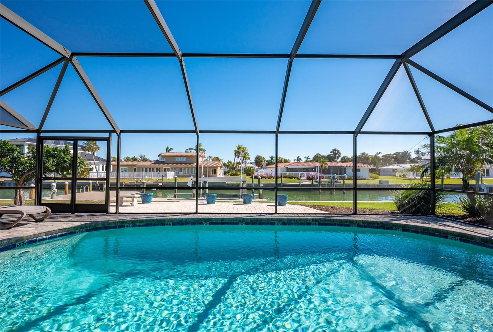 Country Club Shores - Completely renovated 3-bedroom, 2-bath canal-front home just three houses from the Bay. Updates include a new flat tile roof (2025), Carrier A/C and A.O. Smith water heater (2024), Pebble Tec pool and paver deck (2024), and newer seawall, dock, and 16,000 lb. boat lift (2.5 years). Enjoy Bay views from the 18 foot x 16 foot Trex dock with lighting and water, plus a 3 foot x 36 foot Trex dock with power and water. Interior features NuCORE waterproof flooring, plantation shutters, Silestone quartz countertops, and new Bosch and GE stainless appliances. The primary suite includes a walk-in closet with built-ins, dual sinks, whirlpool tub, and large shower. Split floor plan with guest bedrooms featuring walk-in closets; one includes a built-in office area. Move-in ready and ideally located for boaters seeking the best of Longboat Key waterfront living.