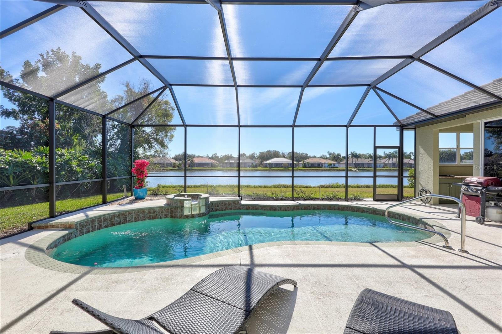 Luxurious lakeside living is awaiting you in this stunning 4 bedroom, 3 bath house in serene Three Oaks. This lovely 2524 square foot residence showcases an open layout, a large kitchen-family room combination with an abundance of natural light. The primary suite, and all living spaces overlook the lake, and open to the screened, outdoor retreat featuring a bonus space outside the primary bedroom, a heated pool, outdoor kitchen and relaxing sunrises and sunsets. Move in ready updates include: Newer tile roof, new luxury vinyl plank flooring, new pool pump and heater, renovated screened retreat with pool & outdoor kitchen, new high-end dishwasher, washing machine & dryer, and new hot water heater, all replaced within the last 4 years. Lifestyle amenities include: world renowned Siesta Key beaches, outstanding restaurants, museums, boutiques & nightlife, top tier public schools, high quality healthcare, and an abundance of activities and hobbies for all ages.