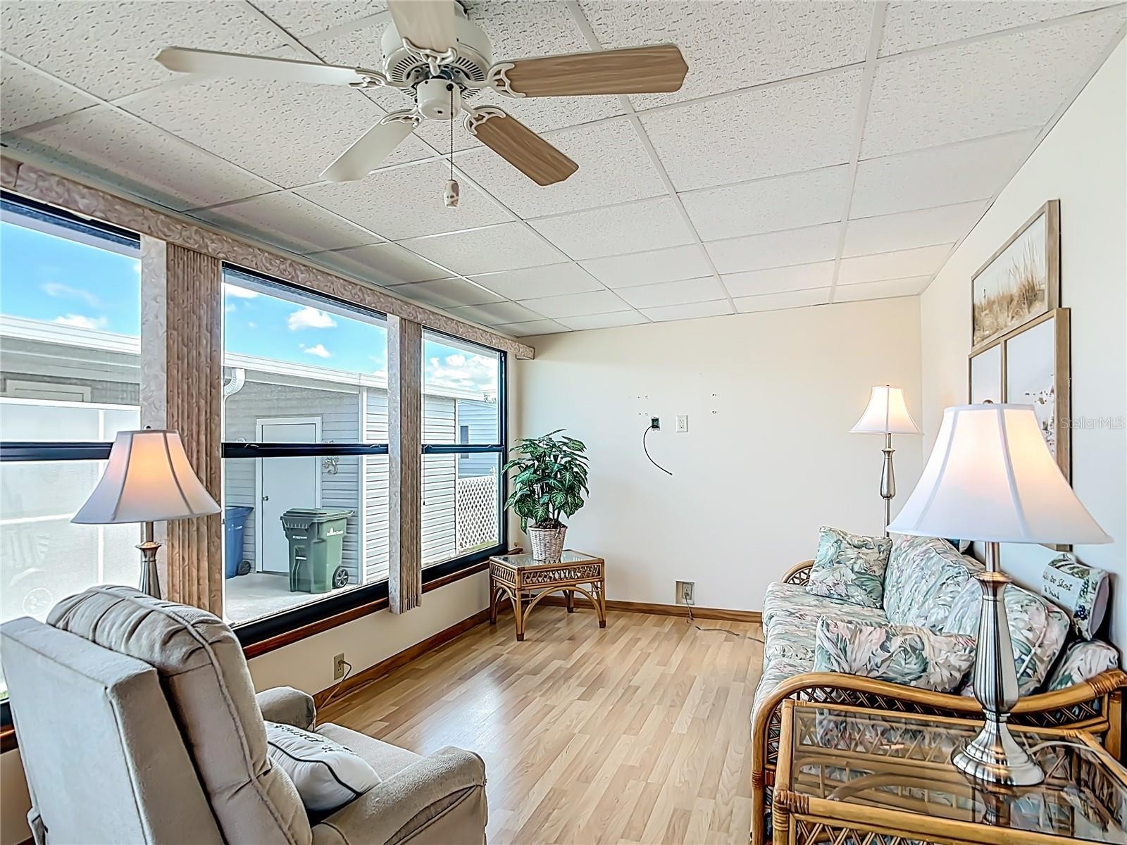 This well-maintained two-bedroom, two-bathroom home on a peaceful and quiet street has been thoughtfully updated and lovingly cared for. As you step inside, the dining area flows easily into the kitchen, where newer soft-close cabinetry, solid surface countertops, a tiled backsplash, roll-out pantry drawers, and a solar tube skylight make the space both bright and functional. The living room opens through sliding doors into a glass-enclosed Florida room — perfect for morning coffee, an afternoon read, or simply enjoying the light without the heat. The primary suite offers a walk-in closet and an updated bathroom with a newer vanity, walk-in shower, and linen storage. Just off the primary bedroom, you’ll find a surprisingly spacious laundry room complete with a stacked washer and dryer, abundant cabinetry, and even a built-in desk space — practical and convenient! The guest bedroom includes a double closet, and the guest bath has been refreshed with a newer vanity and a tub/shower combination. Nearly every room feels bright thanks to multiple solar tube skylights. Additional upgrades include newer double-pane windows, a vapor barrier added in 2023, and a brand-new roof in 2025 so you can have peace of mind in your new Florida home. The paver driveway leads to a screen-enclosed utility room, giving you even more storage space for tools, hobbies, or seasonal items. La Casa is set among native trees and mature landscaping and is a welcoming community of 974 homes surrounded by generous green space and eight peaceful lakes. Located between Sarasota and Fort Myers, you’re close to shopping, dining, golf, fishing, and everything Southwest Florida is known for all while being tucked into a relaxing and quiet environment perfect for enjoying the Florida lifestyle. If you’ve been looking for a place that feels easy from the moment you arrive, this might be it.