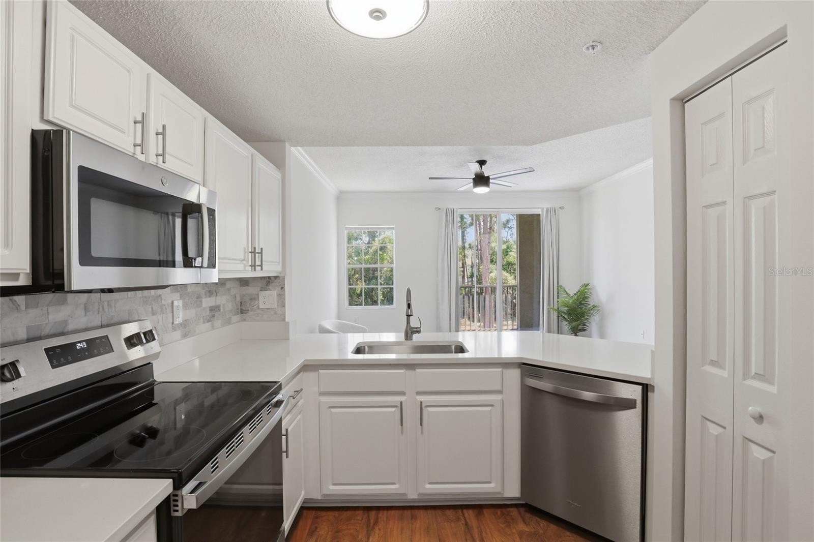 Move-In Ready and beautifully updated condo in the highly sought-after gated community of Las Palmas. This residence is by far one of the most upgraded 1 bedroom units to hit the market in Las Palmas, featuring a clean interior with fresh paint and thoughtful improvements throughout. Recent upgrades include a 2024 HVAC system, 2024 water heater, 2024 roof, new tile in the foyer, new carpet on the stairwell and bedroom, new vinyl flooring/vanity/lighting/toilet in half bathroom, updated kitchen backsplash, new refrigerator/range/microwave, new washer and dryer, updated light fixture and ceiling fan in bedroom, 2025 windows in bedroom, and new toilet in primary bathroom. The kitchen and bathrooms present a timeless, refreshed look, while the open layout provides an easy flow for everyday living. The spacious owner’s suite offers ample closet space and a comfortable retreat. Enjoy a private lanai overlooking a beautiful wooded setting with tranquil water views. Residents of Las Palmas enjoy a full suite of amenities including two heated resort-style pools, hot tubs, clubhouse, fitness center, sauna, tennis court, dog park, playground, boat storage and a car wash station. With direct access to Benderson Park, you can enjoy scenic walking and biking trails just steps away. Ideally located minutes from world-class shopping, dining and entertainment at UTC. This property is well-suited for a full-time residence, seasonal getaway or investment opportunity. Why rent when you can own in one of Sarasota’s most convenient and amenity-rich communities.