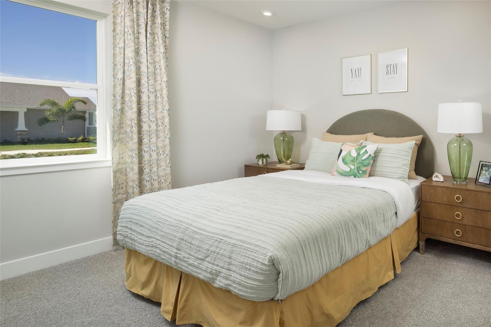 Under Construction. The Pelican is a spacious and versatile 1,787 square foot single-story home that perfectly combines style, function, and modern convenience. Designed with an open concept layout, this home features three bedrooms, two full bathrooms, and a two-car garage. At the heart of the Pelican is a well-appointed L-shaped kitchen that caters to both everyday living and entertaining. A large island with a breakfast bar seats up to four, while a full wall of cabinets and countertops offers abundant storage and workspace—perfect for housing small appliances and preparing meals. A pantry adds even more storage convenience. The kitchen opens seamlessly into the dining area and remains visible from the expansive great room, creating one large, cohesive space for gathering and relaxation. Natural light flows into the home through windows that line the exterior wall along the dining area, and large glass sliders in the great room open to a covered lanai. This layout invites a strong connection to the outdoors and provides an ideal setting for indoor-outdoor living. All bedrooms are located on one side of the home, with the kitchen, great room and dining flowing generously togther on the opposide side of the home. The owner’s suite is a tranquil retreat, complete with a luxurious en suite featuring split vanities, a glass-enclosed shower with a high-set privacy window, a private water closet, and a large walk-in closet. Bedrooms two and three are situated at the front of the home and has easy access to the full hallway bathroom, making it ideal for guests or family. A convenient powder room is located off the foyer, offering an additional level of privacy and function. Throughout the Pelican, three extra closets provide added storage, ensuring that everything has its place. This home is HERS-rated for energy efficiency and includes smart home features for enhanced comfort and convenience. Neutral design package makes for easy decorating. Photos, renderings and plans are for illustrative purposes only and should never be relied upon and may vary from the actual home. Pricing, dimensions and features can change at any time without notice or obligation. The photos are from a furnished model home in a different community of the same floor plan and not the home offered for sale.
