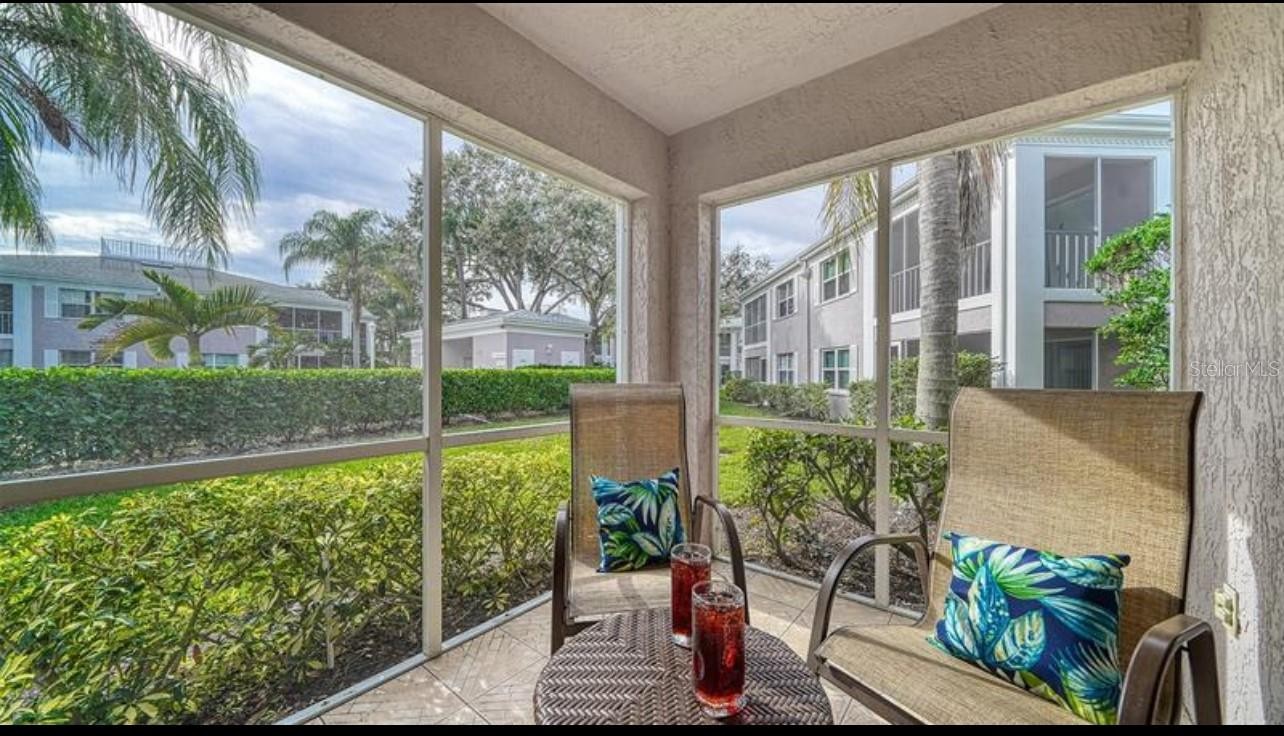 First Floor! One month minimum rental allowed! Great location short distance to Nathan Benderson Park, UTC, major shopping and restaurants. Golf membership is optional. Discover this hidden gem in the highly sought-after Sheffield Greene community in The Meadows—one of Sarasota’s most desirable and lushly landscaped neighborhoods. This beautifully maintained ground-floor 2 bedroom, 2 bathroom residence is the perfect choice for a full-time home or seasonal Florida getaway. Step inside to an inviting, bright, and airy layout enhanced by abundant natural light. Enjoy two private outdoor patio spaces—ideal for morning coffee, evening cocktails, or seamless indoor-outdoor entertaining. Extend your living space effortlessly from the dining or living room straight onto the screened lanai. The spacious kitchen features ample cabinetry, generous counter space, a convenient pass-through, and a cozy dinette area that can easily double as a home office. Sliding doors lead out to the second screened patio, giving you even more flexible living space. The primary suite is filled with natural sunlight and offers private patio access, a walk-in closet, and an ensuite bath featuring dual vanities and a walk-in shower. The split floor plan places the second bedroom and guest bath on the opposite side of the home—perfect for privacy. Additional features include an attached garage, separate outdoor storage, and a 2025 NEW ROOF for peace of mind. Residents of The Meadows enjoy a vibrant lifestyle with optional memberships to The Meadows Country Club, featuring an 18-hole golf course, 18 Har-Tru tennis courts, fitness, dining, and social activities. A reciprocal program provides access to the Club’s pool, restaurants, and events. All of this just minutes from top-tier shopping, dining, I-75, and Sarasota’s world-renowned Gulf beaches.