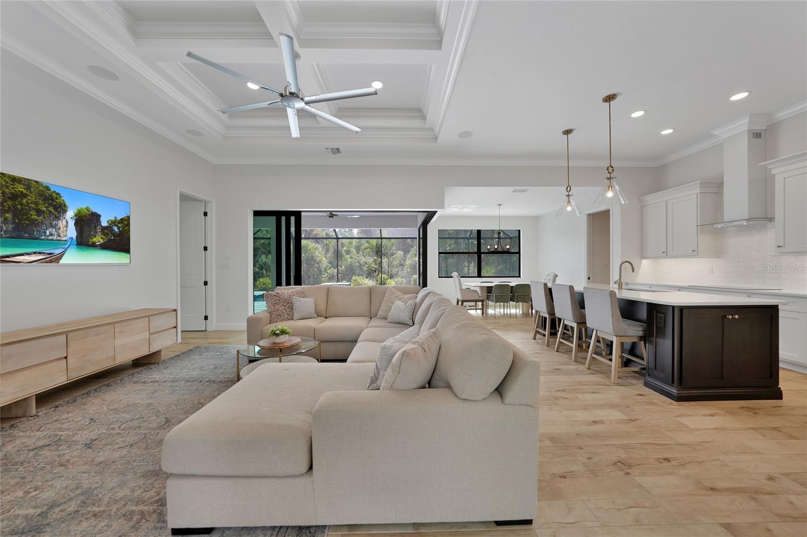 WELCOME HOME to Your PRIVATE POOL HOME PARADISE amid the Palms! Perfectly Poised on an EXTRAORDINARILY RARE 1.61 ACRES!!!!!!! JUST BUILT in 2021 by Quality Homes, this Stunning, Spacious, and Spectacular Beauty brings Modern Elegance and Luxury, Home! Designed for Entertaining with Exceptional Detail, Remarkable Craftsmanship, Brilliantly Upgraded Throughout, and offering a Sprawling 3,184 Total Sq. Ft. / 2,177 Sq. Ft. Under Air, a Superb Split-Bedroom OPEN FLOOR PLAN with 4 Spacious Bedrooms including the Magnificent Owner’s Suite, PLUS, a BONUS ROOM that can be used as a Den, Study, Office, or Possibly a 5th Bedroom, along with a Sunsational 28’ x 11’ HEATED SALTWATER POOL with Built-In SPA under an Immense 46’ x 20’ Screened-In Pool Cage, a Fabulous 27’ x 11’ Covered Lanai Area, ALL IMPACT DOORS AND WINDOWS, an Expanded 3 Car Garage, and a WHOLE HOME REVERSE OSMOSIS SYSTEM!!!!! Once through the Grand Double Door Entryway, you are greeted by the flowing OPEN FLOOR PLAN and into the Breathtaking Open Living Room with TOWERING 12 Ft. COFFERED CEILING, CROWN MOLDING, RECESSED LIGHTING, Built-In SURROUND SOUND, and ZERO-CORNER SLIDING GLASS DOORS providing DIRECT ACCESS to the LANAI and POOL!!!! The Brilliantly Upgraded Kitchen Overlooks the Dining Area, Living Room, Pool and Lanai, and Features TILE PLANK FLOORING, CROWN MOLDING, QUARTZ COUNTERTOPS, GE “Café” Premium Line Appliances including Built-In Convection Oven & Microwave, Smart Refrigerator and Dishwasher, Cooktop, Recessed Lighting, Pendant Lighting, and Island with Built-In Cabinetry / Storage, and Breakfast Bar!!!!! Your MAGINIFICENT OWNER’S SUITE offers TILE PLANK FLOORING, 10 Ft. TRAY CEILING with CROWN MOLDING, 2 WALK-IN CLOSETS, PRIVATE DIRECT ACCESS to the POOL and LANAI via SLIDING GLASS DOORS, and an Elegant En-Suite Bathroom with Gorgeous Tiled Shower, Multiple Shower Heads Including Rain Shower Head, Recessed Lighting, DUAL SPLIT SINKS & VANITIES with Track Lighting, Quartz Countertops, and Linen Closet!!!! 3 OVERSIZED Guest Bedrooms, all with TILE PLANK FLOORING and Ceiling Fans, and one with its Very Own EN-SUITE ½ BATHROOM that Provides DIRECT ACCESS to the LANAI and POOL, and serves as a Convenient Pool Bathroom for Guests, PLUS the Sunkissed BONUS ROOM which can be used as a Den, Office, Study, or possibly a 5th BEDROOM, and features 12 Ft. TRAY CELING with CROWN MOLDING, and Closet!!! Located within the Highly Rated Sarasota County School District in the Heart of the Dynamic and ever Growing Community of North Port, Florida. Convenient to nearby I-75, Shopping, Restaurants, Multiple Nature Preserves and Parks, Suncoast Technical College – North Port, Sports Fields, Multiple Community Centers, and Parks, the North Port Aquatic Center, Numerous MLB Spring Training Complexes, World Class Fishing, Boating, Golfing, and the World Renowned Gulf Beaches of Southwest Florida! CALL TODAY to schedule a showing and make this Extraordinary Pool Home Paradise Amid the Palms Yours!!!