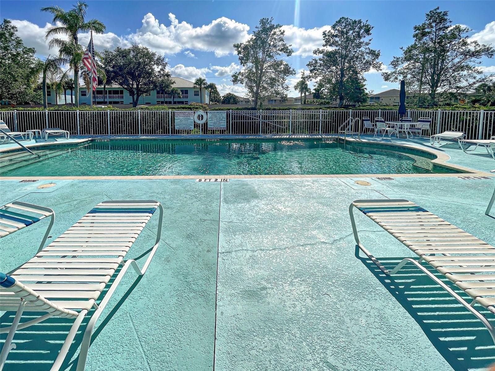 CLAIM YOUR PIECE OF PARADISE AND CELEBRATE LIVING in this perfect-in-every-way, maintenance-free 1153 SF 2-bedroom, 2-bath ground floor condo in an attractive, well-kept, friendly and caring 55+ community. The open concept floor plan provides a light, bright sundrenched home, with warmth, style and character throughout. Rear lanai, with new screens, vinyl sliders and Collaroo 50 exterior shades assures year-round comfort, and faces west to enjoy our beautiful Florida sunsets over a serene view of Dallas Park. Dallas Park provides public access to tennis and volleyball courts, picnic areas, playground and kayak/canoe launch for endless outdoor activities practically at your doorstep. The front window faces east, so you can enjoy your breakfast sunny side. Gorgeous Marazzi glazed tile throughout, with new luxury vinyl in primary bedroom (no carpet!). PGT 500 series hurricane impact windows, Bali custom double cell corded blinds and ceiling fans in living area, master suite and guest bedroom/office/den. Fabulous kitchen/breakfast nook area! Custom Quartz countertops and sink! Two (2!) large pantries/storage closets! Reverse osmosis system for drinking water! Large breakfast bar overlooks the living/dining combination providing the ideal space for entertaining guests or enjoying intimate family dinners with friends and family. The sumptuous primary suite features a sliding door that opens out to the private lanai, with a huge walk-in closet and separate linen closet as well. The ensuite bath has an expansive countertop and large step-in shower with grab bar. The guest quarters/office/den deliver privacy when guests visit, featuring a pocket door to the private suite accommodations. The guest bath has new Koehler hi-rise commode as well as grab bars. The laundry area is enclosed with doors and affords additional storage. Beautiful in-ground heated community pool (updated 2023) and outdoor barbecue grill, perfect for gathering with friends and neighbors. NEW ROOF AND CARPORT - 2023. BUILDING REPAINTED - 2024. AC has been regularly maintained, with a new dual purpose capacitor with a 5-year warranty in 2025. NO CDD. LOW HOA FEES! CITY WATER & SEWER (included in HOA fee, as well as maintenance of building exterior and grounds). Pride of ownership shows ... ALL UNITS RESIDENT-OWNED - NO RENTERS! The City of North Port offers endless opportunities for recreation and entertainment, such as world-famous Warm Mineral Springs, nearby golf courses, some of the world's most beautiful beaches, and world-class fishing and boating just a short drive away. The North Port Aquatic Park is close by. The CoCoPlum Village Shoppes provide a variety of restaurants and retails shops that are sure to meet your needs. LOVELIEST AND BEST CARED FOR CONDO AVAILABLE IN THIS PRICE RANGE. THE PERFECT BLEND OF COMFORTABLE LIVING, CHOICE LOCATION AND AFFORDABLE PRICE! CALL NOW; IT'S TOO NICE TO LAST!