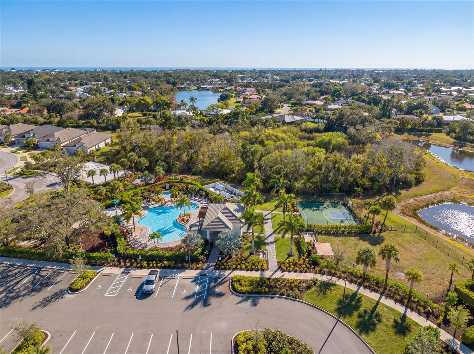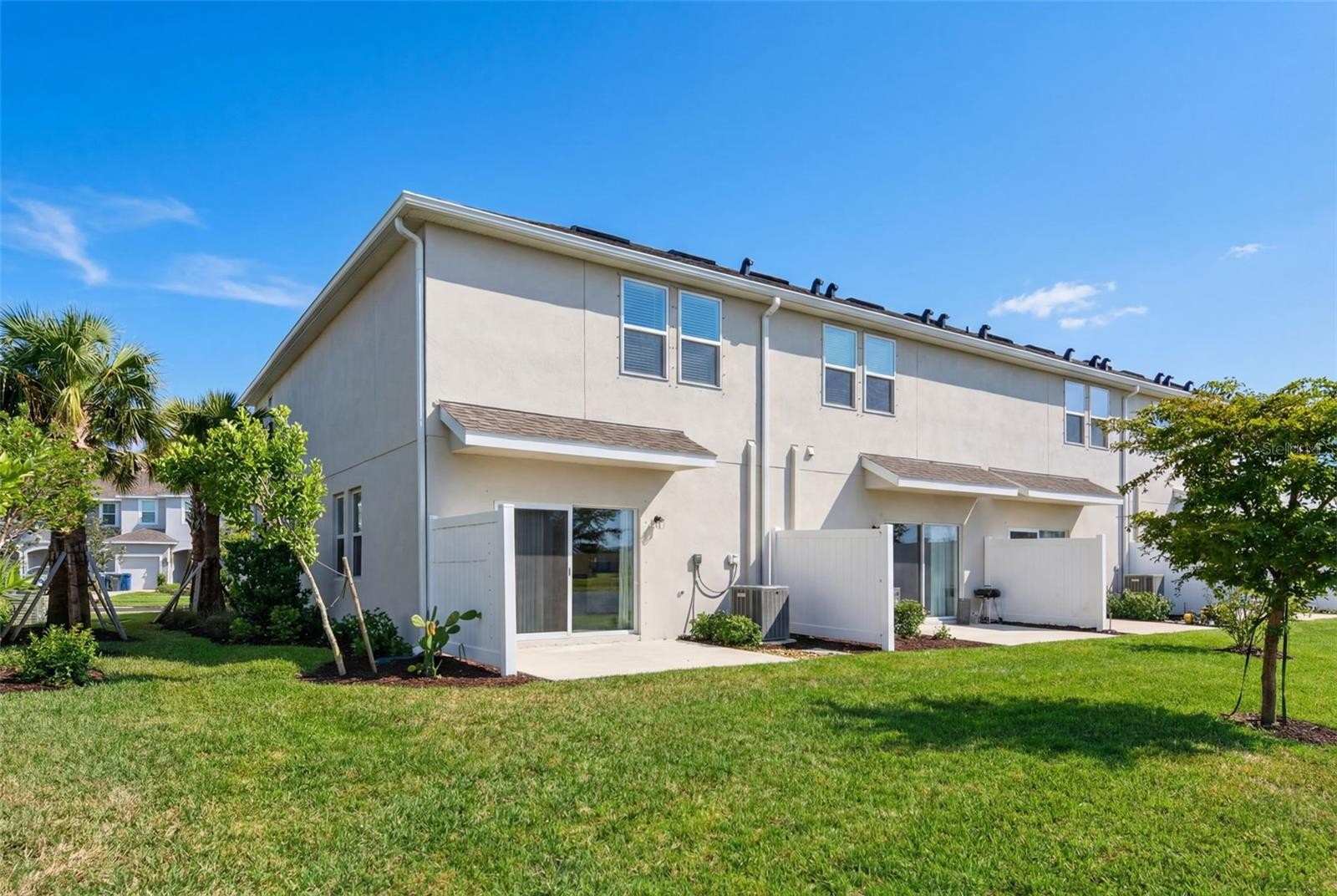 One or more photo(s) has been virtually staged. Rare water-view end unit in the gated Palmero community, where modern design meets low-maintenance Florida living, with NO CDD fees. This highly desirable corner residence offers enhanced privacy, abundant natural light, and tranquil waterfront views enjoyed from your private patio with screened door. The open concept floor plan is ideal for both everyday living and entertaining, featuring a stunning quartz island kitchen, brand-new stainless steel appliances, and a spacious walk-in pantry. The home is fully equipped with thoughtful upgrades throughout, including whole-house blinds and curtains, premium bathroom fixtures with antibacterial light technology, a screened patio door, and an insulated garage with epoxy flooring. A brand-new Lennox energy-efficient A/C system adds long-term comfort and savings.The spacious primary suite includes a large walk-in closet and a private ensuite bath. This home is located outside of the flood zone and benefits from very low annual insurance costs, along with a low HOA that covers exterior maintenance and landscaping, offering true hassle-free living. Palmero is a gated, resort-style community featuring a pool, jacuzzi, volleyball and basketball courts, playground, and dog park. Conveniently located just minutes from beaches, shopping, dining, boat docks, and major commuter routes — perfectly positioned between Sarasota, Laurel, Palmer Ranch, and Venice.Boater’s dream location with close proximity to local marinas, Nokomis Beach, and Casey Key from door to dock in minutes.This property also qualifies for a LENDING INCENTIVE with a preferred lender. Schedule your private showing today and experience the perfect blend of privacy, convenience, and resort-style Florida living.