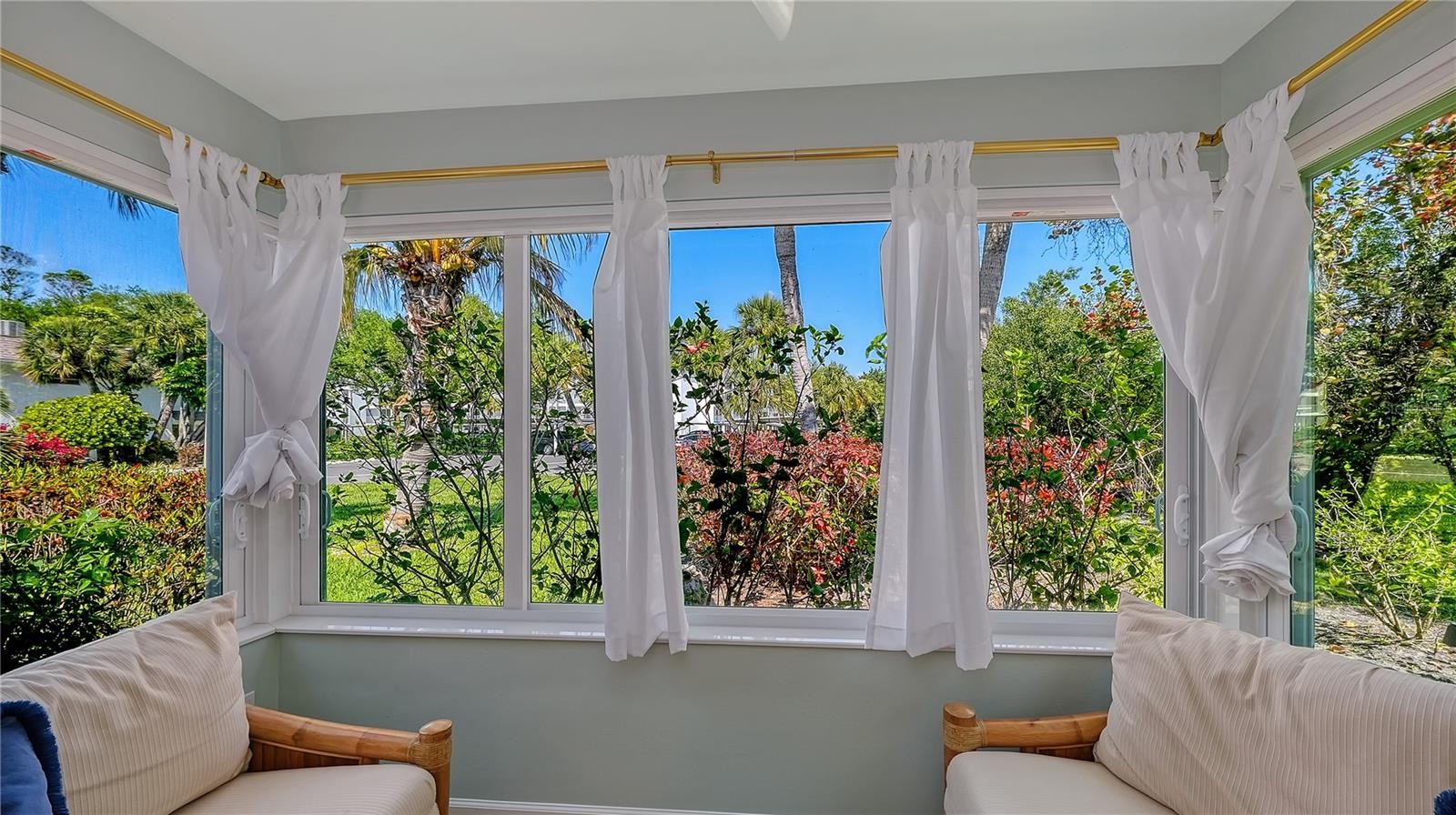 Best Beach Villa Value on Longboat Key! - Experience effortless coastal living in this lovely 2-bedroom, 2-bath end-unit bayside villa offering the highly sought-after Bay-to-Beach lifestyle on Longboat Key. Beautifully appointed and sold turnkey, this ground-floor residence is truly Martha Stewart–perfect—move-in ready and designed for relaxed elegance. The villa welcomes you with an enclosed den/Florida room, a serene retreat where you can unwind while enjoying tranquil views of lush greenery and native birdlife. Hurricane impact windows and doors throughout ensure peace of mind while maintaining a quiet, comfortable interior. The open-concept living space is ideal for both everyday living and entertaining. A spacious family room and dining area flow seamlessly from the renovated kitchen, which features rich maple cabinetry, solid granite countertops, and an inviting, functional layout. Every detail has been thoughtfully curated, from custom cornices and blinds to coordinated bedding and decorative pillows—straight out of Serena & Lily. Additional highlights include a separate laundry room with pantry storage, complete with a garden door that opens to peaceful landscaping and provides direct access to the private marina, kayak storage, and an electric kayak launch—perfect for embracing the boating lifestyle right outside your door. This pet-friendly villa offers unmatched convenience and value with a private carport, extra guest parking just steps away, a new washer and dryer, a recently upgraded air-conditioning system and tankless water heater. Just across Gulf of Mexico Drive, enjoy exclusive access to your private beach facility, featuring gated parking, restrooms, showers, and chair storage—true resort-style living. Spend your days boating, kayaking, or soaking up the sun, then end each evening watching breathtaking sunsets over the sugar-sand beaches of the Gulf. This exceptional Longboat Key villa is move-in perfect and ready to enjoy—just bring your flip-flops. Opportunities like this are rare, and this one will not last long.