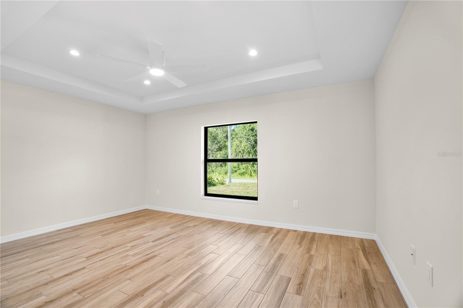 BRAND NEW -COMPLETED AND MOVE IN READY HOME. You'll fall in love with this beautifully crafted CUSTOM MODERN 3 bedroom, 2 full bathrooms home where nothing was overlooked in designing and finishing this home. The home features a bright open floor plan with Vaulted Ceilings that soar to over 10 feet high in the main living area. It's perfect for entertaining. PORCELAIN TILE THROUGHOUT the entire house provides a soothing flow that every homeowner desires. The gourmet chef’s kitchen is a dream that has custom two tone 42" SOLID WOOD SHAKER CABINETRY, QUARTZ countertops with an oversized island, UPGRADED PREMIUM STAINLESS STEEL APPLIANCES, and a walk-in pantry. The large Master bedroom includes a tray ceiling, ample natural light, led lights and designer ceiling fan. The Breathtaking en-suite master bath greets you with large format tile in the walk-in shower, Quartz counters with dual sinks are highlighted with designer mirrors and lighting. This Energy efficient home has HEAVY DUTY HURRICANE IMPACT WINDOWS AND SLIDER, UPGRADED 4" LED RECESSED LIGHTING with MODERN DESIGNER LED lighting fixtures and ceiling fans through out. Featuring European style pavers in the driveway and in the oversized covered patio lanai. Irrigation system is included in both front and back lawns. Builder provides the homeowner a peace of mind with a 1 year builder warranty. Prime location in growing city of North Port, close to shopping and dining, and only a short drive to the beaches! NO HOA, NO CDD! Schedule your showing today, this one is a MUST SEE!