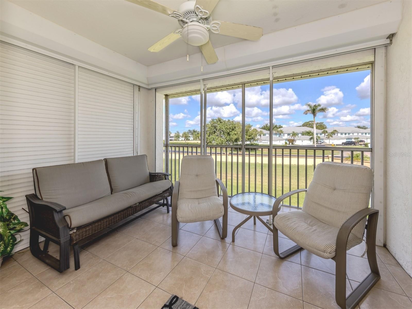 Rarely Available Turn-Key Furnished 3-Bedroom Condo in Gated Linkside at Sabal Trace, an exclusive gated community within Sabal Trace. This 3-bedroom, 2-bath condo offers a bright, open layout that invites easy living and relaxed Florida charm. The large eat-in kitchen provides plenty of space for everyday meals, while the formal living and dining room combination creates an ideal setting for hosting family and friends. An enclosed back lanai offers a peaceful place to unwind, complete with power hurricane shutters for added security and comfort. The spacious primary suite features an ensuite bath with dual sinks, a walk-in shower, and two closets—including a generous walk-in. The guest bedroom comfortably accommodates twin or king-sized beds, and the third bedroom is currently arranged as an office or den. A separate laundry room with a full-size washer and dryer provides additional storage, complemented by multiple indoor and outdoor storage closets perfect for beach gear, bikes, and more. Additional conveniences include an assigned carport parking space directly in front of the unit, with extra parking available for guests. Residents also enjoy access to the community pool and cabana, offering an ideal spot to relax and soak up the Florida sunshine. This prime location places you close to restaurants, shopping, medical facilities, a fire station, the Atlanta Braves Spring Training facility, parks, Warm Mineral Springs, golf courses, and stunning Gulf beaches. Ideal for seasonal or year-round living.