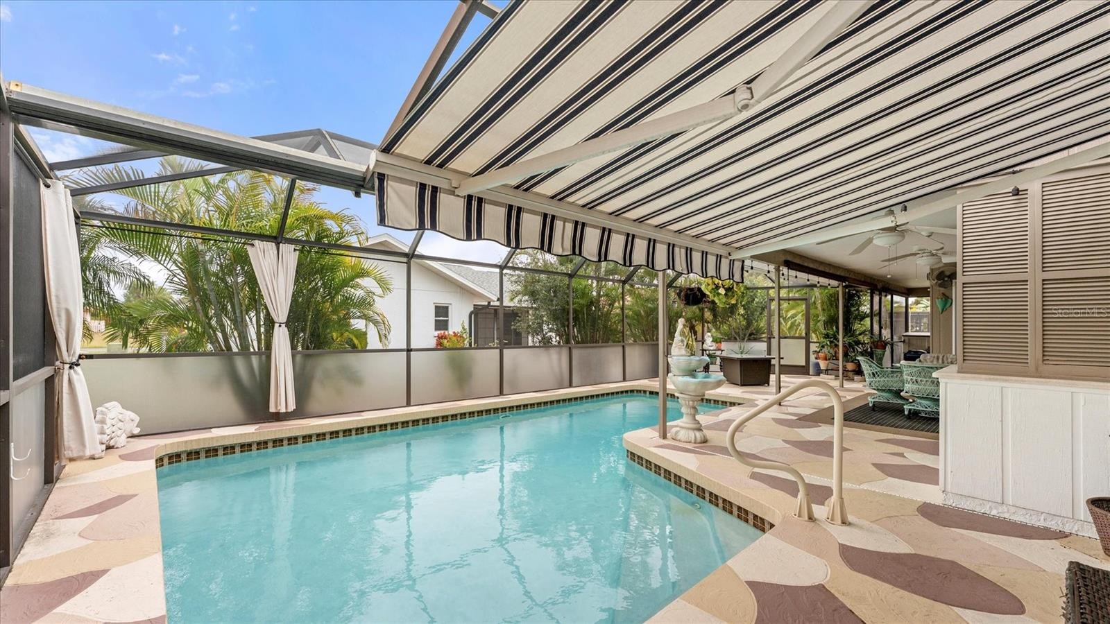 Life is spectacular at Gulf View Estates, where residents enjoy being less than three miles from Manasota Key Beach and the public boat ramp. This thoughtfully updated pool home offers two bedrooms and two bathrooms and is located in the X flood zone, providing added peace of mind. Mature landscaping and a welcoming walkway lead to the screened entry, where double glass doors open into a light and inviting interior. Vaulted ceilings, a skylight, and a chandelier immediately create a warm sense of arrival. The open floor plan connects the great room, formal dining area, and kitchen, making the home ideal for both everyday living and entertaining. A brick fireplace adds character to the great room, while a triple set of French doors fills the space with natural light and opens to the outdoor living area. The galley-style kitchen is both functional and inviting, featuring wood cabinetry, granite countertops, a glass tile backsplash, and a tray ceiling with crown molding. A cozy breakfast nook includes two sets of sliding doors, offering easy access to the pool and lanai. The formal dining area is accented by a bay window and chandelier, creating an elegant setting for meals and special gatherings. The ensuite primary bedroom features vaulted ceilings and French doors that bring in abundant natural light. A walk-in closet provides generous storage, and the ensuite bathroom is designed for comfort with a spacious walk-in shower that includes dual skylights, multiple showerheads, built-in niches, and a convenient fold-down seat. On the opposite side of the home, the guest suite offers privacy and includes sliding doors that open directly to the pool area. The nearby guest bathroom features a uniquely designed fully tiled shower with sliding doors that also provide access to the lanai. Built-in cabinetry and a laundry sink in the separate laundry room add valuable storage and functionality. Outdoor living is truly exceptional. The partially covered and screened lanai features custom concrete flooring, ceiling fans, and an outdoor kitchen complete with a wet bar and Jenn-Air grill. An outdoor shower, a thoughtfully designed corner heated pool, privacy screening along the lower portion of the cage, an open area with a roll-out awning, and mature landscaping surrounding the enclosure create a private and relaxing retreat. Additional highlights include a 2021 roof, a 2020 air conditioning system, and an upgraded electrical panel. Located in the well-established Gulf View Estates community, this home offers close proximity to Venice, where beaches, boating, fishing, dining, and year-round events define the Florida lifestyle. With no CDD fees and a low annual HOA fee to keep the community beautiful, this pet friendly residence offers both comfort and convenience. Everything comes together beautifully at 5859 Monroe Road, a place designed for relaxed living, easy entertaining, and enjoying the very best of coastal Florida.