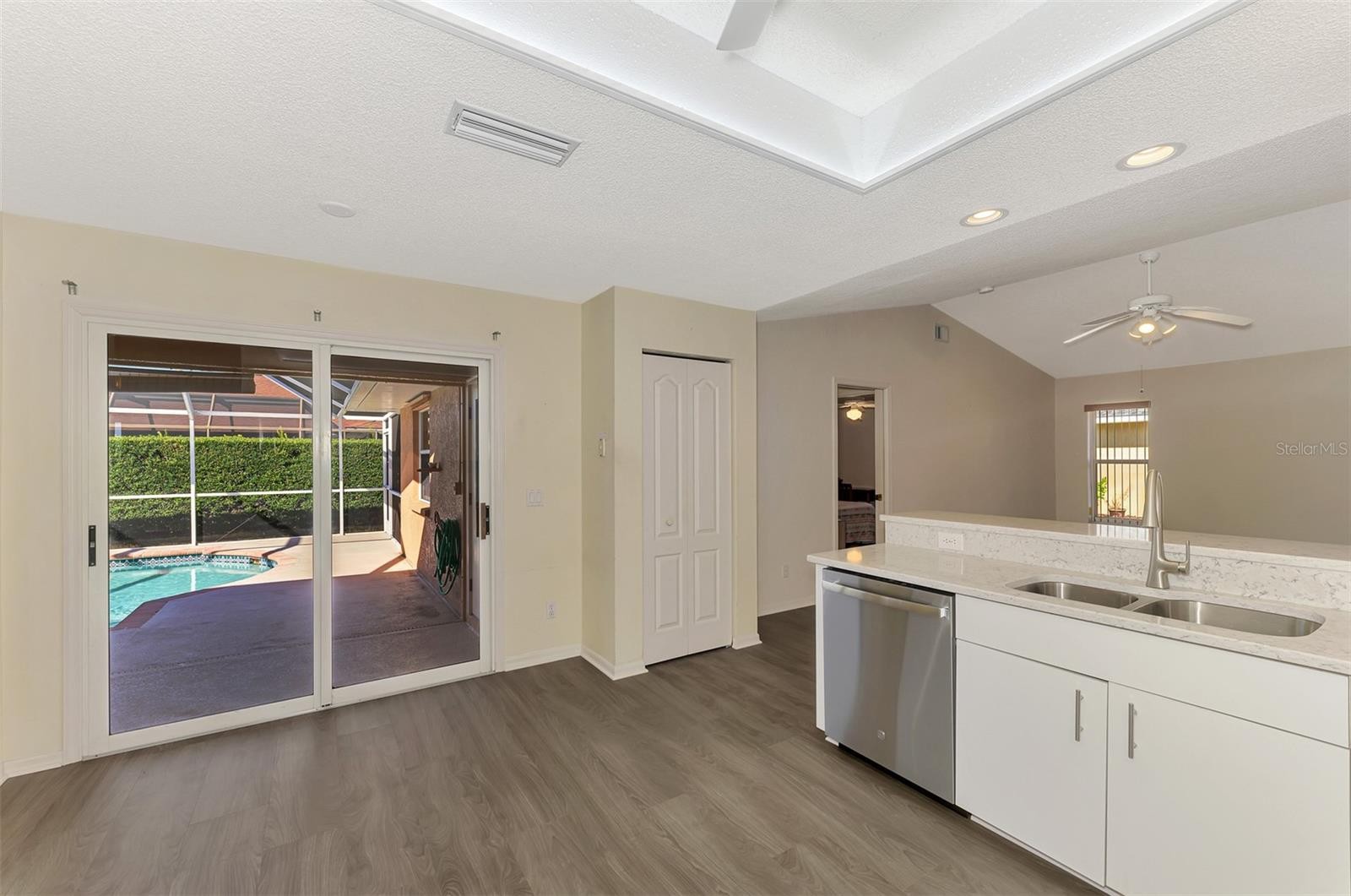 Some homes feel like a Florida experiment. This one feels like a Florida decision.Discover your slice of paradise in Gulf View Estates, one of Venice’s most sought-after “Hidden Gem” communities. This spacious, thoughtfully updated home offers the comfort, privacy, and practicality that discerning seasonal and full-time buyers seek. Refined without being flashy and designed for real living, it offers lasting value beyond first impressions.The private solar-heated pool and expansive screened lanai create a quiet, resort-style setting for year-round enjoyment, framed by mature hedging for exceptional privacy. Ideal for morning coffee, winter afternoons, and evening entertaining, the outdoor living space is efficient, low-maintenance, and easy to enjoy.Inside, vaulted ceilings enhance the sense of volume and natural light throughout the formal living room, dining room, kitchen, and family room. Luxury vinyl plank flooring offers a clean, modern aesthetic while providing durability and ease of maintenance, making it especially appealing for part-time or seasonal ownership.The updated kitchen features quartz countertops, a designer backsplash, recessed lighting, a ceiling fan, and a full suite of brand-new stainless steel appliances, including a refrigerator, range, microwave, and dishwasher, creating a functional and attractive hub for daily living and entertaining.A true split-bedroom floor plan ensures privacy for owners and guests, with three generously sized bedrooms, all offering walk-in closets, including dual walk-ins in the primary suite, a rare and highly desirable feature.This home has been carefully maintained and improved with a roof replaced in 2015, a solar pool system added in 2015, an exterior repaint in 2018, a water heater replaced in 2019, the pool was resurfaced in 2022 with rotating in-floor cleaning heads for efficient circulation and heating, hurricane shutters throughout, in-ground irrigation, and public water and sewer service.All this is located in Gulf View Estates, a friendly, deed-restricted community with LOW HOA fees of just $350/year and NO CDD fees, offering long-term stability and exceptional value.You’re only 5 minutes from Manasota Key Beach and moments from Venice’s shopping, dining, golf, and entertainment, including CoolToday Park, home of the Atlanta Braves Spring Training, providing the perfect balance of relaxation and activity.This is Florida living done right, established, efficient, comfortable, and move-in ready, offering buyers confidence, quality, and immediate enjoyment from day one.Live the Florida lifestyle you’ve been dreaming of—schedule your private showing today!