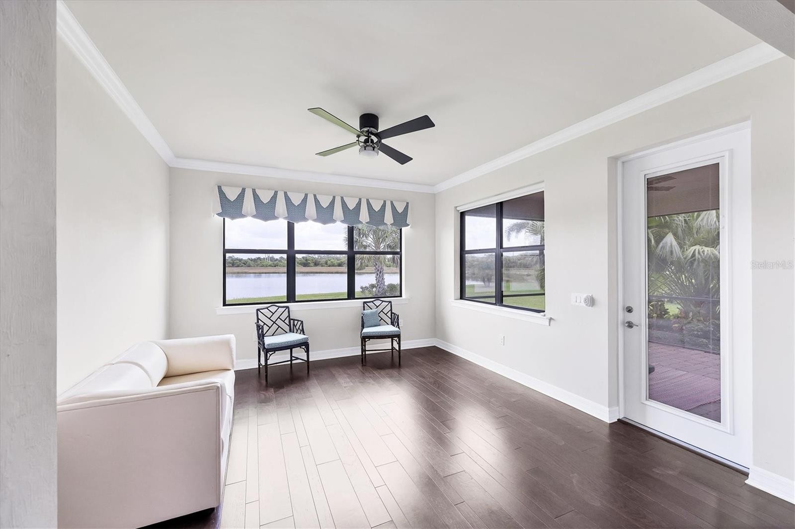 GREAT BUY ALERT!! 3 CAR GARAGE, FRESHLY PAINTED EXTERIOR, No Stairs to walk up, Lots of Upgrades and situated on a PRIME WATERFRONT LOT. Seller will pay for buyers HOA fees for a year. Welcome home to 5923 Snowy Egret Dr, located in the highly sought-after gated community of Sandhill Preserve on Palmer Ranch. This stunning maintenance-free home sits on one of the premier lakefront lots in the neighborhood, offering expansive water views and desirable Northeast exposure. With nearly 2,800 sq. ft. of well-designed living space, this split floor plan offers both privacy and functionality. Inside, you’ll find an abundance of upgrades including elegant crown molding, neutral tile, and hardwood flooring throughout. The chef’s kitchen is a showstopper, featuring custom shaker cabinetry, granite countertops, stainless steel appliances, and ample storage space. The spacious great room and dining area flow seamlessly for easy entertaining, while the screened and pavered lanai provides a peaceful retreat to enjoy the serene lake views. The three-car garage comes finished with durable epoxy flooring, perfect for additional storage or hobbies. Sandhill Preserve is known for its exceptional resort-style amenities. Residents enjoy a beautiful clubhouse, state-of-the-art fitness center, resort-style pool, tennis and pickleball courts, fire pit lounge, and a lively calendar of social events. The community is also guard-gated for added peace of mind and safety. This home is ideally situated just minutes from a brand-new Publix and Costco, the world-famous beaches of Siesta Key, and vibrant downtown Sarasota, this home truly offers the best of Florida living. The remaining furnishings in the home are included if the buyer wants them.