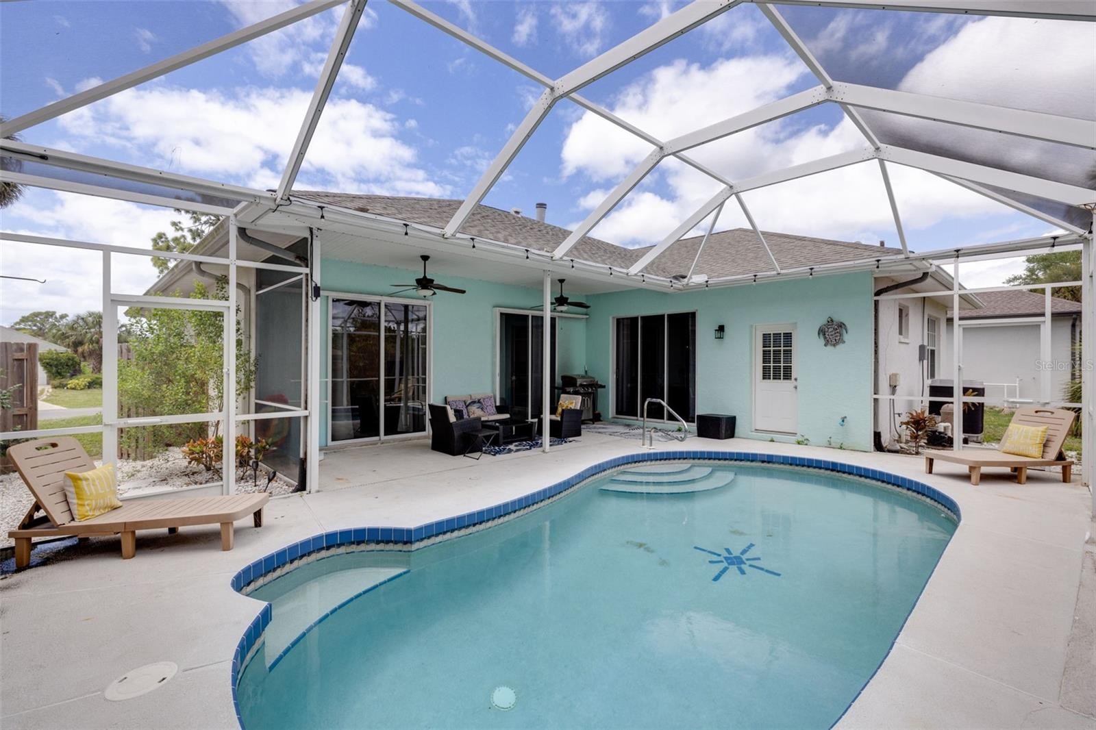 Welcome to your private slice of paradise in South Venice! This 3-bedroom, 2-bath home offers 1,654 sq ft of bright, open living with soaring 10’ ceilings and abundant natural light. Three sets of sliding glass doors lead to a screened-in pool, creating the perfect indoor-outdoor flow for relaxing or entertaining. Enjoy peaceful breezes from the nearby waterway and stunning west-facing sunsets right from your living space. The open layout features tile flooring throughout and a cozy wood-burning fireplace for added charm. The kitchen is beautifully updated with cabinetry, granite countertops, and newer stainless steel appliances. The spacious primary suite includes dual walk-in closets and direct access to the pool. Recent upgrades include a 2024 AC, plus city water and sewer for added convenience. Located just 3 miles from Manasota Key Beach, you’re also minutes from Venice Island, Dearborn Street, and Wellen Park with its Braves stadium and entertainment. Optional South Venice Civic Association membership provides access to a private ferry, beach, and boat ramp—making coastal living even better. Don’t miss this opportunity to own a pool home near the beach with the perfect mix of comfort, location, and lifestyle!