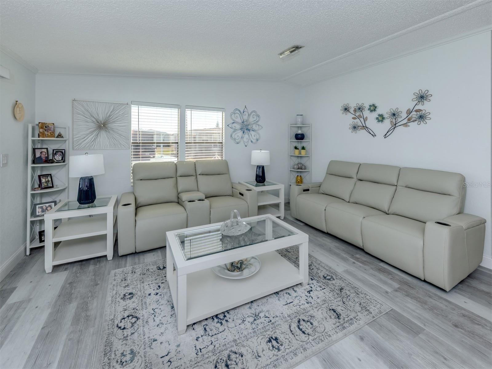 This extremely spacious and immaculate manufactured home is perfectly positioned on a peaceful preserve lot in the highly desired, pet friendly, land owned community of Harbor Isles. The show-stopping kitchen is sure to impress, featuring gorgeous epoxy countertops, stainless steel appliances, and a beautiful tile backsplash, all open to an inviting, light-filled living area. Vaulted ceilings, luxury vinyl flooring throughout, and abundant natural light create an airy, welcoming feel in every room. Just beyond the living room is a completely remodeled Florida room with sliding acrylic windows, tile floors, and a mini split AC, making it a comfortable space to enjoy year-round. Both oversized bedrooms offer generous walk-in closets, while a versatile bonus room at the entryway provides the perfect spot for a home office, hobby room, or laundry area. Outdoor living is just as appealing with a lovely screened lanai on the side of the home and an extra-large storage shed for all your needs. A shingle roof completed in 2023 adds peace of mind, making this home truly move-in ready for its next owner. Harbor Isles is a vibrant 55+ community nestled along the Myakka River, known for its resort-style amenities and active lifestyle. Residents enjoy a marina, clubhouse, pool, pickleball and tennis courts, and a full calendar of social activities, all within a beautifully maintained, land-owned setting. This is Florida living at its best, combining comfort, community, and a serene natural backdrop.