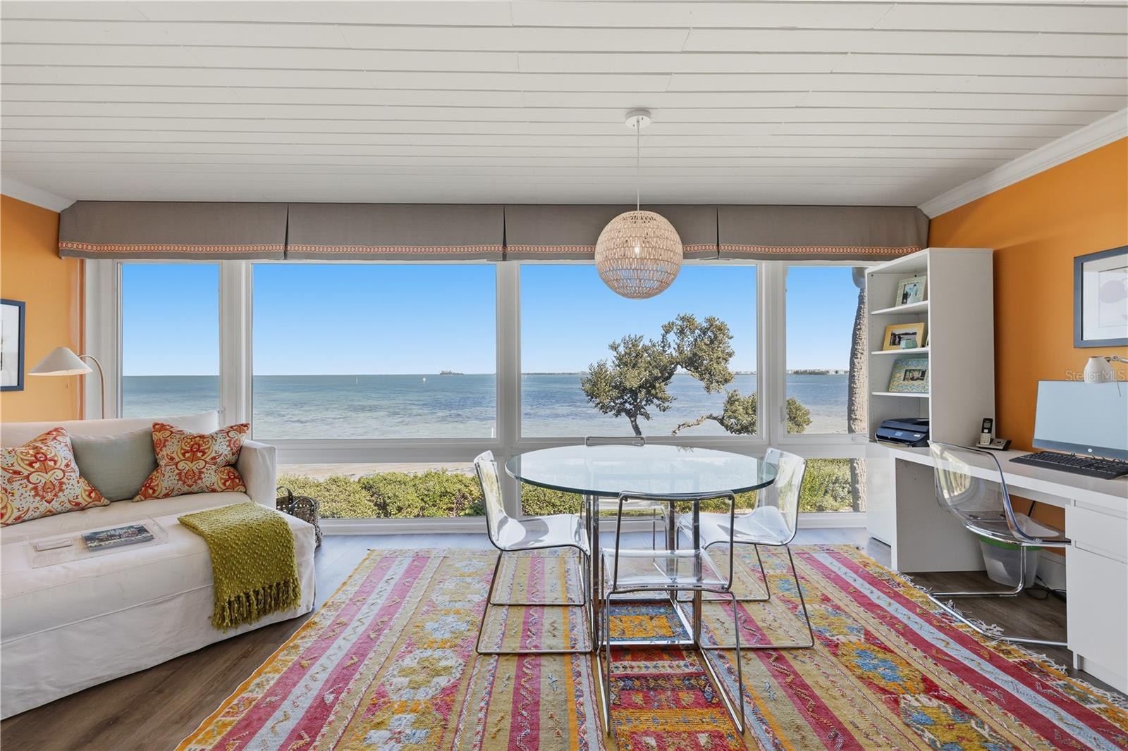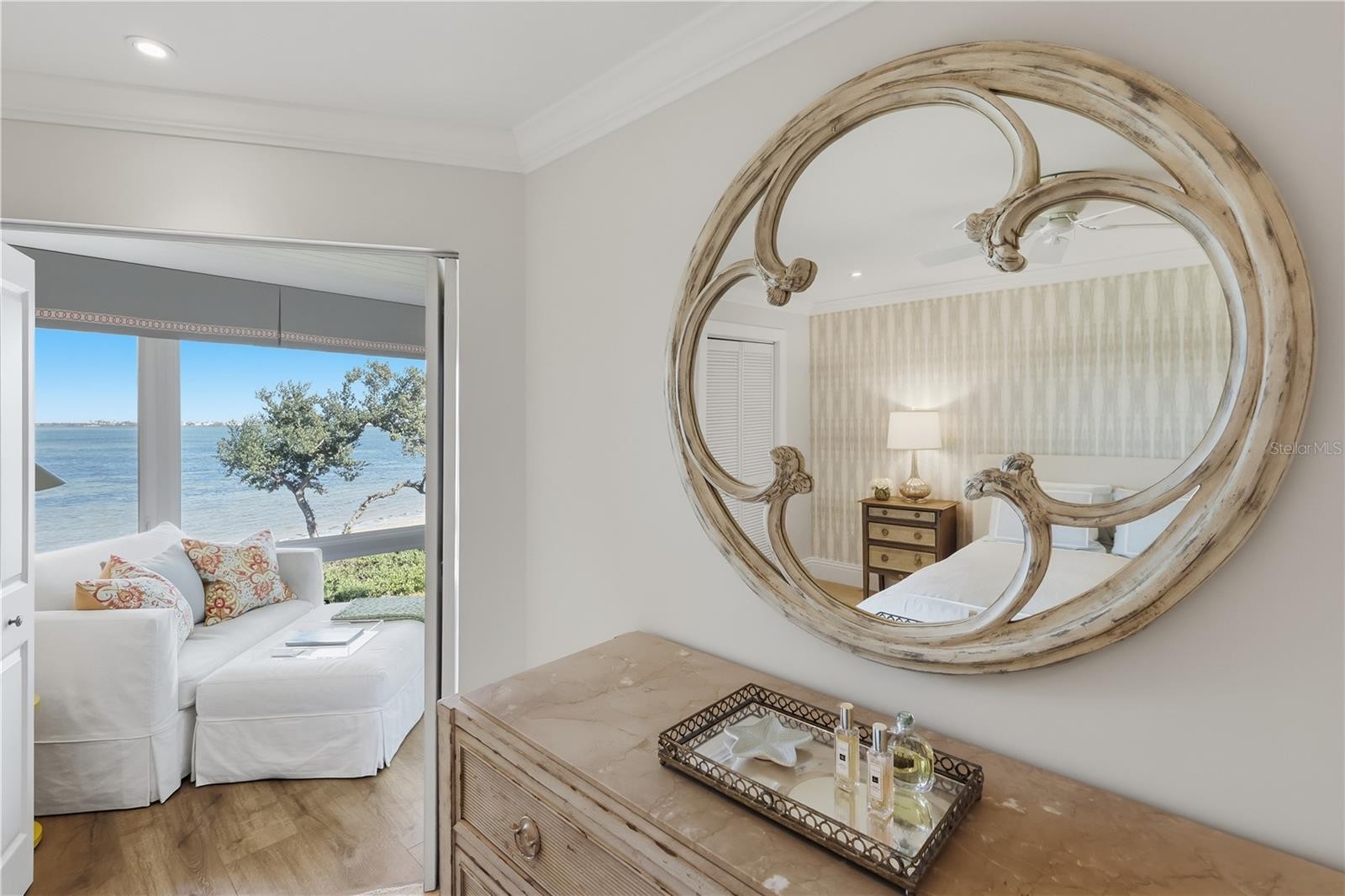Perched on the second floor with front row views of the Anna Maria Sound & Intracoastal Waterway, this beautiful, turnkey 2BD/2BA condo blends coastal elegance with effortless comfort. Inside, soft neutral tones and high-end finishes create a serene backdrop to daily life, while an open layout draws your eye straight to the water through expansive windows. The renovated kitchen features gleaming quartz counters, stainless appliances, and custom cabinetry that flows seamlessly into the main living space. Both bedrooms offer the privacy of ensuite bathrooms and generous closet space, making this layout ideal for guests or full time living. A screened front porch invites morning coffee or an evening wind-down amid gentle Gulf breezes. Residents enjoy access to amenities including multiple pools and tennis courts, all set within lushly landscaped grounds. Additional interior highlights include luxury vinyl flooring throughout the main living areas, crown molding, stylish coastal light fixtures, upgraded window treatments, and tastefully remodeled bathrooms with modern tile work and contemporary vanities. Impact windows, new roof, new main electrical panels and so much more including all assessments are paid.Every inch of this unit has been thoughtfully designed to reflect comfort, function, and relaxed waterfront style and steps to shopping, dining, beaches with easy access on and off the island. Don't let this perfect slice of island life getaway and make it yours today!