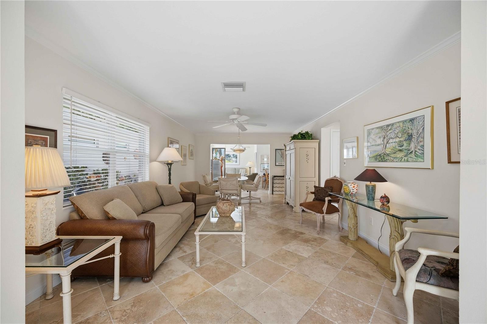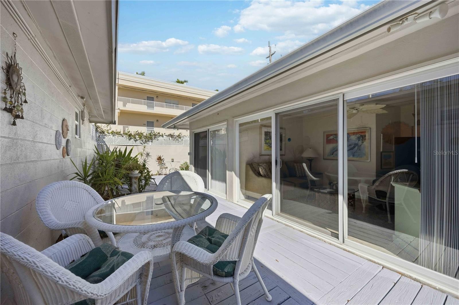 Perfect Snowbird Getaway! Mid Siesta Key, highly sought after, free-standing villa with it’s own private courtyard front, side and rear. Maintenance Free condo lifestyle that feels like a single family home. Situated in Provincial Gardens on a lushly landscaped and tree canopied street of only 26 units offering old Florida charm. This updated, Turnkey Furnished 2 bedroom + Den, 2 bath offers 1400sf. Spacious owner’s suite features a private patio; wall of closets; and ensuite bath. The updated kitchen offers abundance of cabinets and counterspace & newer appliances. The open floor plan offers tile floors throughout; abundance of sliding glass doors opening to your surrounding private courtyard; Florida room; updated baths; Full Size washer/dryer utility closet; new hot water heater 2023; New roof 2023; & Storage Shed 10x6. The crown jewel of this community is the enormous Bay front park with spacious paver patio where owners and their guests enjoy exquisite sunrises and picturesque sunsets while watching the dolphins, manatees, birds and boaters play in the intracoastal waterway. In addition, there is a new seawall, day dock with canoe/kayak launch, and plenty of room to try your luck at fishing. In addition, owners enjoy deeded beach access; beach chair usage; and jr. Olympic heated pool across the street at the Aloha Kai Community. It is also comforting to note that this community sustained no water damage from any recent hurricanes. This Beach to Bay Retreat is ready as a rental or personal winter getaway for you, your family and friends. This mid-key location is an easy Breeze Bus or Froggy Hop ride to Siesta Key Village; Tennis Courts; Public Beach; Grocery; and abundance of restaurants. Don't delay; these units are rarely available and sell fast.