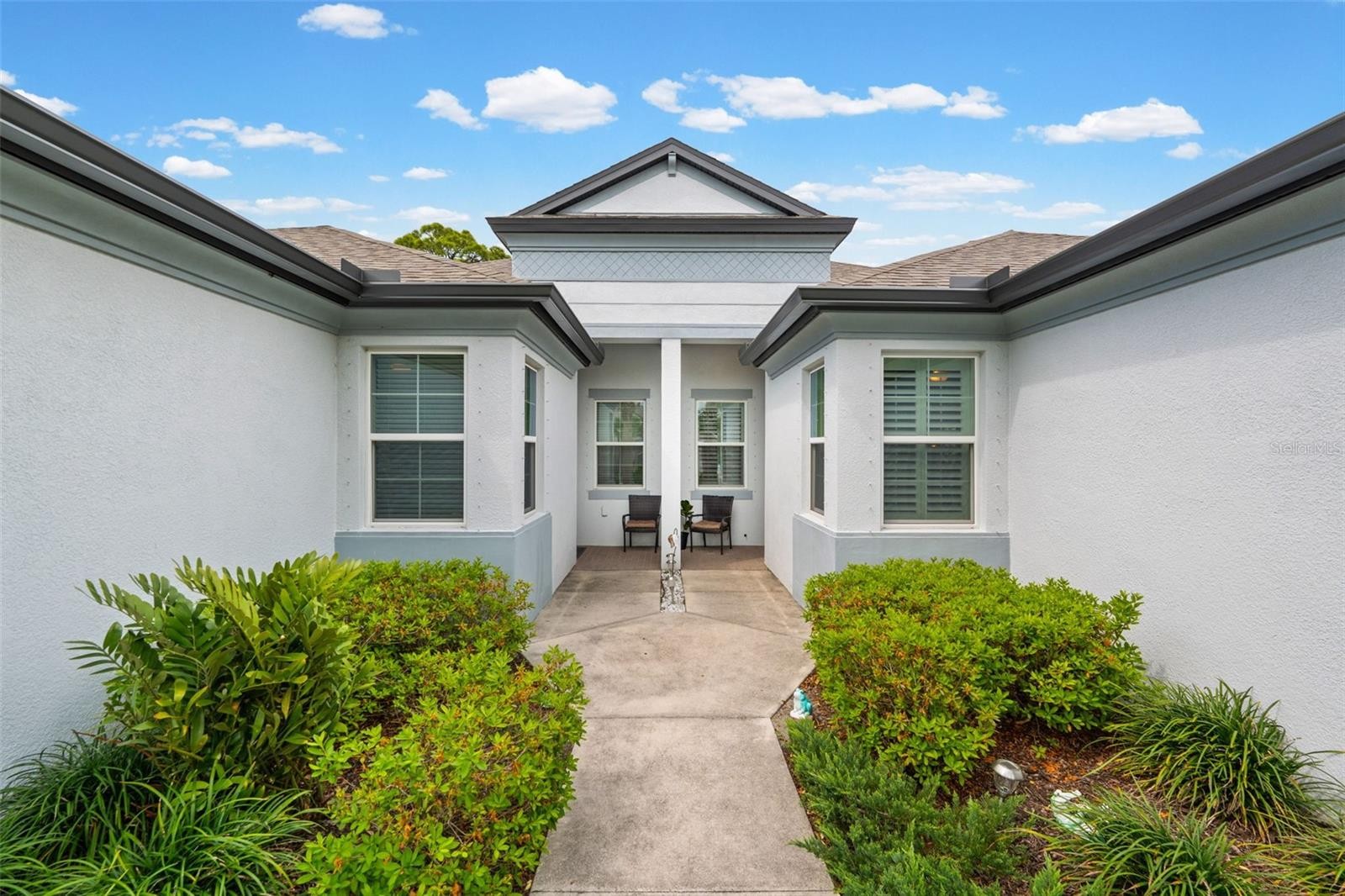 Remarkable turnkey 2/2+office/den villa in a premier gated community! This maintenance-free gem is loaded with upgrades, starting with a striking custom glass front door, TILE FLOORING THROUGH OUT, plantation shutters, and designer wall accents! The kitchen boasts a custom backsplash and an upgraded dishwasher, while designer light fixtures elevate every room! Practicality meets luxury with custom built-ins for closets and an extended screened patio overlooking a lush, private backyard. Location is unbeatable—minutes from I-75 and SR-64 for easy commuting, and just a short stroll to local shops and dining. Residents enjoy a heated resort-style pool. Easy to show and ready for its new owners!
