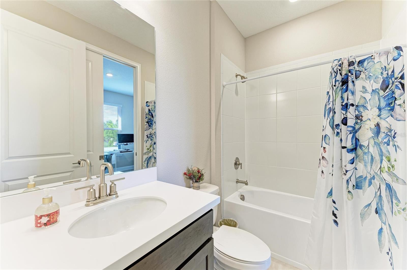Like-new 2025 coastal-inspired WATERFRONT twin villa with breathtaking water views on a private dead-end street in the gated Esplanade at The Heights. This move-in-ready Ibis floor plan by Taylor Morrison features a sleek flat tile roof, rare water-access lot with a spacious backyard, 2 bedrooms, 2 bathrooms, and a versatile den/study that can serve as a 3rd bedroom, offering a fresh, modern alternative to older Mediterranean elevations. This light-filled home features IMPACT RESISTANT windows and sliding glass doors for energy efficiency, storm protection, and year-round comfort. The open Gathering Room showcases a tray ceiling with four recessed lights and sliders leading to the screened-in lanai with gorgeous and tranquil water views. The chef’s kitchen includes natural gas cooking, quartz countertops, a stainless-steel farmhouse sink, upgraded 42” cabinetry, a closet pantry, and pendant lighting over the breakfast bar. The dining area with tray ceiling is perfect for entertaining. The private primary suite features peaceful water views from the row of windows, a tray ceiling, newer laminate flooring, a spa-like en-suite bath with frameless glass shower, grab bars in water closet, and a large walk-in closet. The guest bedroom includes newer laminate flooring, its own en-suite bath, walk-in closet and is located near the study/den with pocket doors, tray ceiling and recessed lighting. Additional highlights include a customized laundry room with newer washer/dryer and pre-plumbing for sink, 8-foot doors throughout, no carpeting, smart home features, and a two-car garage with newer epoxy flooring and a reinforced storm-rated door. Builder’s bumper to bumper warranty and mechanical warranty remains in effect and can be transferred to a new homeowner. Enjoy the Esplanade resort-style living with a clubhouse, spa, fitness center, lifestyle manager, heated pool, tennis, pickleball, bocce courts, scenic trails on Mount Tumalo, and Bark Park with exercise stations. Conveniently located near UTC, downtown Sarasota & Bradenton, I-75, Gulf beaches, top-rated schools—and NO CDD FEES.