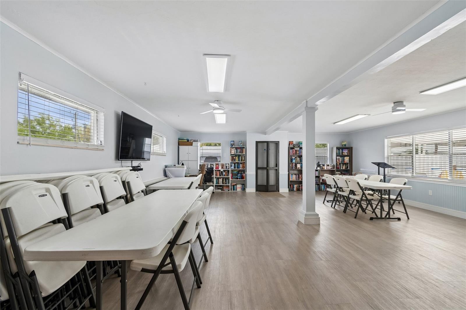 One or more photo(s) has been virtually staged. Looking for the perfect 55+ community home that checks every single box? This villa-style end unit condo is your ultimate lifestyle upgrade! HUGE BONUS- Community pool is outside your back door! Nice fenced in back porch and also an attached carport make this a great choice! This spacious 2-bedroom, 2-bathroom split plan even has an attached carport, great storage inside and enclosed bonus room. Newer HVAC system as well. Full size washer and dryer. The huge great room is perfect for hosting dinners, gatherings or creating your dream living area. Luxury vinyl plank floors throughout mean easy cleaning and a modern look with low maintenance. This community is pet-friendly, welcoming one small furry friend to call this home.This community is so convenient- Close to shopping, restaurants, medical facilities, beaches, and the airport – with a bus line nearby. The community pool and updated clubhouse with a kitchen and library are just waiting for you to make new friends and create memories. This isn't just a condo – it's your ticket to a lifestyle of comfort, convenience, and community. HOA fees include Spectrum cable and internet! Also exterior (including roofs), grounds, pool maintenance are included. Don't miss your chance to make this your new Florida home sweet home!