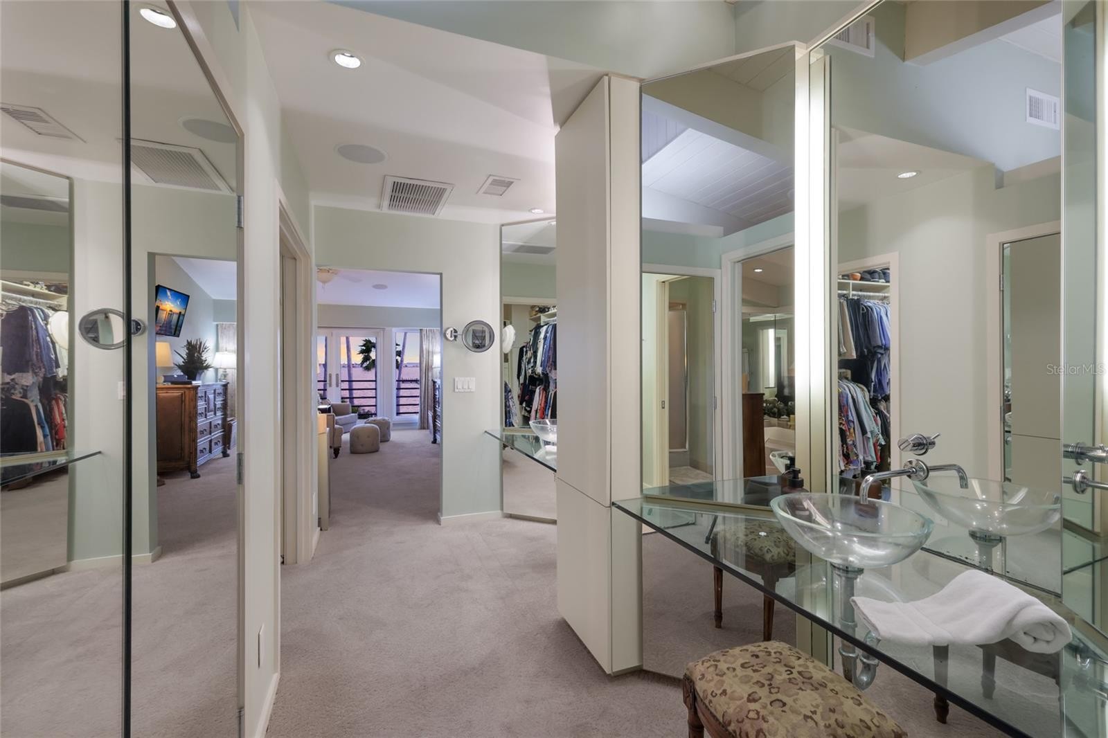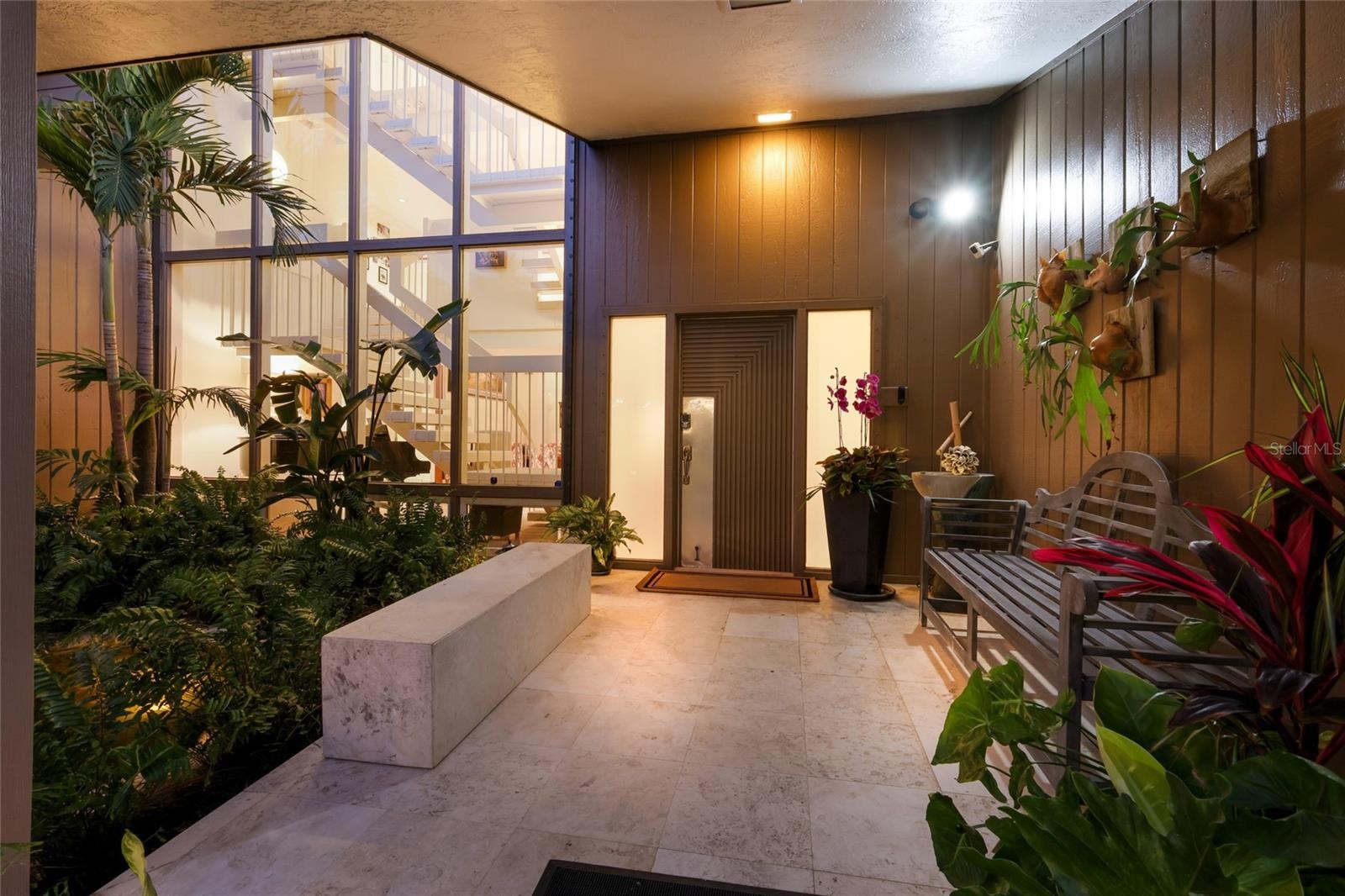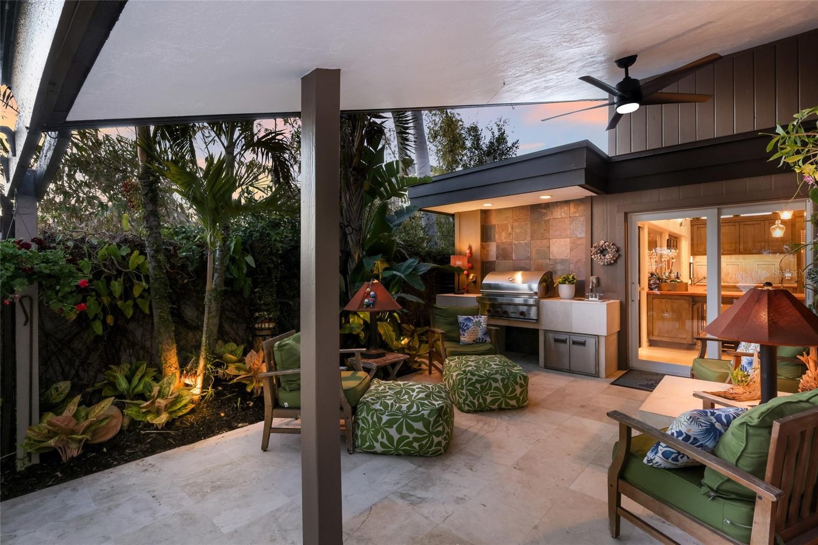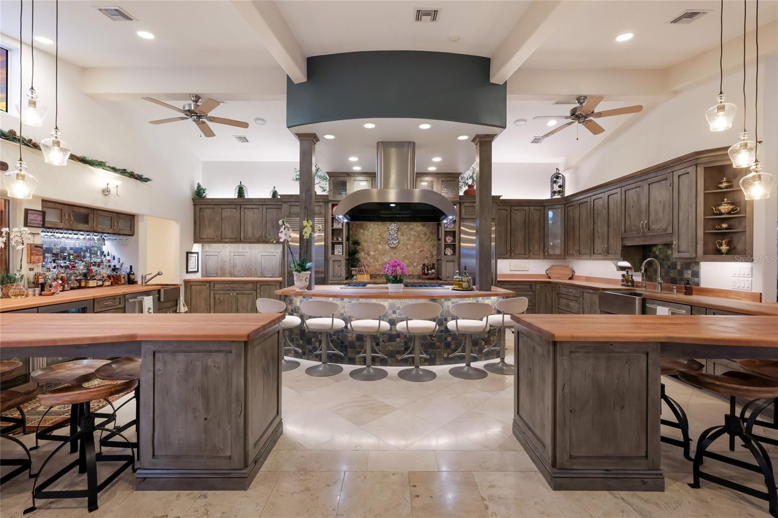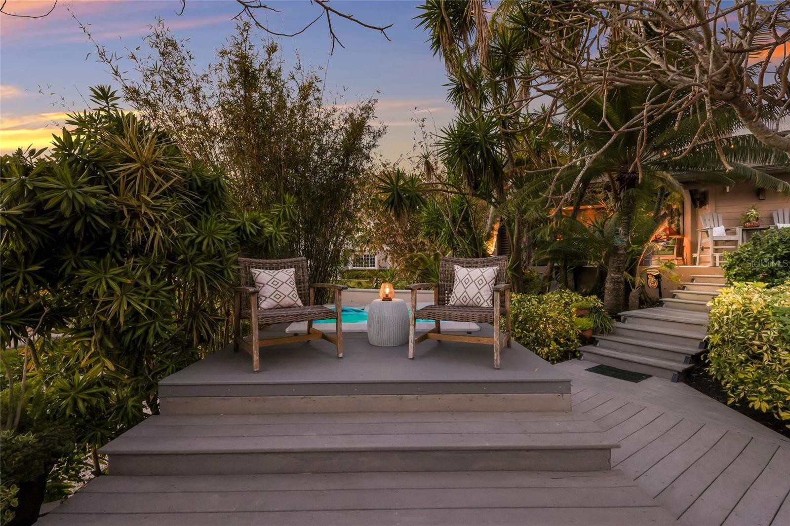 Overlooking Palma Sola Bay, this remarkable 5BD/4.5BA waterfront estate captures the essence of relaxed coastal luxury, where lush tropical landscaping, thoughtful architecture, and breathtaking sunset views come together across a truly unforgettable property. A winding circular drive welcomes you through beautifully illuminated gardens, leading to a charming pathway that crosses a serene koi pond before arriving at the front entrance, immediately setting the tone for the private retreat that awaits. Inside, travertine tile floors and soaring ceilings create a dramatic sense of openness, while expansive windows frame sweeping views of the bay and fill the home with natural light. The stunning great room makes an unforgettable first impression with its impressive ceiling height, elegant dining space, and striking wall of windows that perfectly frame the water and evening sunsets beyond the palms. Designed for both entertaining and everyday comfort, this central gathering space flows effortlessly into the living room anchored by a wood burning fireplace, creating a warm and inviting setting for conversation and relaxation while maintaining a seamless connection to the outdoors. Just beyond, the expansive chef’s kitchen is thoughtfully designed with extensive custom cabinetry, abundant prep space, and a large island ideal for casual dining and gathering. Distinctive copper sinks add warmth and character, while high end appliances and an open layout allow the kitchen to remain connected to both the great room and living areas, making it perfect for hosting friends and family. A dedicated wine cellar adds another level of sophistication for collectors and entertainers alike. Upstairs, the primary suite offers a peaceful sanctuary with private balcony access overlooking the bay. The third floor offers an additional guest suite that could also be ideal for a game/tv room or an artists retreat and features its own private balcony, creating another inviting space to enjoy the coastal breezes and water views. Outdoors, the property transforms into a private tropical retreat where expansive travertine terraces surround a beautiful pool and spa, creating multiple spaces for lounging, dining, and entertaining beneath the swaying palms. An outdoor grill area with covered seating make gatherings effortless, while winding garden paths lead to additional waterfront escapes including a fire pit lounge, tiki bar, and a tranquil spa nestled among lush landscaping. A lighted private dock extends into Palma Sola Bay, creating easy access for boating enthusiasts with direct access to the ICW and sparkling gulf waters. Just relaxing on the dock at the end of the day with a glass of wine watching the wildlife really captures the essence of this waterfront retreat. Do you enjoy entertaining? This home has had the honor of hosting many special events including weddings and amazing family gatherings. Countless memories have been created here and now it is your turn to create your own. Completing the package are raised garden beds, both an attached two car garage and a separate detached garage-perfect for a workshop, providing ample space for vehicles, storage, hobbies, or recreational equipment. With enchanting gardens, resort style outdoor living, and spectacular bay front scenery in every direction, this extraordinary property offers a rare opportunity to experience the very best of Florida waterfront living.