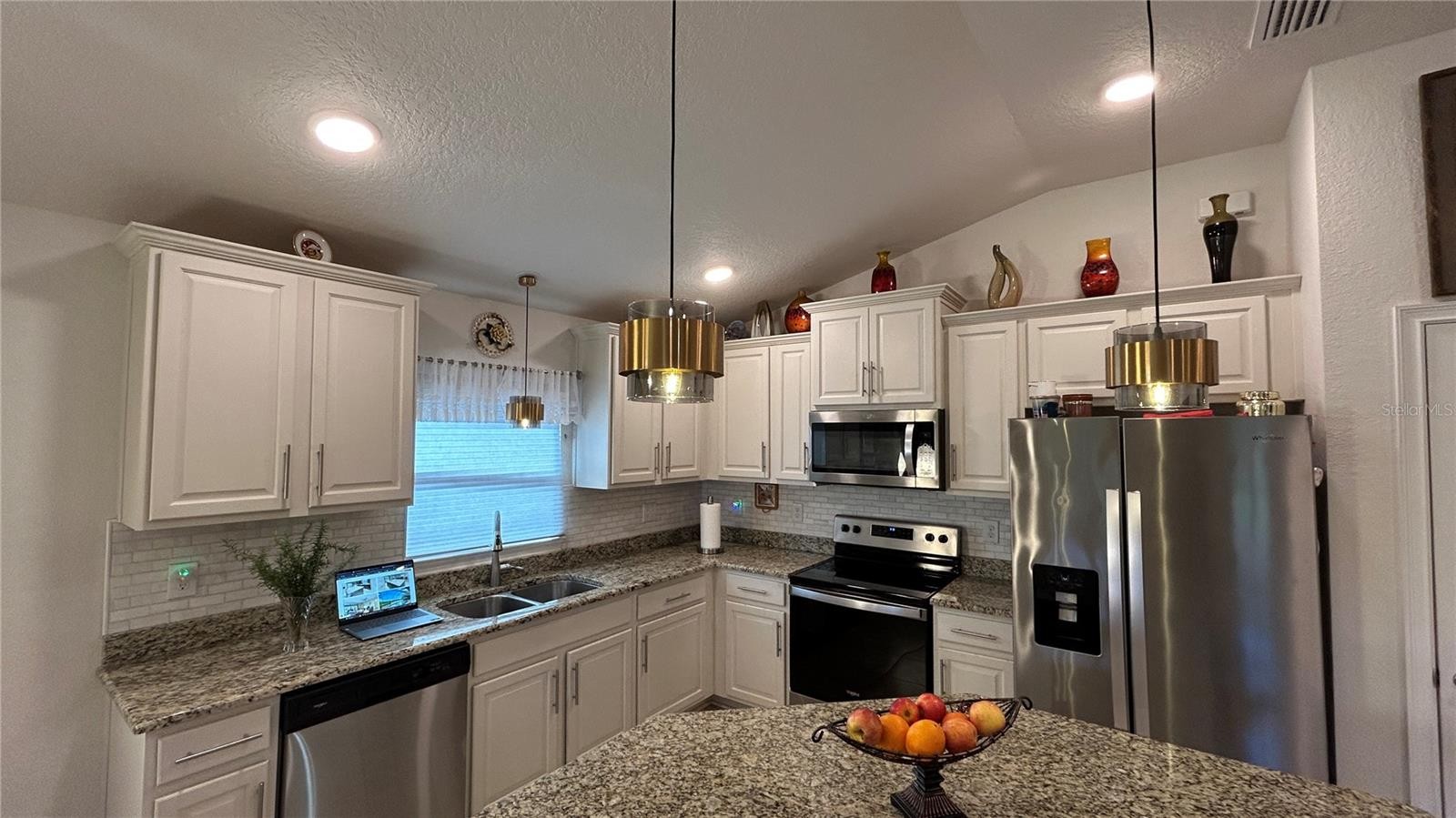 Welcome to resort-style living in Aviary at Rutland Ranch. This beautifully upgraded home 3-bedroom, 2-bath home has style, comfort, and functionality that blend seamlessly. Step inside and discover spacious living areas adorned with durable tile flooring and elegant designer ceiling fans and lighting, creating an inviting ambiance. All three bedrooms offer a warm retreat with luxury vinyl plank flooring and ample closet space. The heart of this home is its gourmet kitchen, a true chef's delight featuring soft-close solid wood cabinets with crown molding, gleaming granite countertops, a custom backsplash, and stainless steel appliances, all complemented by a convenient closet pantry. Escape to the large primary suite, a peaceful sanctuary boasting a luxurious en suite bath. This spa-like space includes dual vanities, stylish fixtures, and a spacious walk-in closet. The home's split floor plan ensures privacy, with two additional bedrooms sharing a well-appointed bath featuring granite countertops and updated fixtures. Step outside to your screened rear lanai, perfect for relaxing or entertaining while enjoying the Florida lifestyle year-round. The two-car garage features an epoxy-coated floor for durability and a polished look. Beyond the aesthetics, this home boasts practical updates for enhanced comfort and peace of mind, including tinted windows for energy efficiency and privacy, a whole home surge protector for added protection, and sustainable landscaping with three producing sugar apple trees, a thriving blackberry plant, and newly established papaya. Living in Aviary at Rutland Ranch grants you access to top-tier community amenities, including a heated resort-style pool, playground, pickleball and basketball courts, and scenic walking trails. Perfectly located just minutes from breathtaking beaches, popular local attractions, shopping, and dining, this home offers the ideal mix of tranquility and convenience.