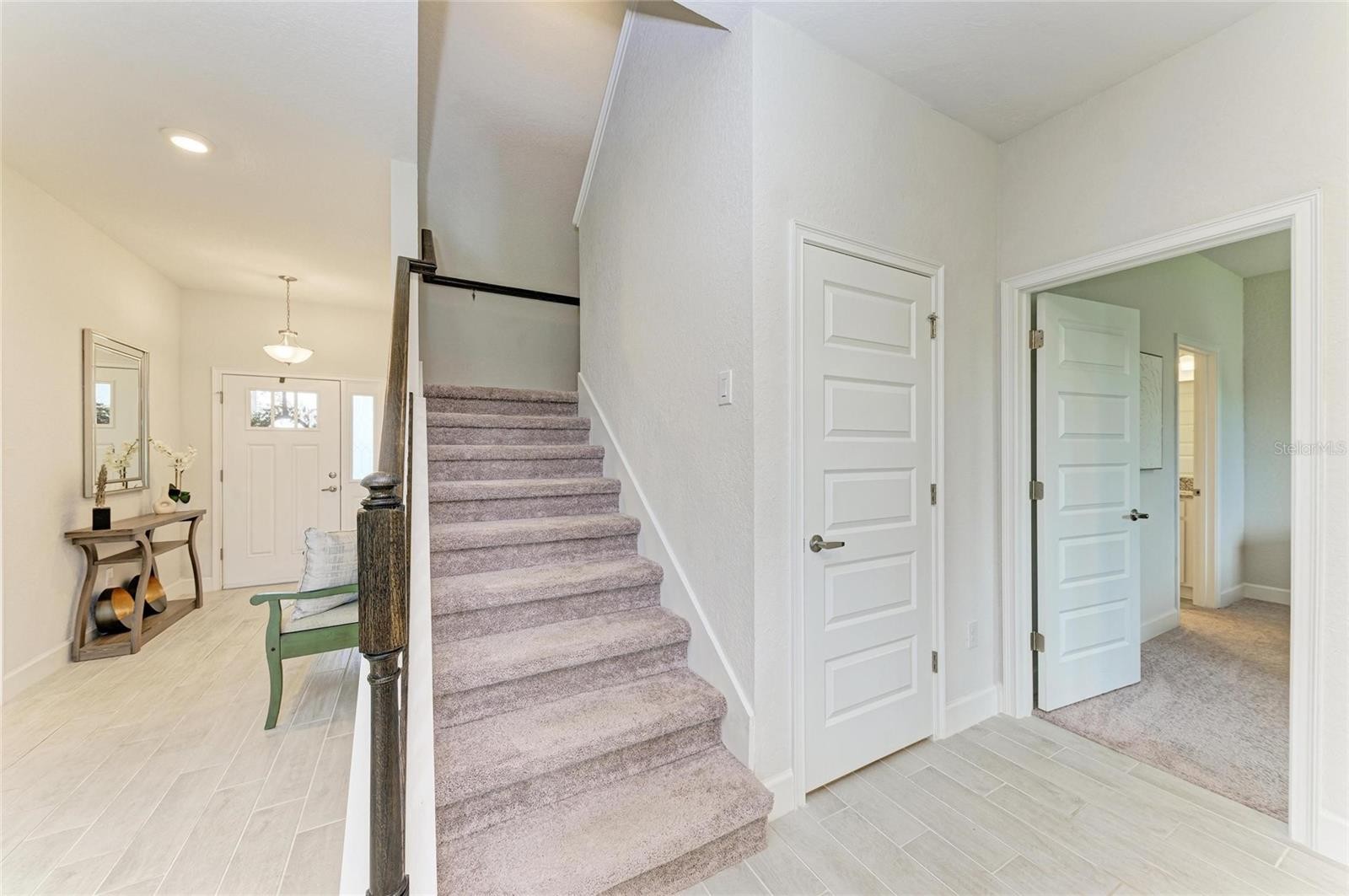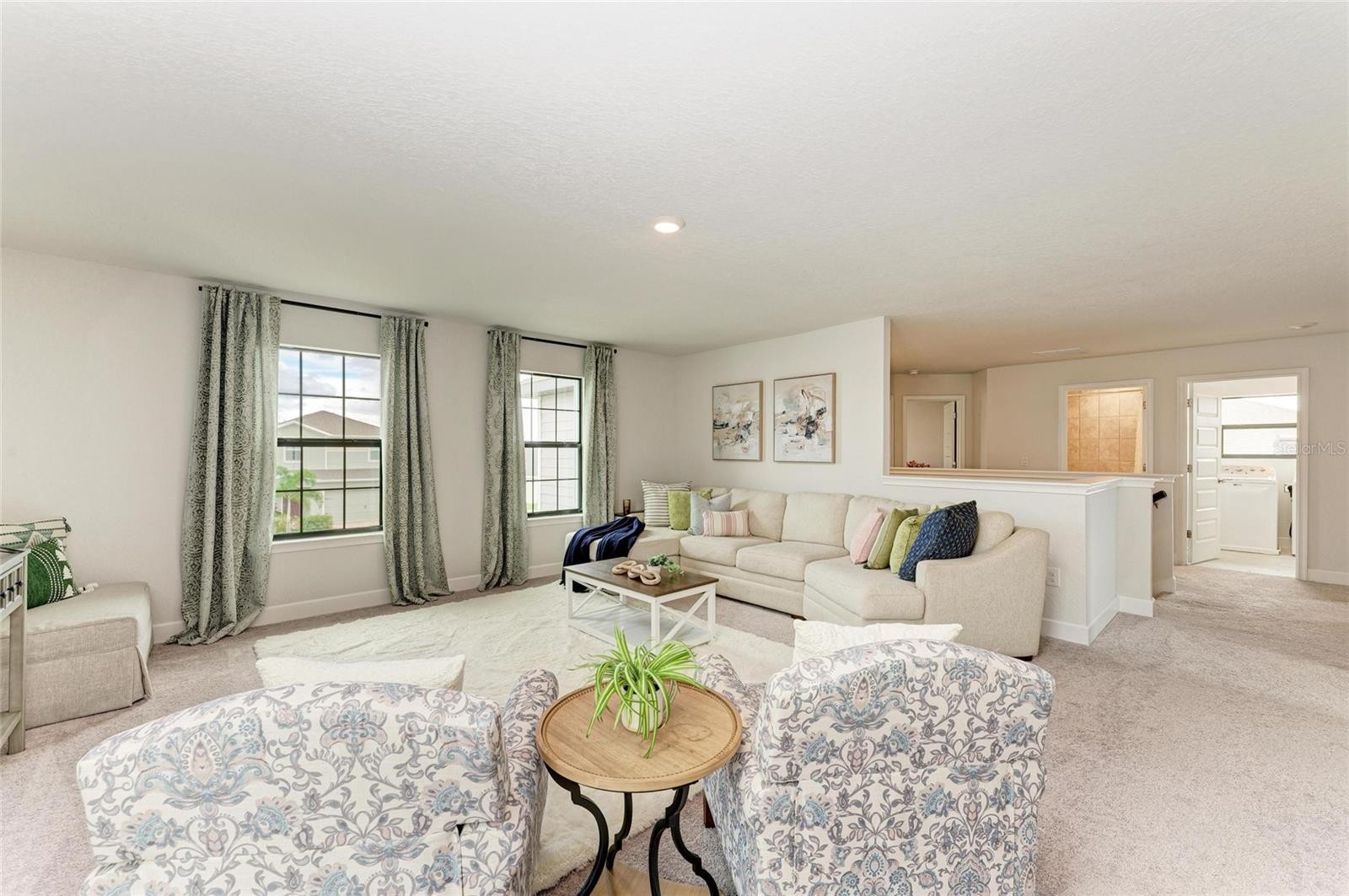 MOTIVATED SELLER! USDA FINANCING ELIGIBLE! Affordable living starts here — MOVE-IN READY & LIKE NEW — WITH A $8,000 SELLER CREDIT! This stunning 5-bedroom, 3.5-bath craftsman-style home in The Aviary at Rutland Ranch is loaded with nearly $30,000 in recent upgrades, making it truly turnkey. The seller is extending a $8,000 credit at closing, perfect for buying down your interest rate or offsetting closing costs with an acceptable contract. Step inside and experience the thoughtful floor plan, featuring the Primary Suite conveniently located on the main level, with four additional bedrooms and a spacious loft upstairs ideal for entertaining, working from home, or creating a private retreat. The first floor’s open-concept design seamlessly connects the living room, dining area, kitchen, nook, and powder bath, enhanced by plank tile flooring, volume ceilings, and abundant natural light. The chef’s kitchen is a true centerpiece, boasting soft-close custom wood cabinetry with crown molding, granite countertops, stainless-steel appliances, and a large island—perfect for gathering friends and family. Just off the living room, the expansive primary suite is filled with natural light, and the luxurious ensuite bath features a granite double vanity, frameless glass shower, and a large walk-in closet. Throughout the home, you’ll find designer touches including 5 ¼” baseboards, modern five-panel doors, recessed lighting, and custom entry doors. Additional upgrades include chic custom drapery, a newer washer and dryer, and brand-new accordion storm shutters—custom-built for each window and door frame with premium materials designed to withstand hurricane-force winds. These shutters close and lock easily from the inside, adding both elegance and peace of mind. Outside, the curb appeal is unmatched. The charming craftsman-style architecture is highlighted by stone accents, fresh landscaping, and an upgraded driveway extension with beautiful pavers that now extend across the walkway and welcoming front porch (formerly concrete)—a striking first impression that sets this home apart. The backyard is equally inviting, offering a generous covered patio, new fencing, and plenty of space for relaxation, play, or entertaining. Residents of Aviary at Rutland Ranch enjoy access to resort-style amenities including a sparkling community pool, playground, cabana, nature trails, and pickleball courts. Ideally located, this home offers a serene suburban lifestyle while remaining close to top-rated schools, shopping, dining, parks, and more. With the seller’s motivation, extensive upgrades, hurricane-rated shutters, and improved outdoor spaces, this property represents an exceptional value and is ready for its next owner to enjoy!