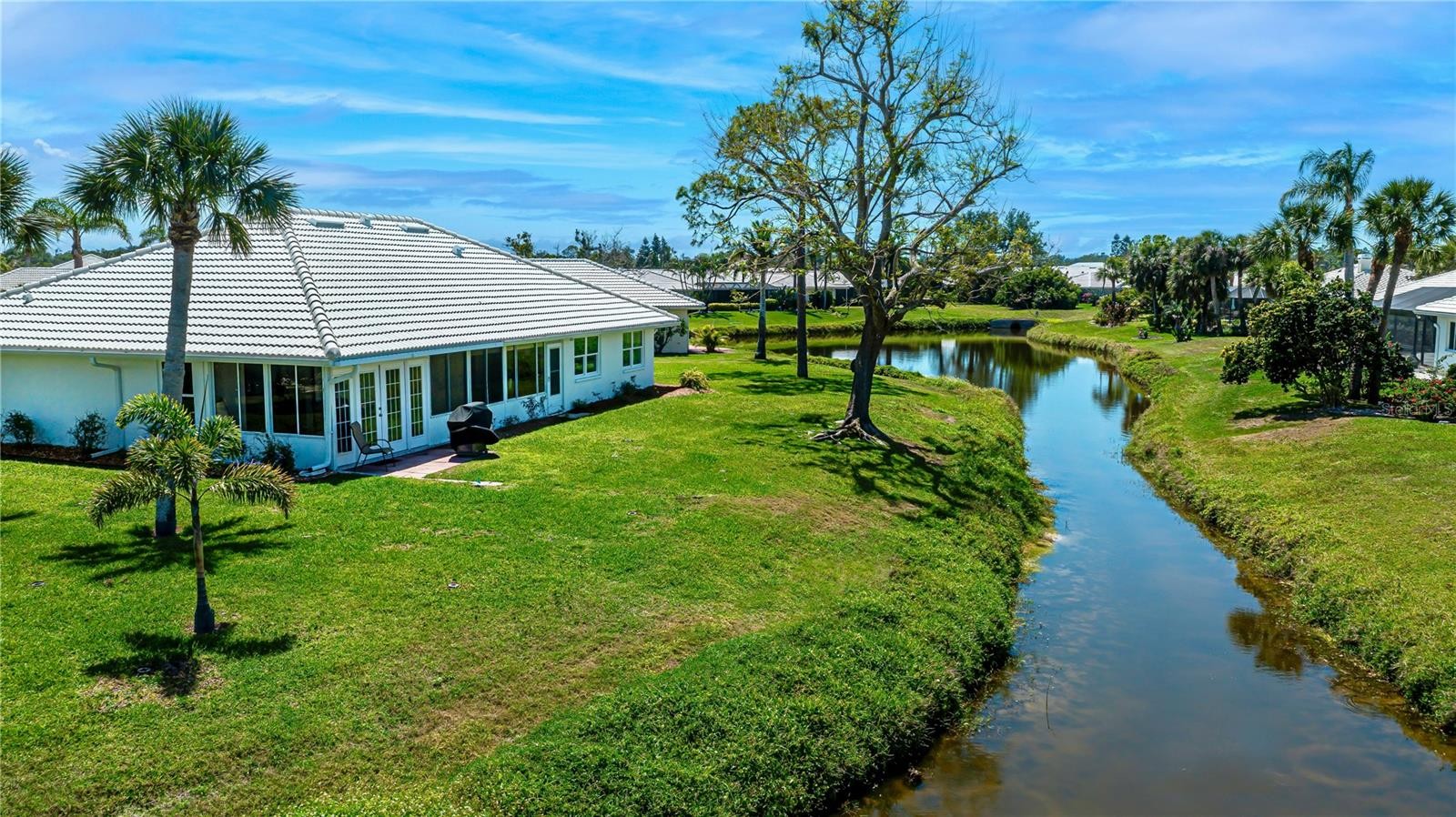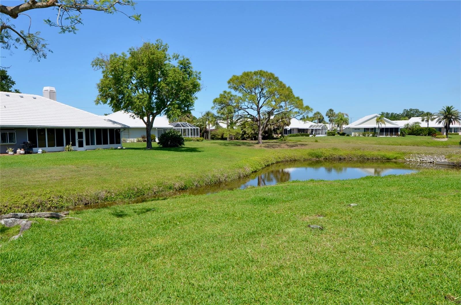 LAKE VIEWS IN PLANTATION GOLF & COUNTRY CLUB! Welcome to this beautifully maintained 3-bed, 2-bath, 2-car garage home, perfectly tucked away on a large 11,465 square foot lot (plenty of room for a pool), located on a quiet cul-de-sac in the highly sought-after Plantation Golf & Country Club community. With its balanced mix of lush grass and decorative rock landscaping, light blue quoin accents, louvered shutters, and modern finishes, this home exudes timeless Florida charm. Step inside and discover an inviting open floor plan where the living and dining spaces seamlessly connect to the kitchen. High ceilings and thoughtfully placed skylights fill the home with natural light, creating a warm and airy atmosphere. The chef’s kitchen is a true showstopper, featuring a spacious island with breakfast bar seating, a stainless steel farmhouse sink, stylish pendant lighting, and plenty of counter space for both cooking and entertaining. White shaker soft-close cabinets, sleek granite countertops, a pantry with pull-out drawers, stainless steel appliances, and recessed lighting complete this modern and functional space. The home’s split bedroom layout ensures privacy and comfort for all. The primary suite offers serene lake views, sliding glass doors leading to the lanai, a walk-in closet plus a built-in closet, and a spa-like en suite bath. Here you’ll find a dual sink vanity with generous storage, a private water closet, a walk-in shower, recessed lighting, and a skylight for added natural light. Across the home, two additional bedrooms with built-in closets share a sizable bathroom with a shower/tub combo. Finally, step into the expansive lanai with panoramic windows, where you can relax and soak in the tranquil water views. French doors lead out to the patio and backyard, perfect for grilling, entertaining, or simply enjoying Florida’s year-round sunshine. Additional home highlights include: luxury vinyl plank (LVP) flooring throughout, laundry room with storage shelving, multiple linen closets for extra storage, utility sink in garage, hurricane windows and shutters, interior plantation shutters. Membership to Plantation Golf & Country Club is optional, but available for those who want to enjoy golf on two championship courses, tennis, a fitness center, pool, and vibrant social events. This prime location puts you just minutes from shopping centers, restaurants, grocery stores, golf courses, I-75, CoolToday Park, award-winning beaches, historic Downtown Venice, and the new Wellen Park district. This remarkable home blends style, value, and location in one of Venice’s most desirable communities. Don’t miss your chance to experience the ultimate Florida lifestyle at Plantation Golf & Country Club!