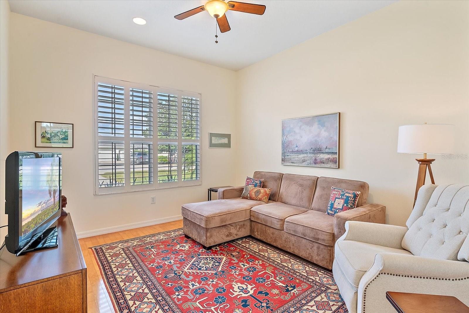 Welcome to a beautifully updated home offering comfort, efficiency, and a prime Sarasota location. As you enter, you’re greeted by an open and inviting living room where sliding glass doors lead directly to the lanai, revealing a stunning pool and spa with peaceful golf course views, perfect for relaxing or entertaining. Ceramic tile runs throughout the home, while engineered hardwood flooring installed in 2023 adds warmth to all bedrooms. Bermuda shutters throughout the home add both charm and storm protection, while new window screens were added in 2025. The home was painted in 2022, enhancing its clean, move-in-ready feel. The updated kitchen with granite countertops and wood cabinetry features GE Profile appliances installed in 2023, including the stove, refrigerator, dishwasher, and microwave. The spacious primary suite is a true retreat, offering two walk-in closets and an en suite bathroom with quartz countertops, dual sinks, a separate soaking tub, a newly tiled walk-in shower, and a private water closet. All three full baths in the home have been updated. Step outside to the screened lanai where the pool and spa were resurfaced in 2023 and paired with a three-speed programmable pool pump. The pool cage has been fully re-screened and includes new cage doors. Major system upgrades offer peace of mind, including a roof installed in 2024, 7-inch gutters added in 2024, an AC system from December 2021, and a 50-gallon hot water heater installed in 2023. The laundry area includes a Speed Queen washing machine with a 10-year warranty. The garage is equally impressive, featuring a reinforced garage door, two-car parking plus a dedicated golf cart door, and additional storage space above. Community amenities include a neighborhood pool and playground. Ideally located just minutes from University Town Center shopping and dining, downtown Sarasota, gorgeous crystal sand beaches, cultural attractions, and easy access to major roadways, this home offers both convenience and lifestyle. 6112 Saddlehorn Ave. is a thoughtfully upgraded property that blends quality, functionality, and an exceptional Sarasota setting.