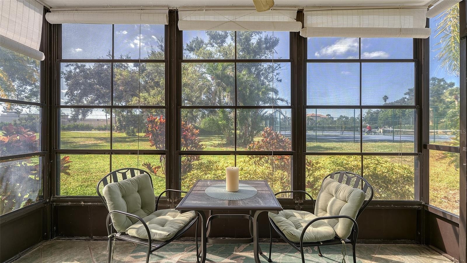 This fully renovated first-floor corner residence offers one of the most desirable locations in the community. The ground-level setting allows direct access without stairs or elevators and provides the shortest distance to the community center, which includes a pool, fitness facility, pickleball and tennis courts. The two-bedroom split floor plan enhances privacy, with each bedroom featuring an en-suite bath. A retractable wall in the guest bedroom allows flexible use of the space. The updated kitchen features solid wood cabinetry, stainless steel appliances, and generous counter space with room for breakfast table. The open great room accommodates dining and living areas and extends to a west-facing covered patio, ideal for morning coffee or evening relaxation. A new HVAC system was installed in 2023. Bird Bay offers resort-style living near downtown Venice. The community amenities include a clubhouse, pool, fitness center and courts for tennis, pickleball, shuffleboard and bocce. Seasonal activities include yoga classes, art shows and social gatherings. Access to the Legacy Trail, a popular destination for cyclists, runners and walkers, is less than a quarter mile away, providing a direct route to Venice Island. Venice Beach and Nokomis Beach are within three miles, offering opportunities for swimming, shell collecting and shoreline walks.